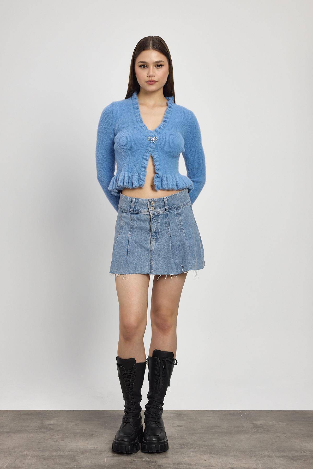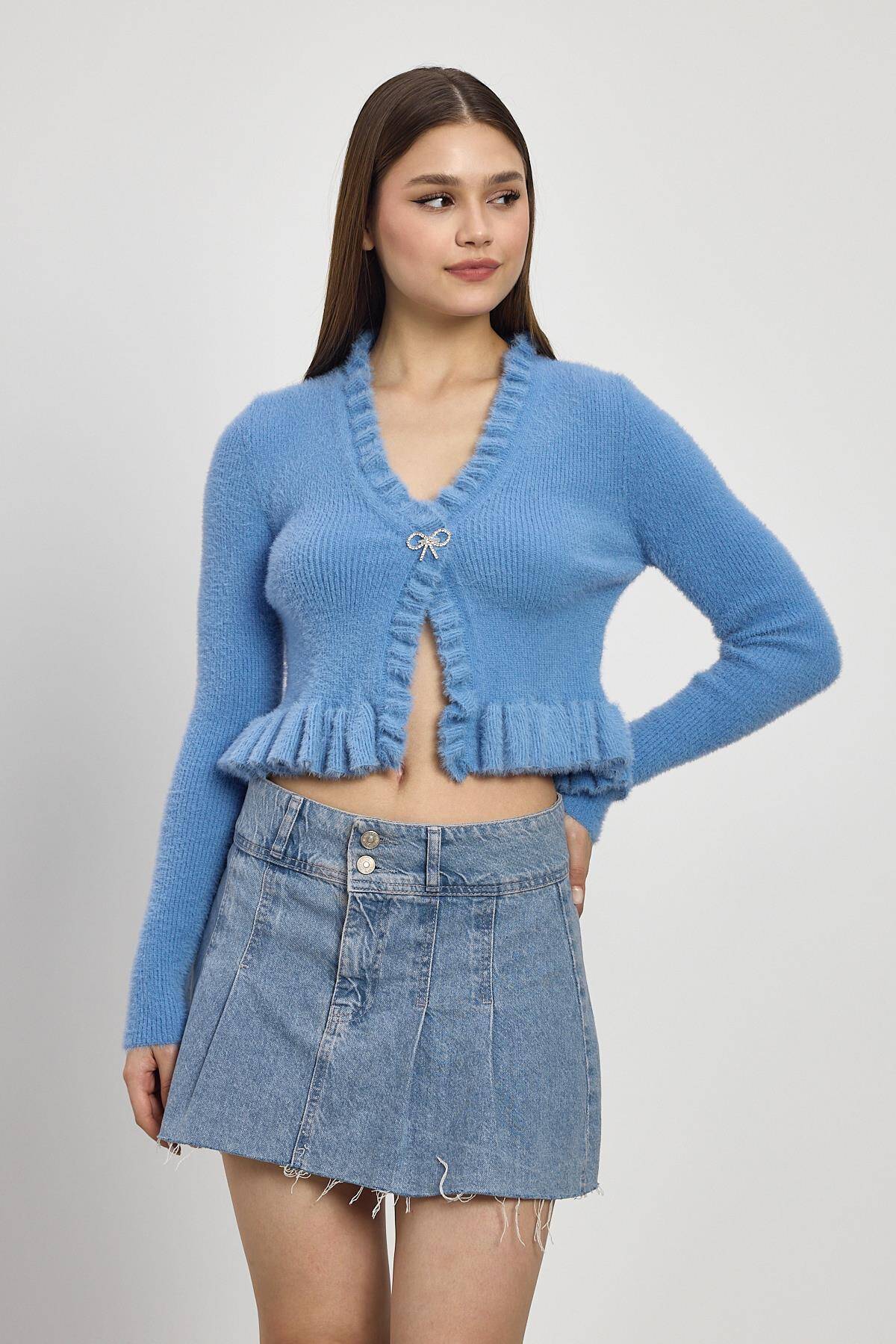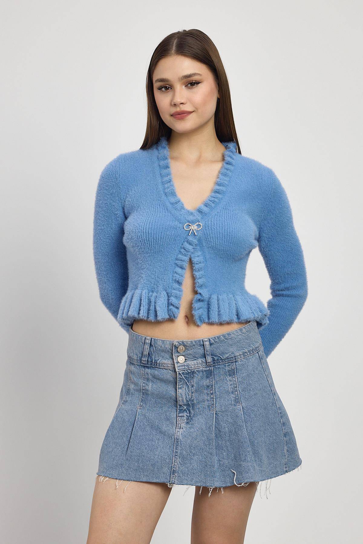 6801 Etek Fırfır Detay Kısa Hırka Mavi