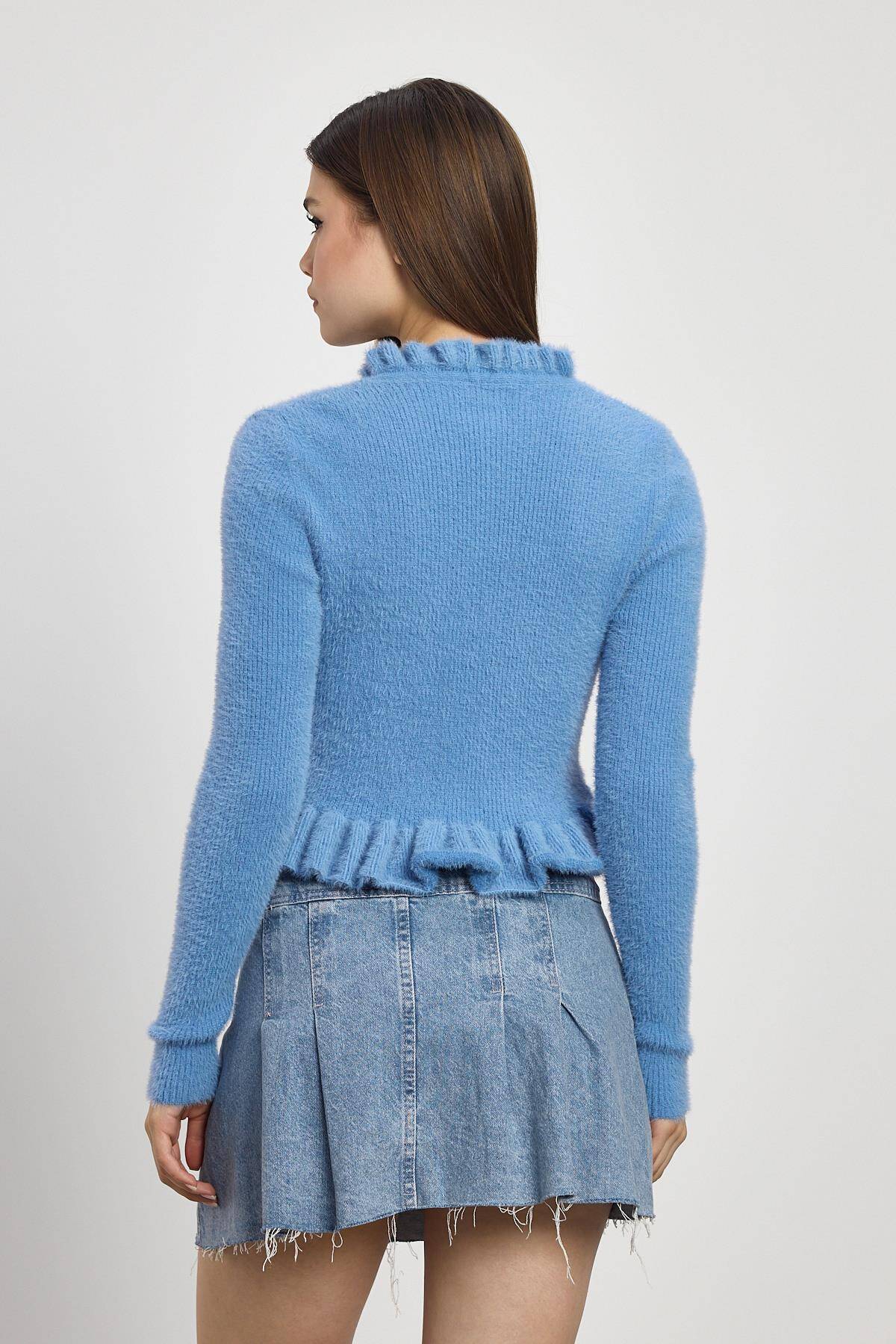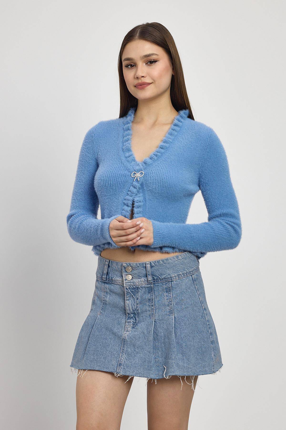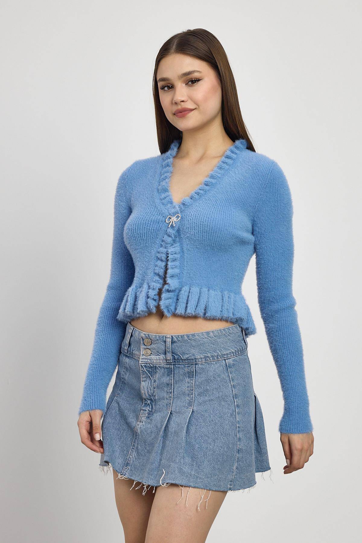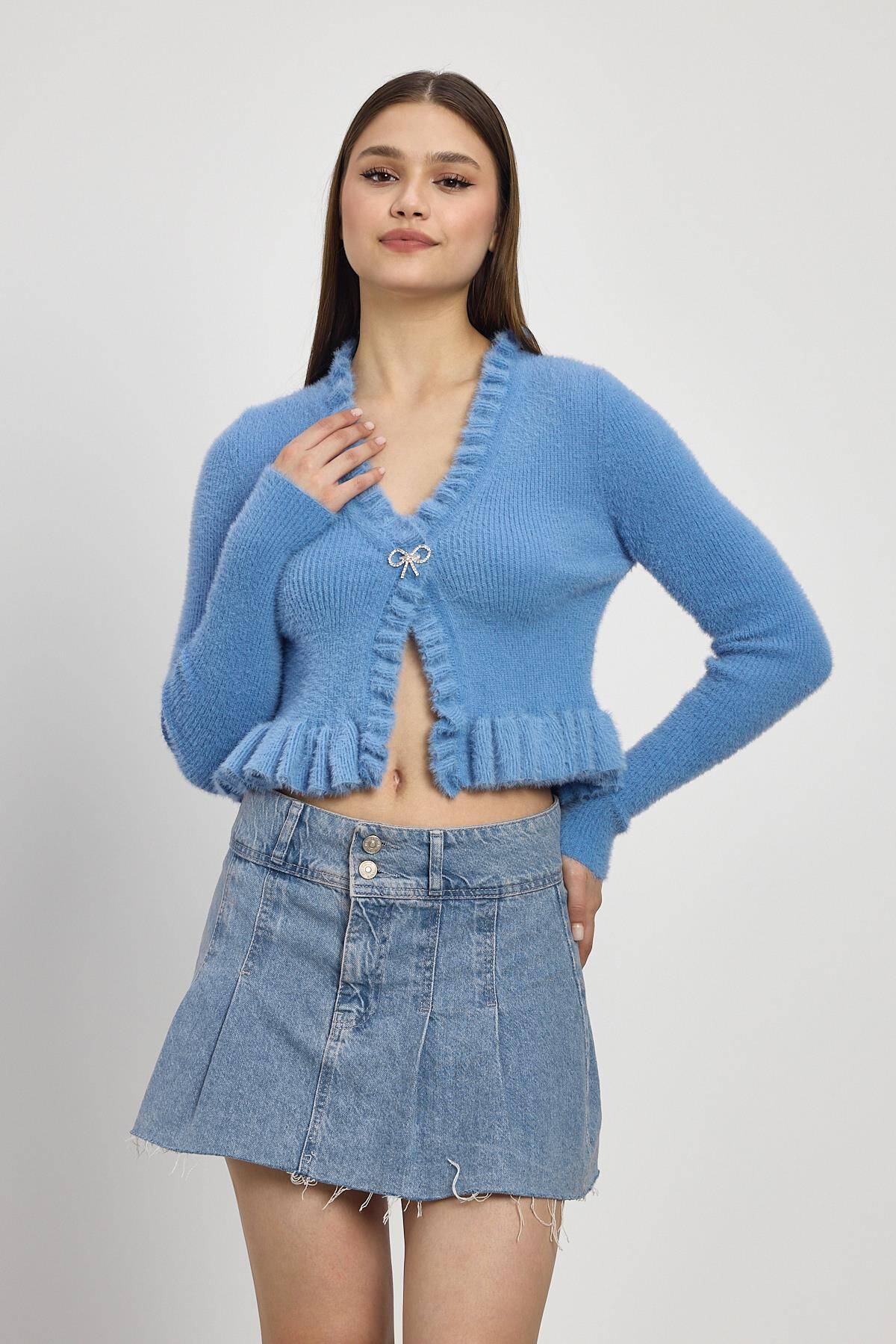 6801 Etek Fırfır Detay Kısa Hırka Mavi