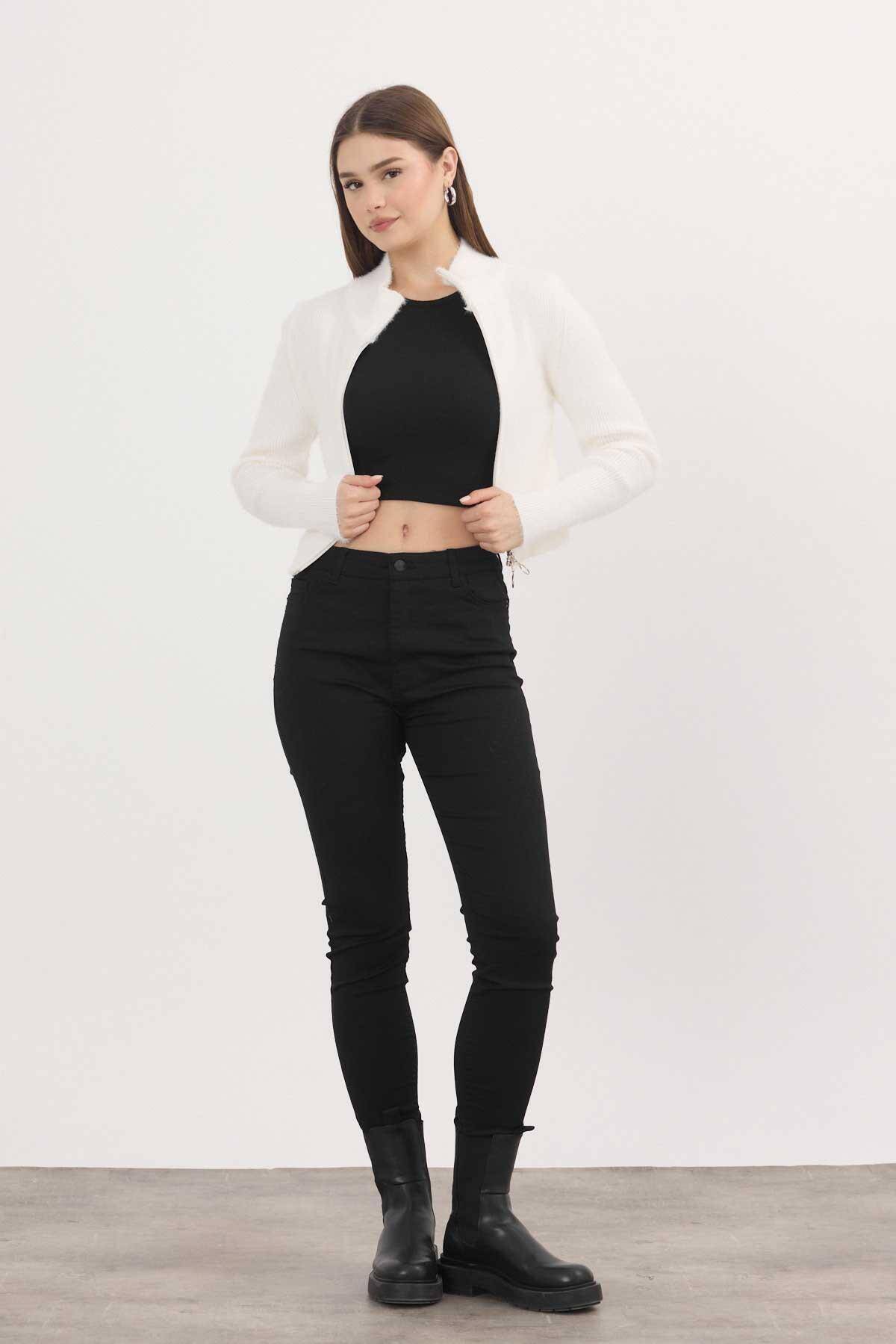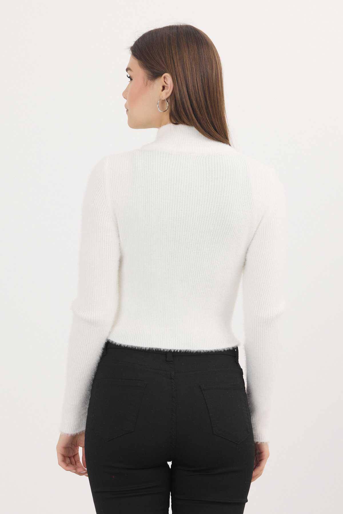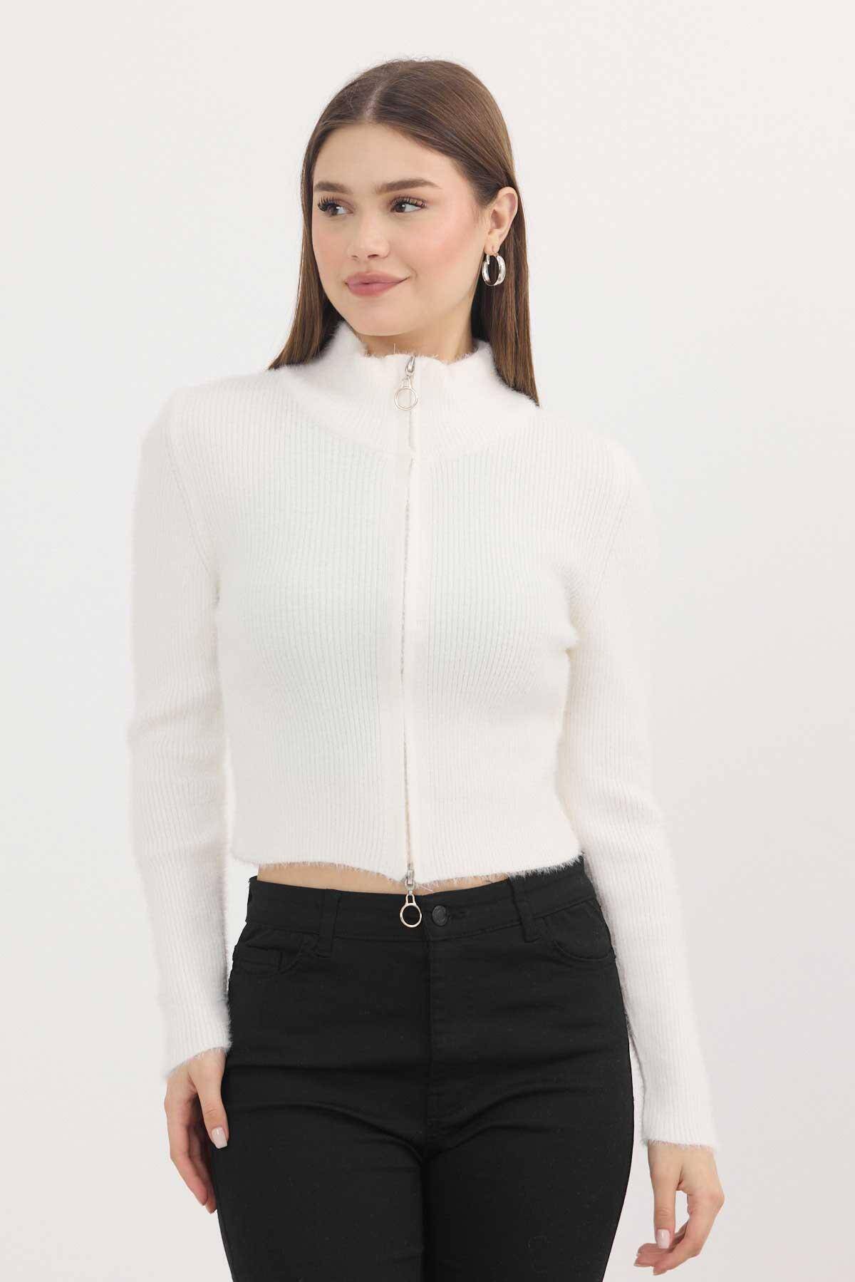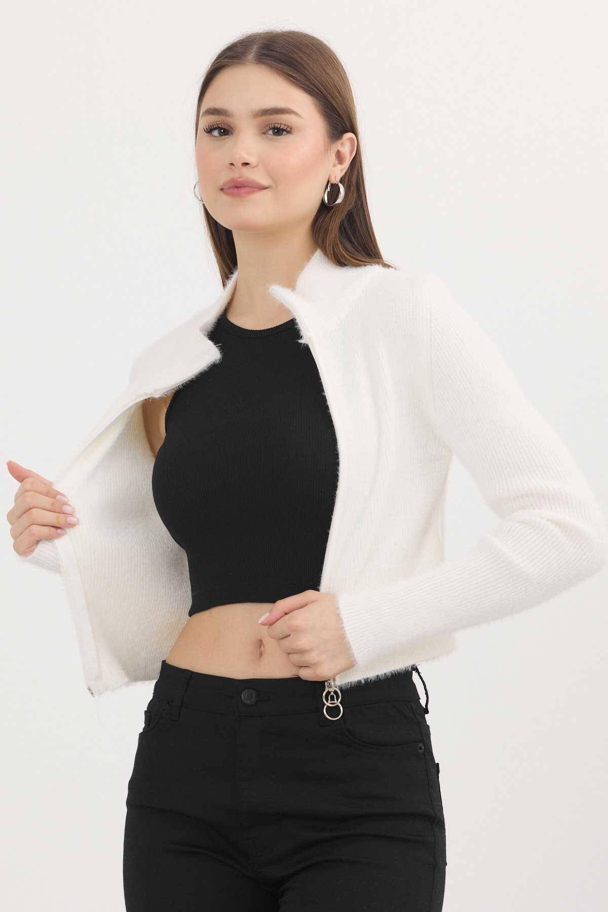 6806 Fermuarlı Kısa Yumoş Hırka Kemik