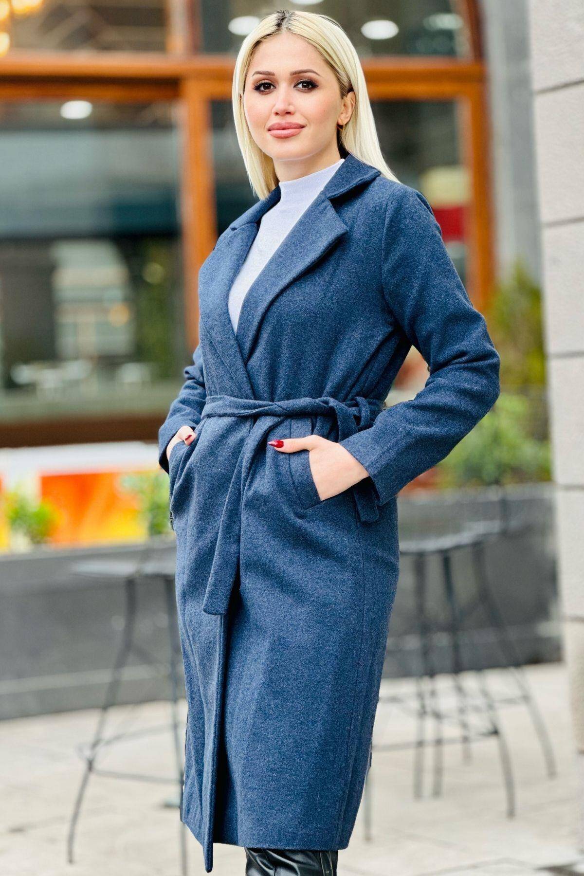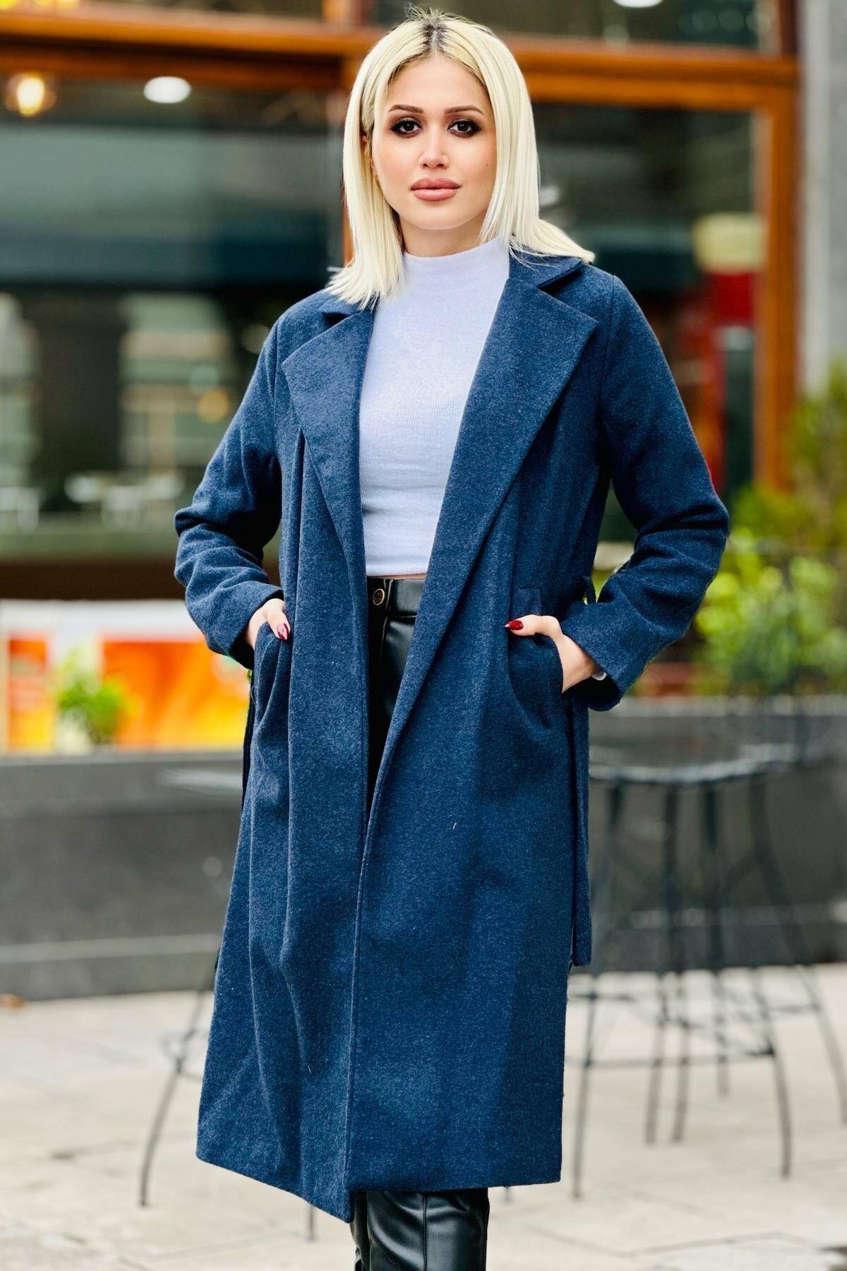 7149A Belden Bağlamalı Uzun Kaban İndigo