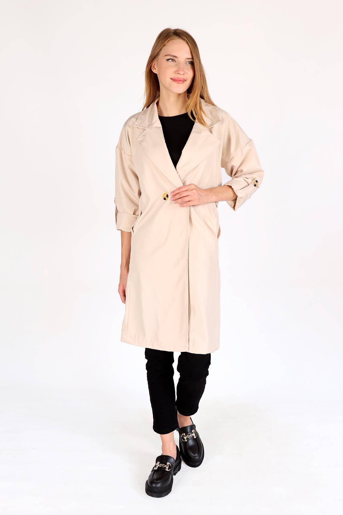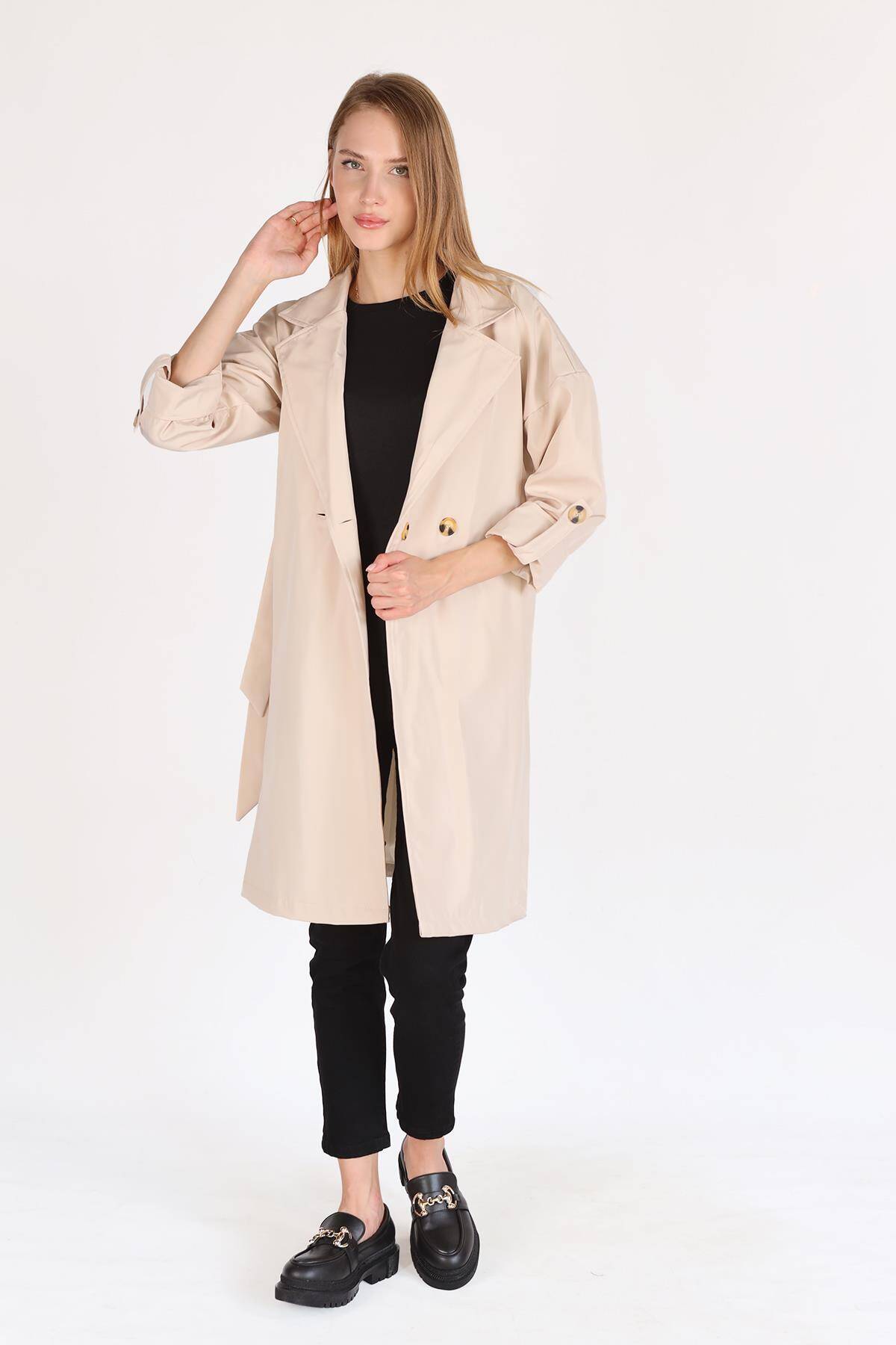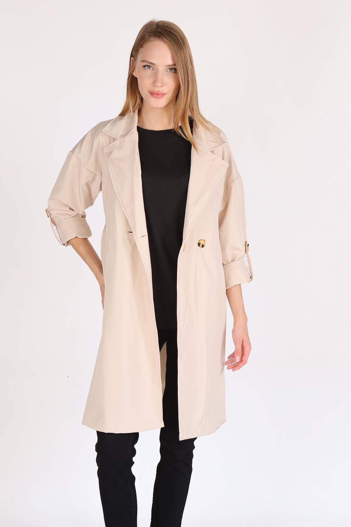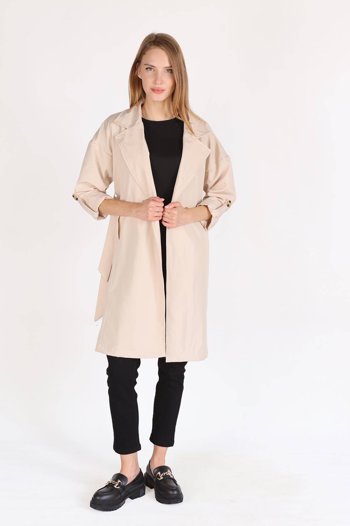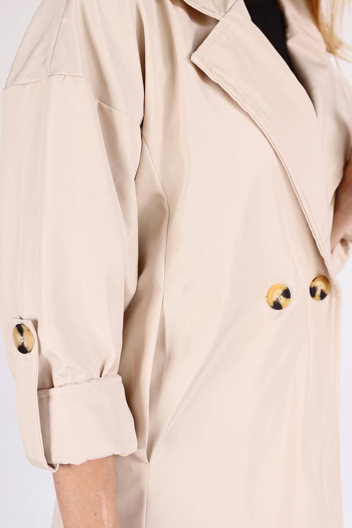 Bej Kapüşonlu Cepli Fermuarlı Kap 4572A