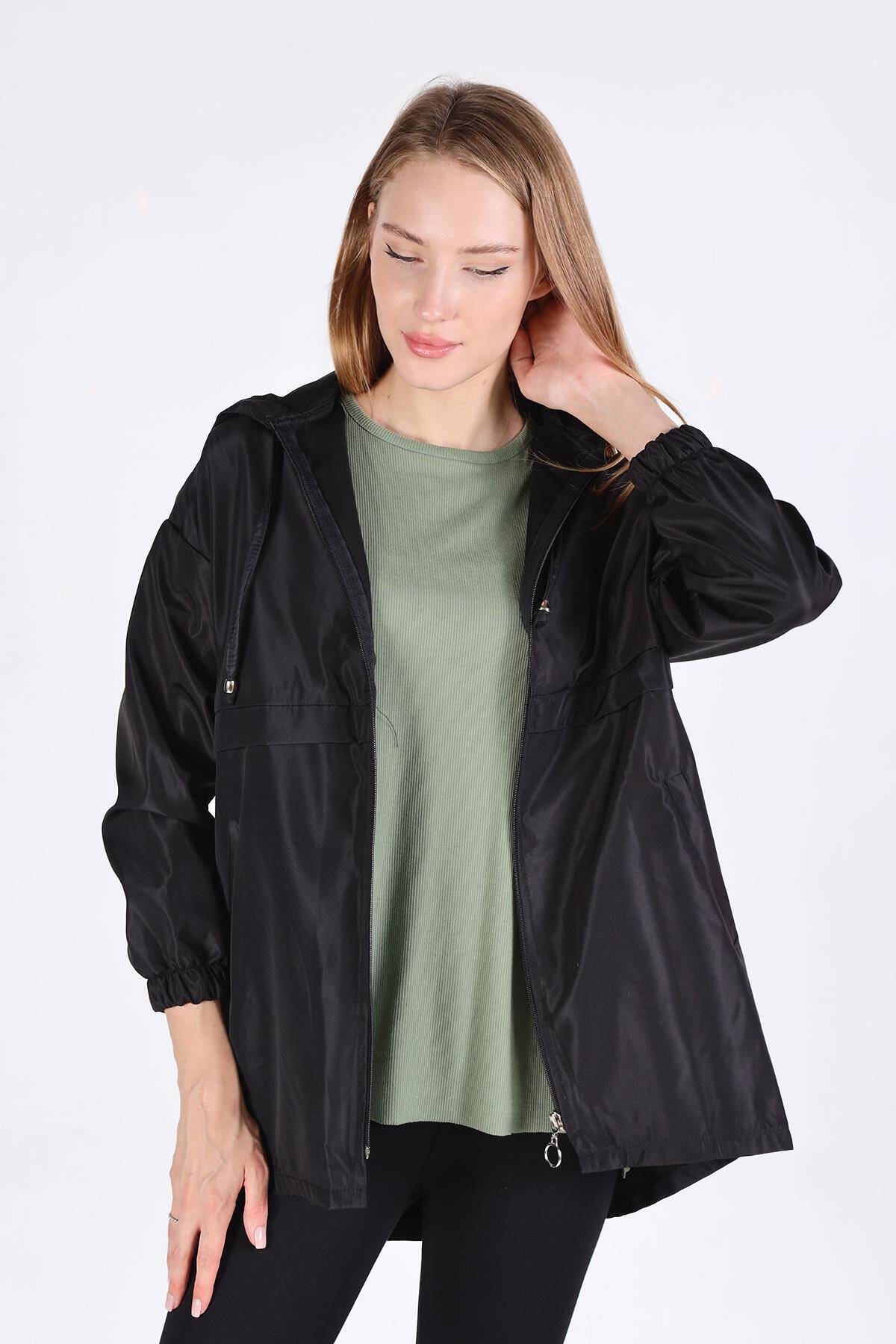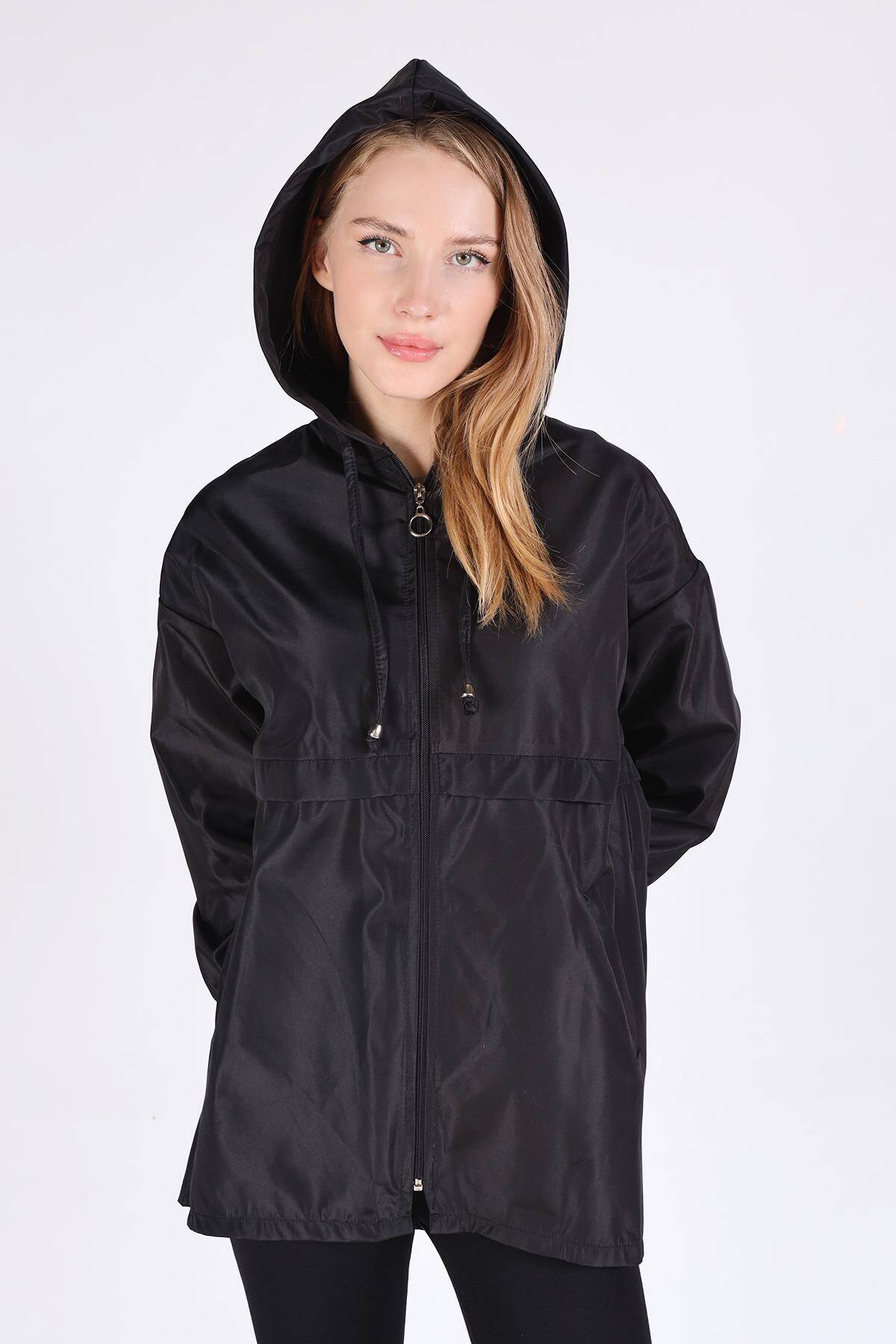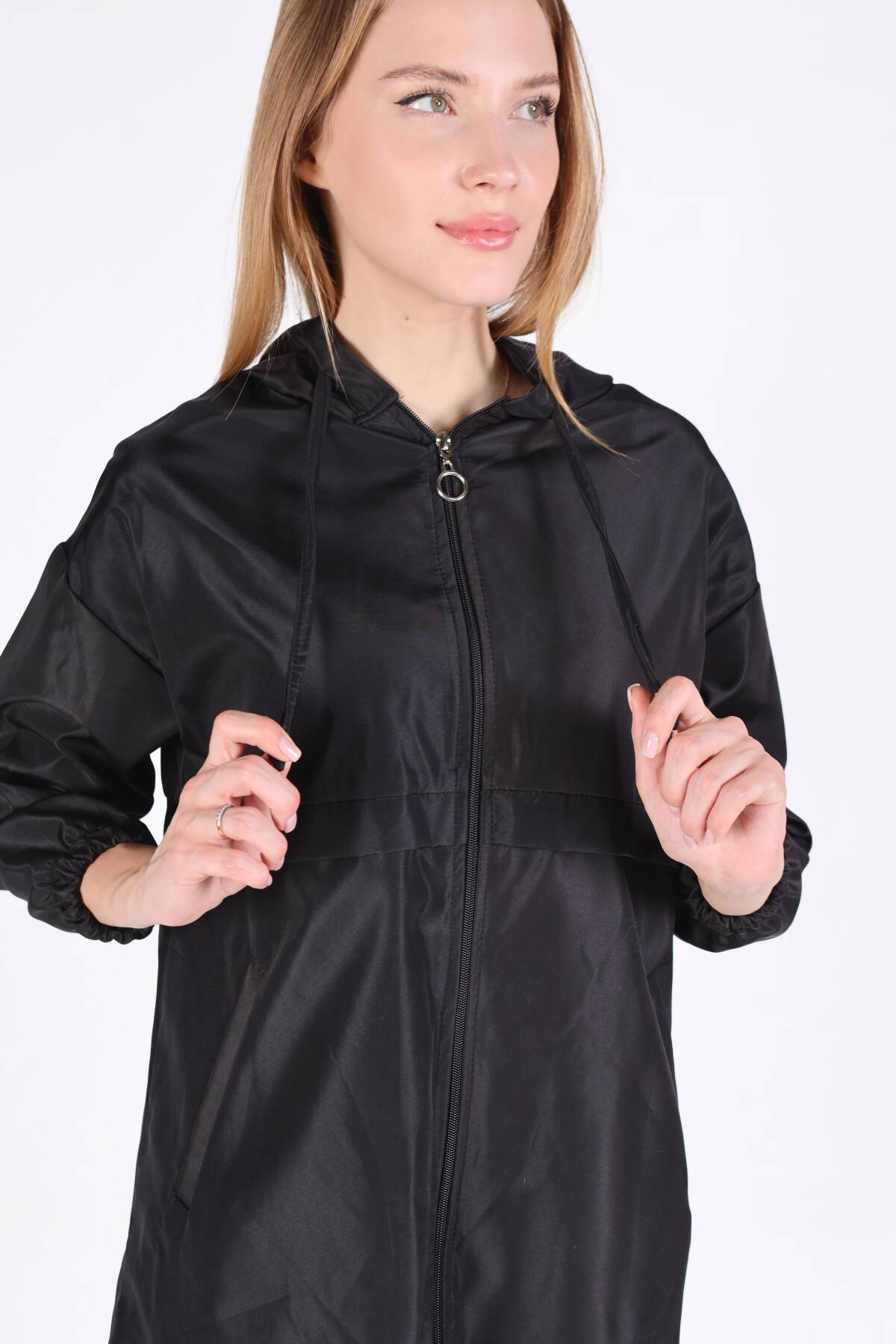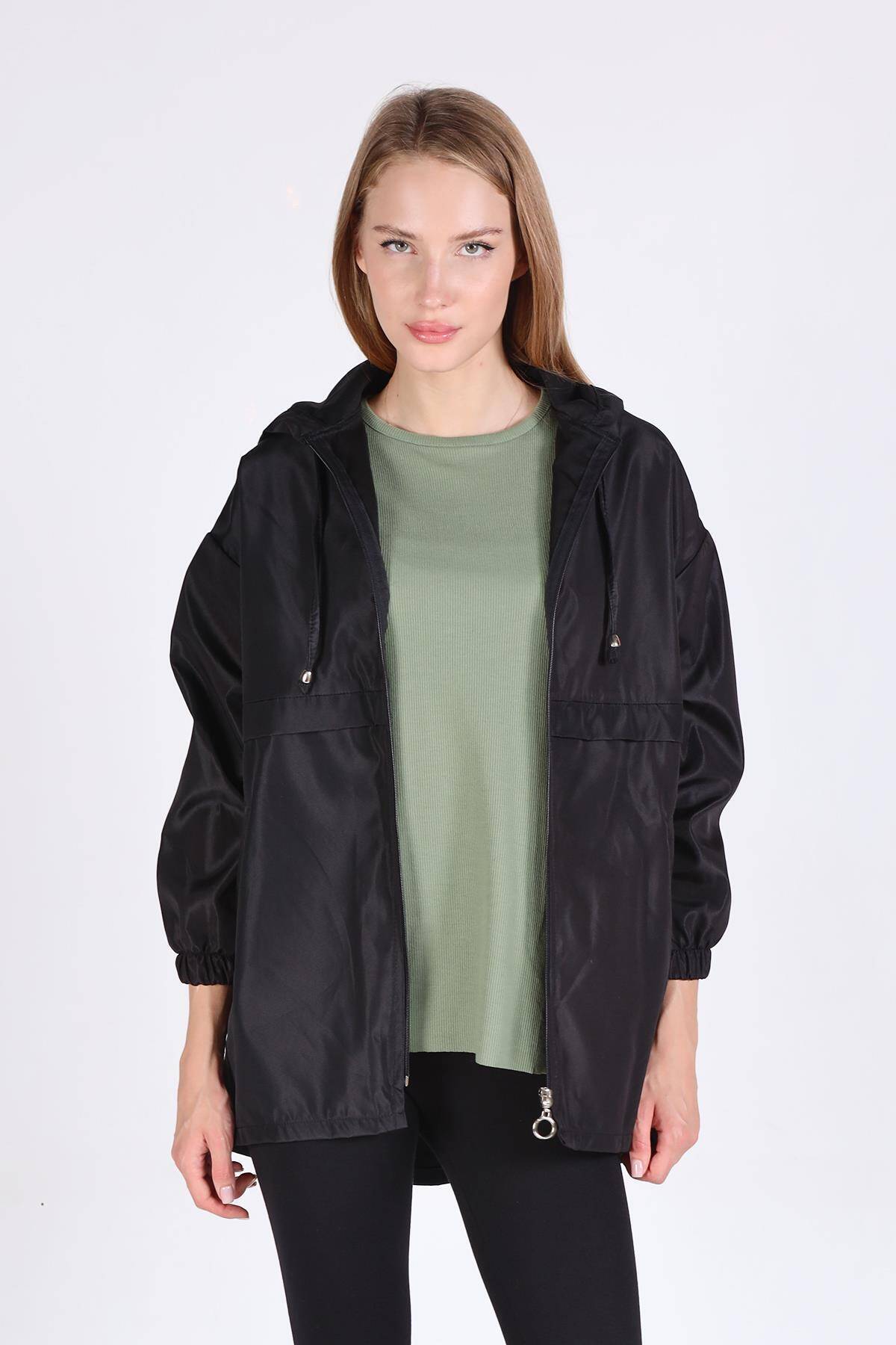 Siyah Kapüşonlu Cepli Fermuarlı Kap 4572A