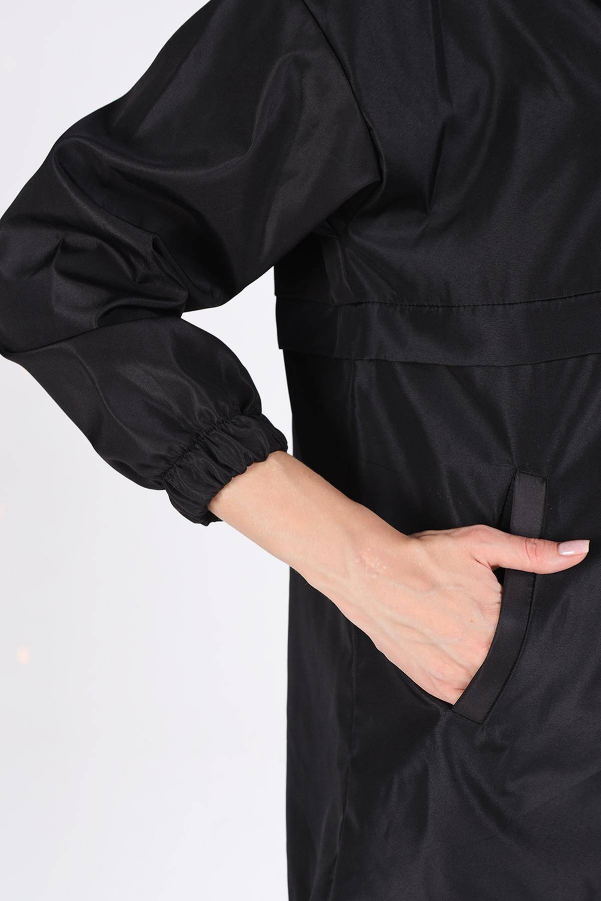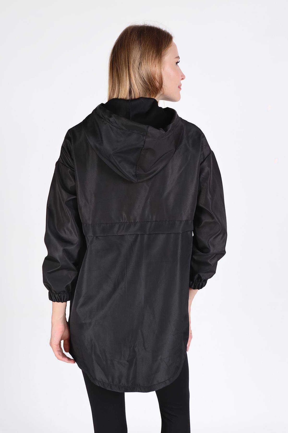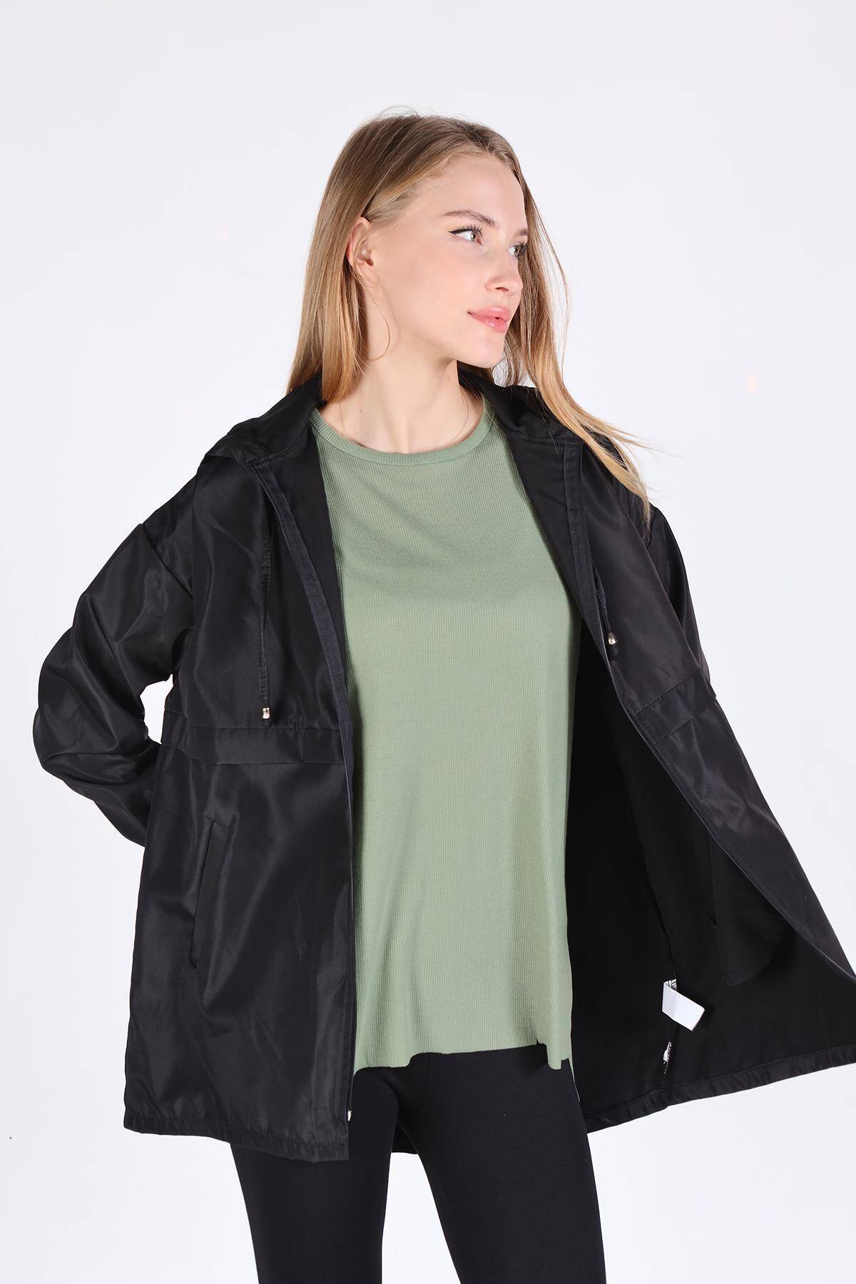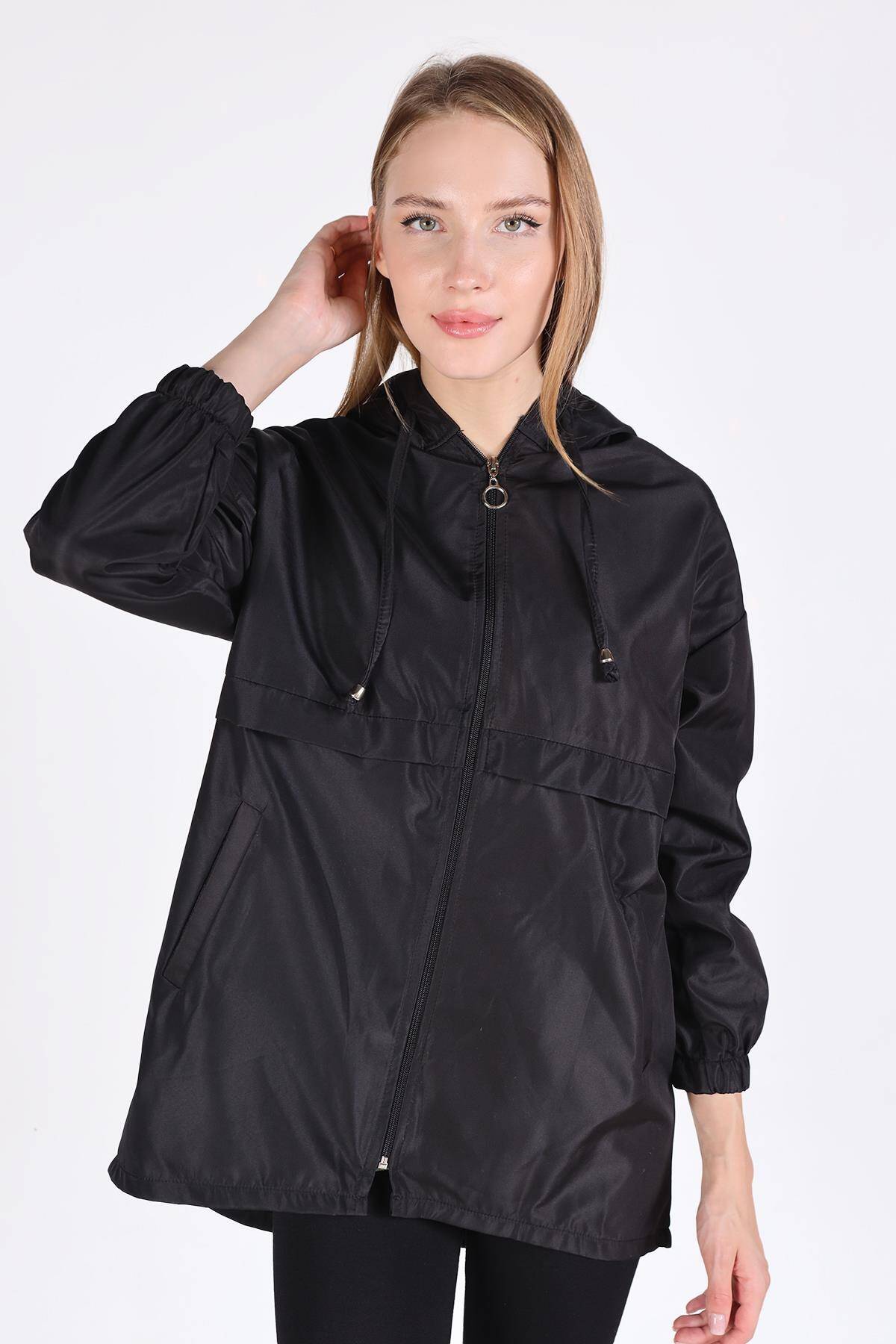 Siyah Kapüşonlu Cepli Fermuarlı Kap 4572A