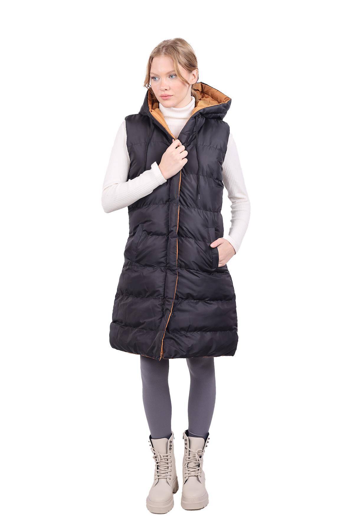 Siyah Kapüşonlu Cepli Fermuarlı Kap 4572A