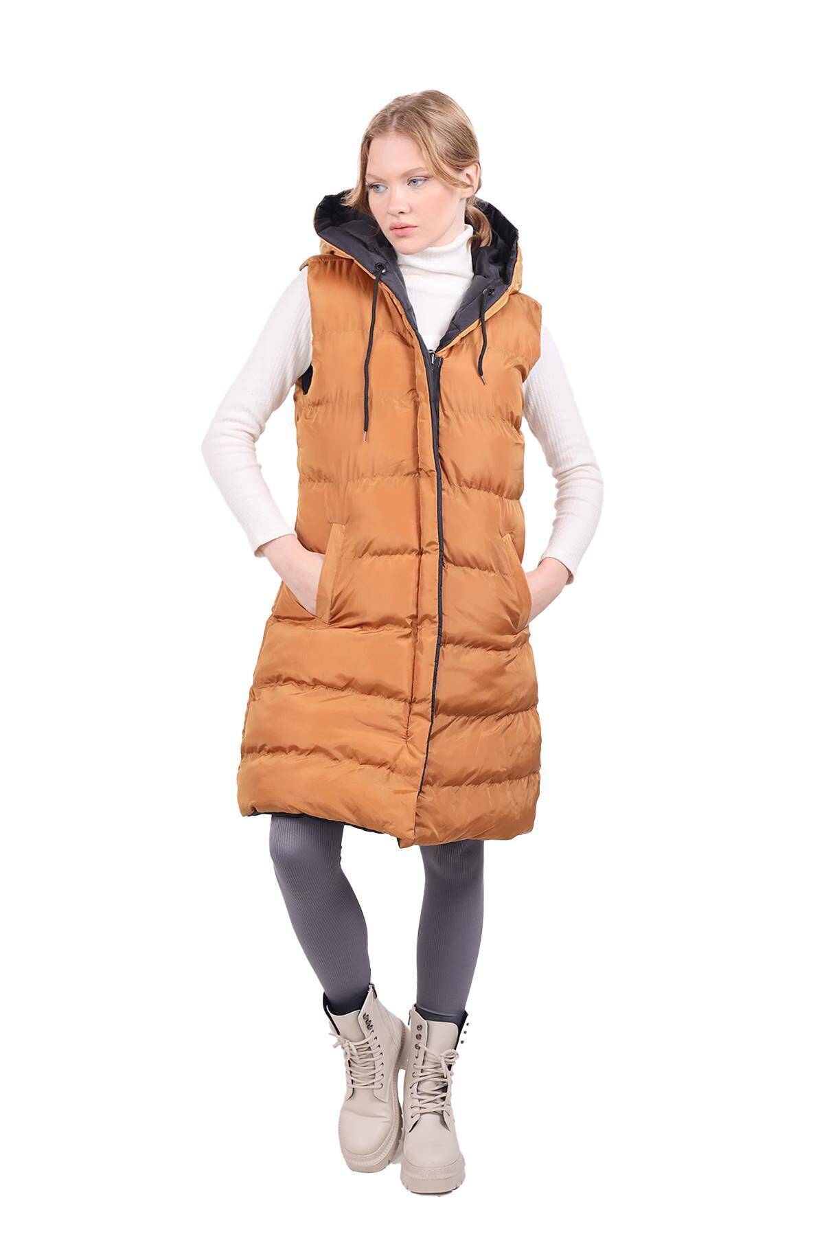Bisküvi Kapüşonlu Cepli Fermuarlı Kap 4572A