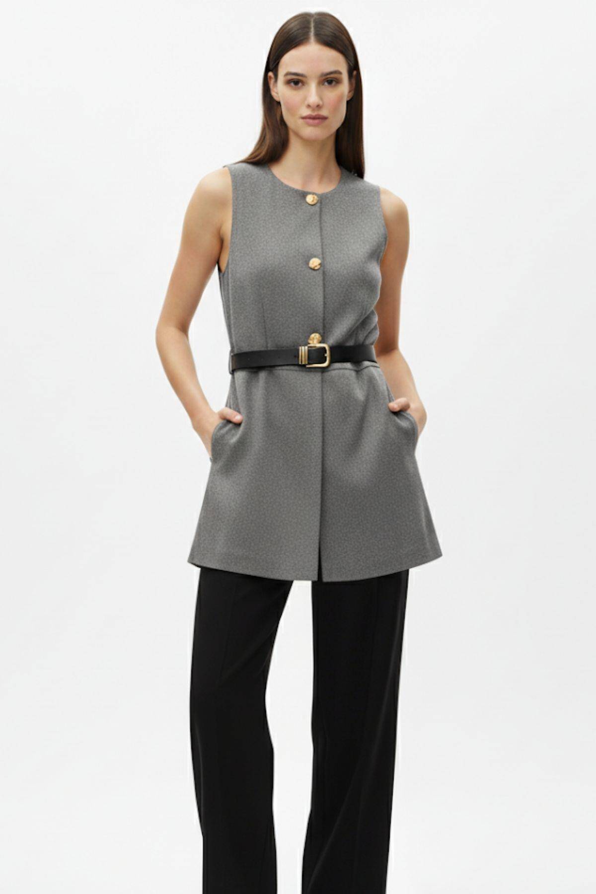8145A Gold Düğmeli Kemerli Yelek Antrasit