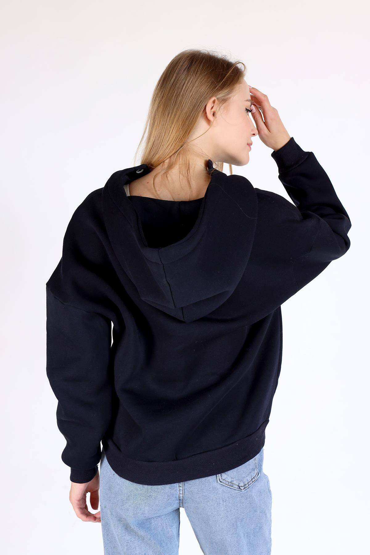 Siyah Kapüşonlu Cepli Fermuarlı Kap 4572A