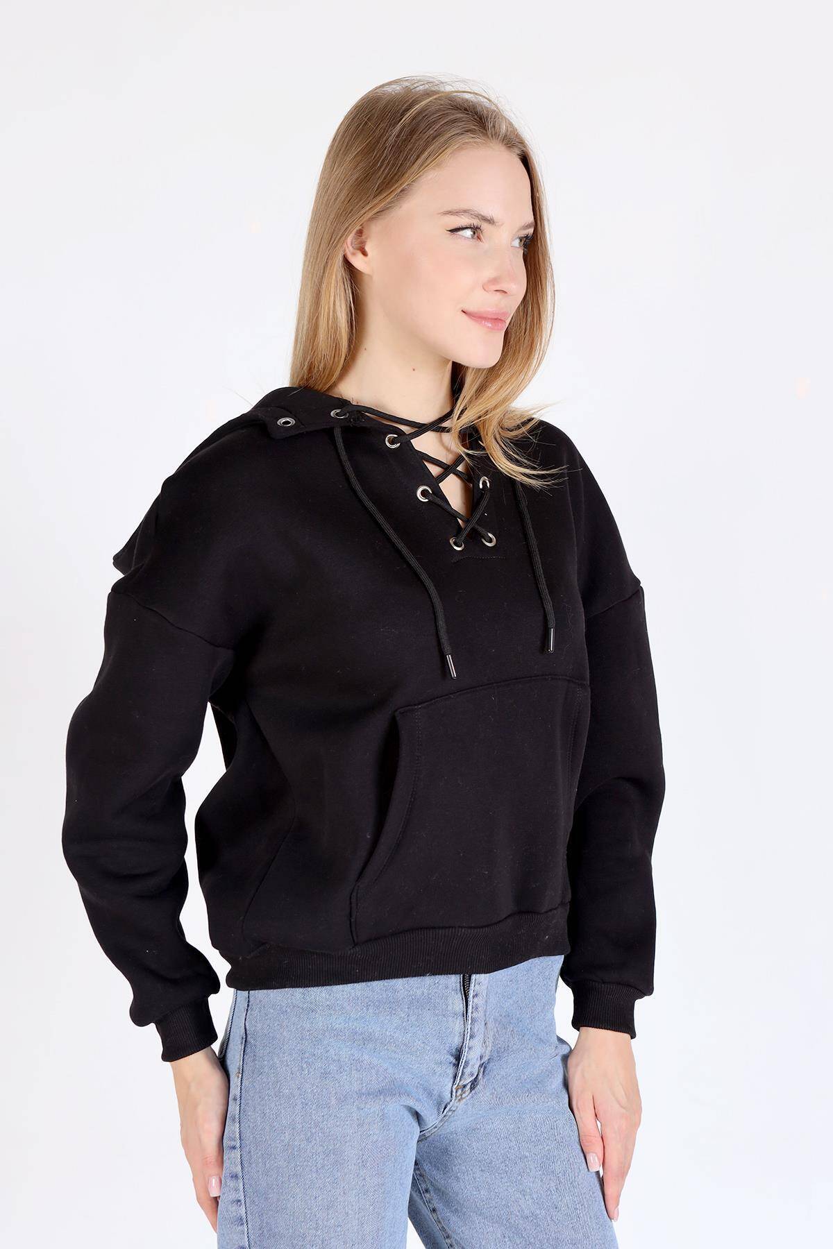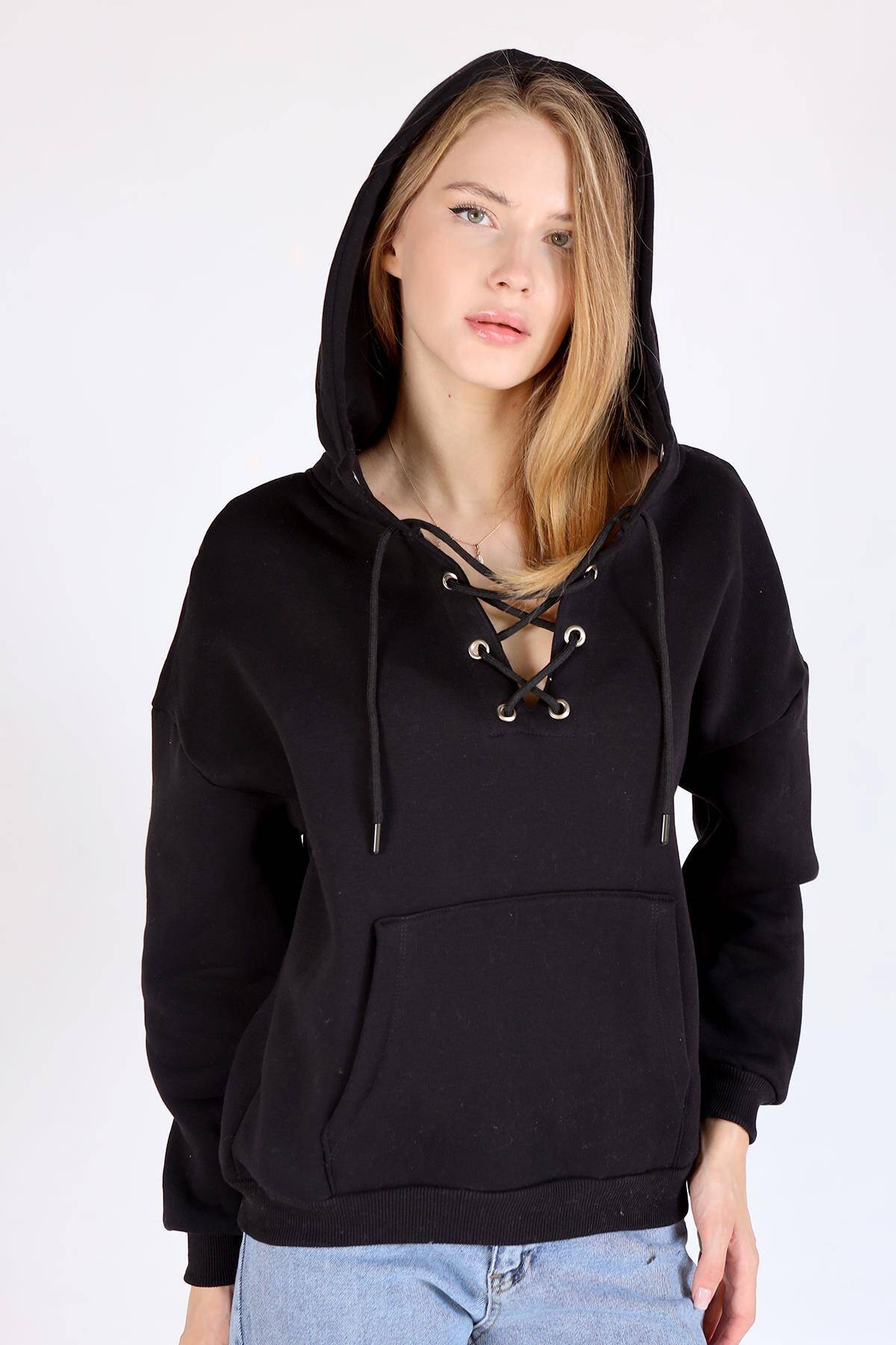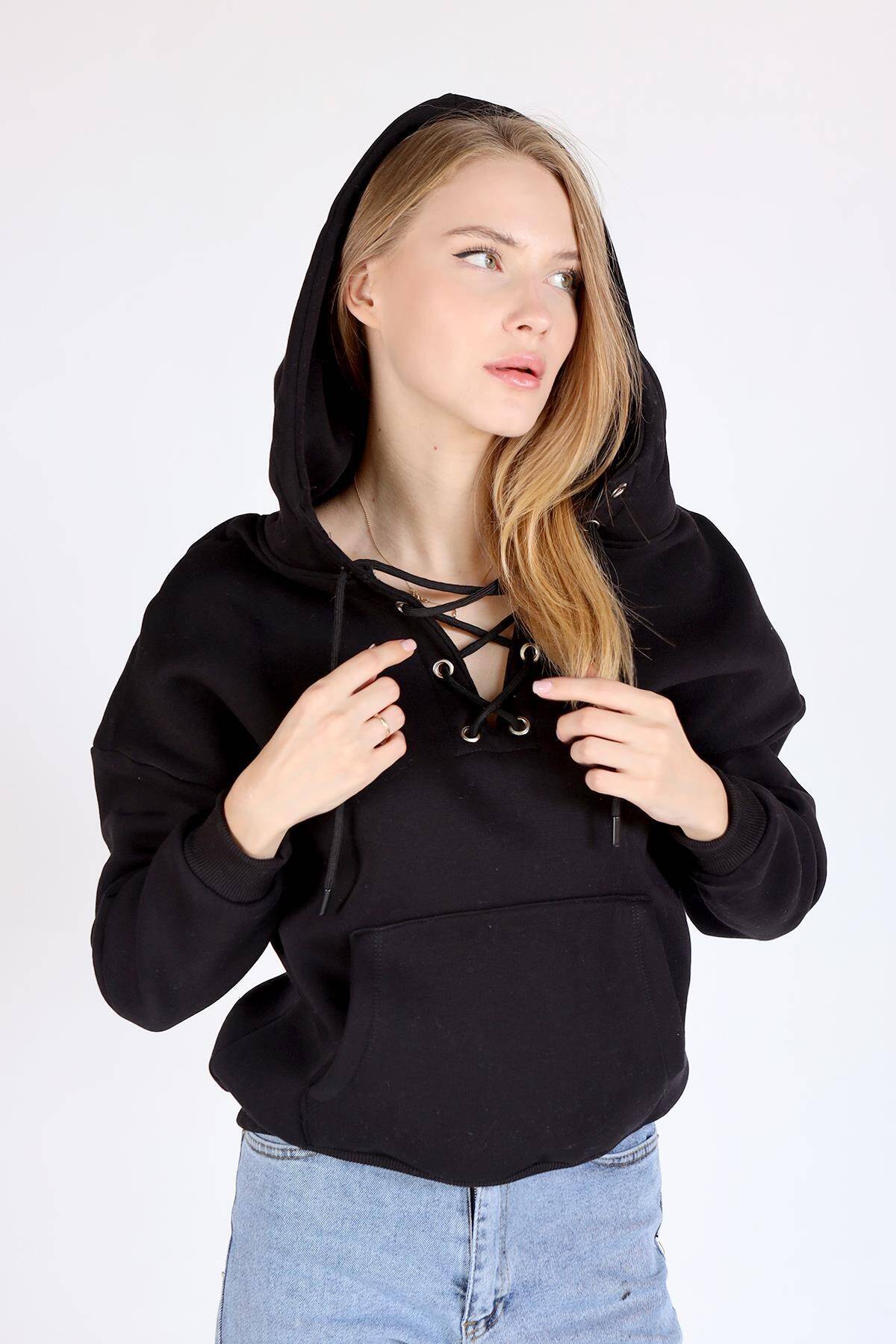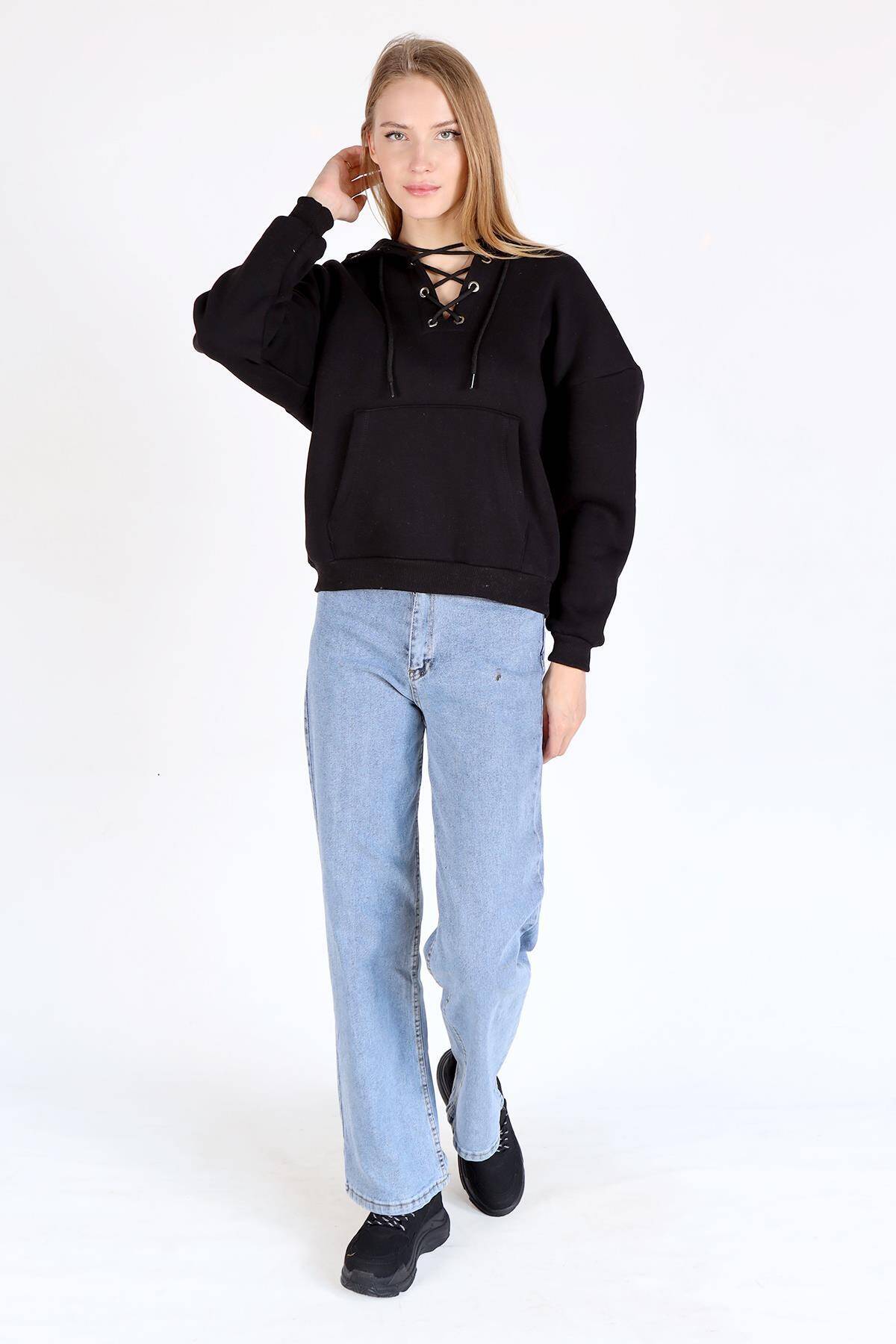 Siyah Kapüşonlu Cepli Fermuarlı Kap 4572A