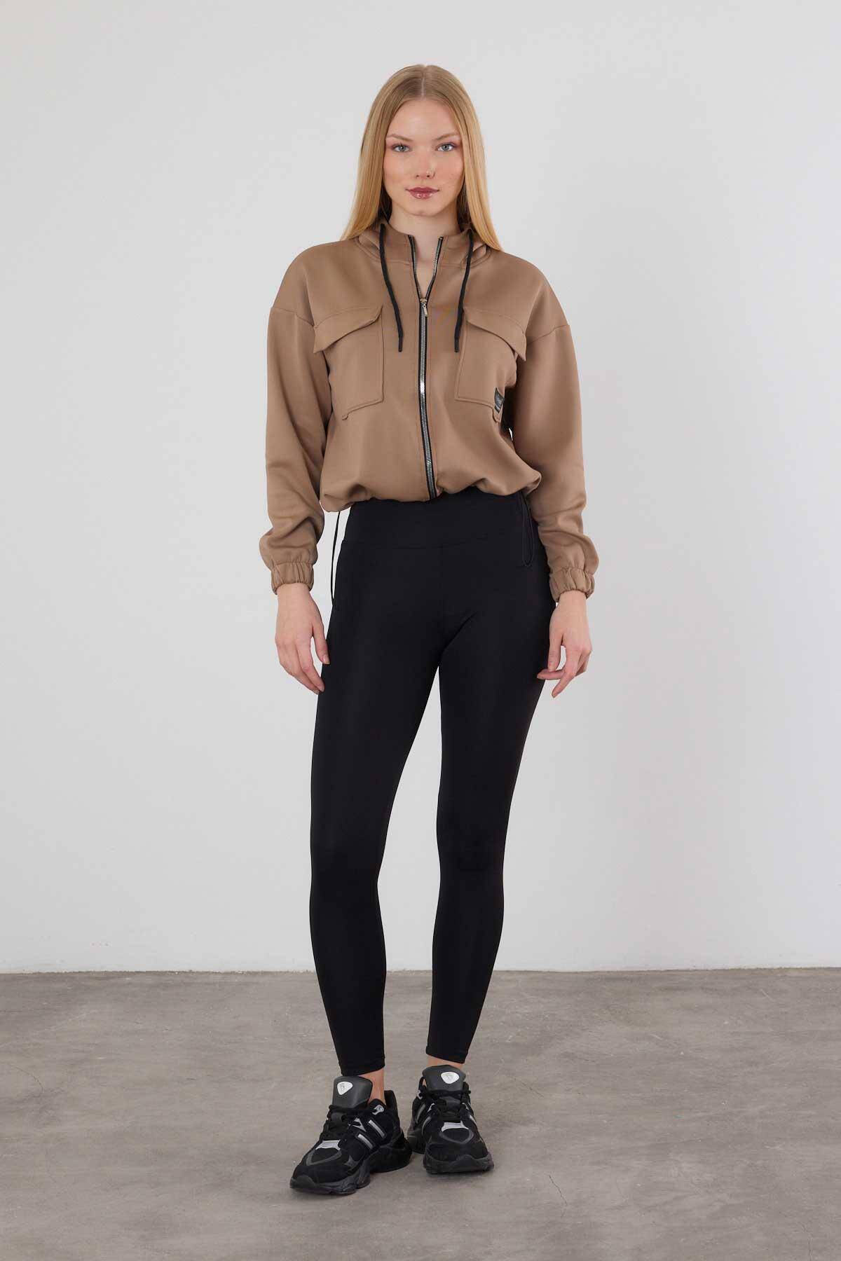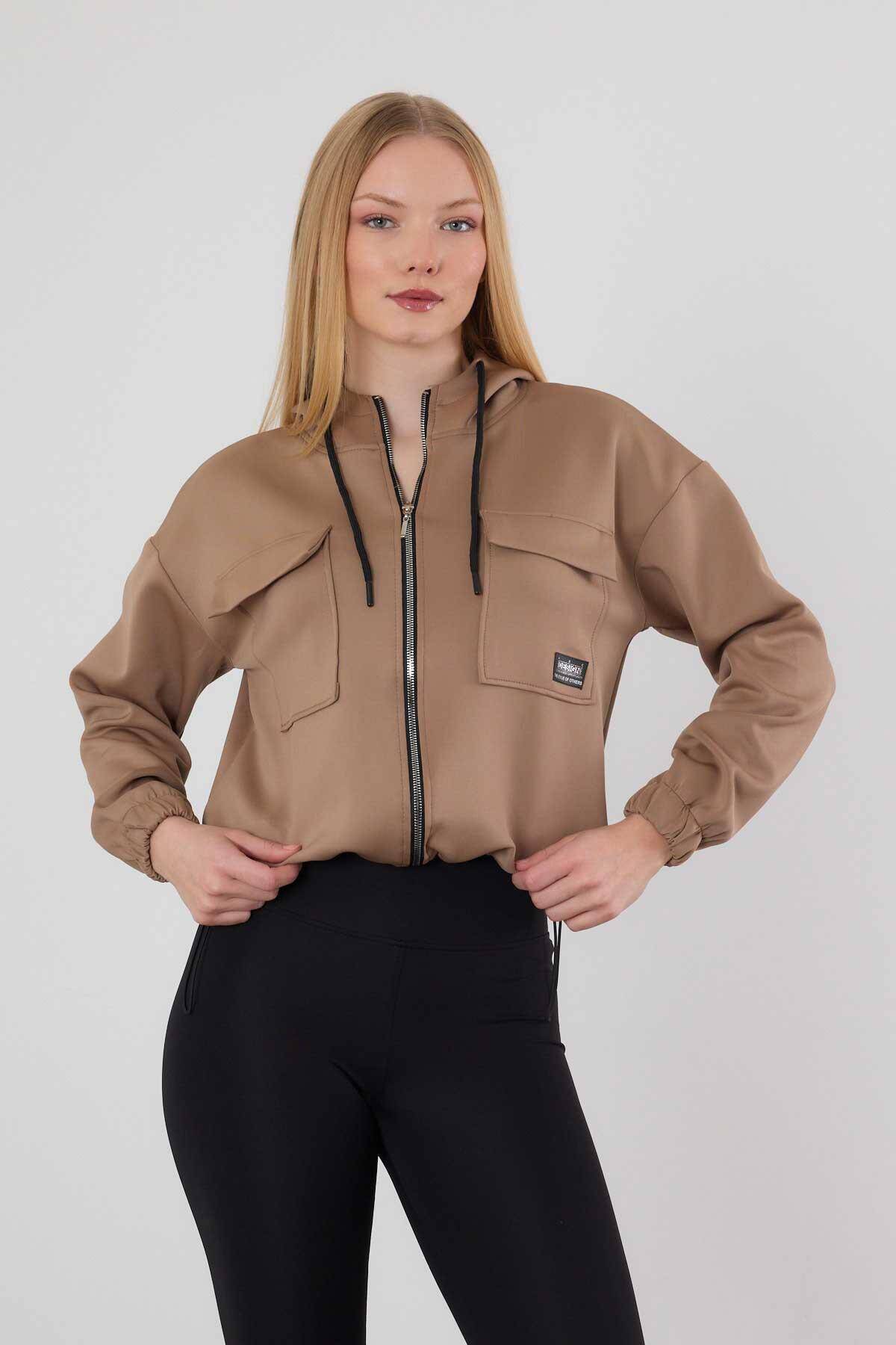 Bisküvi Kapüşonlu Cepli Fermuarlı Kap 4572A
