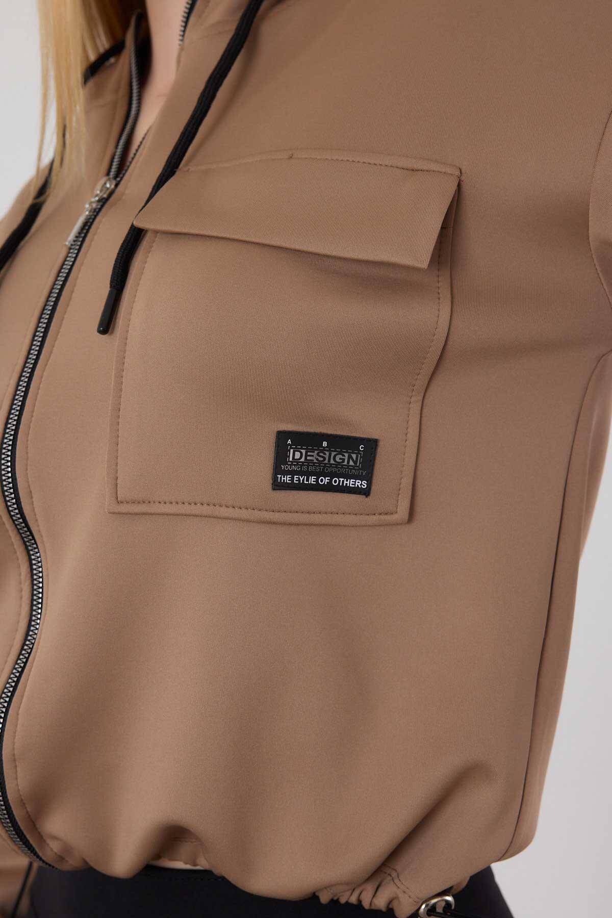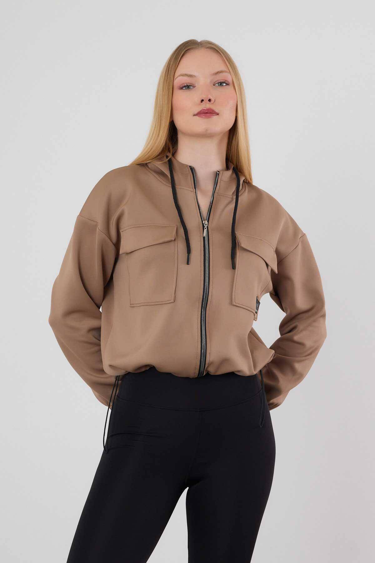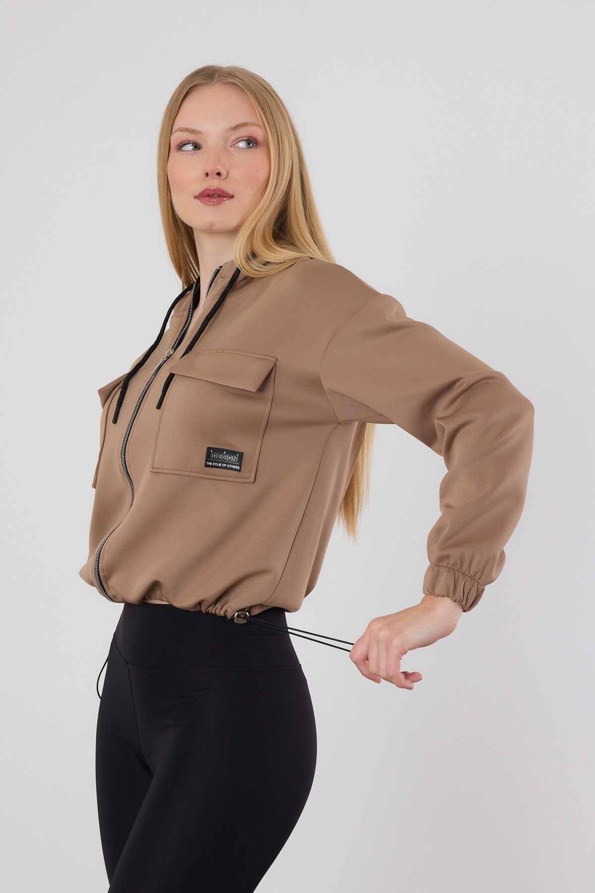Bej Kapüşonlu Cepli Fermuarlı Kap 4572A