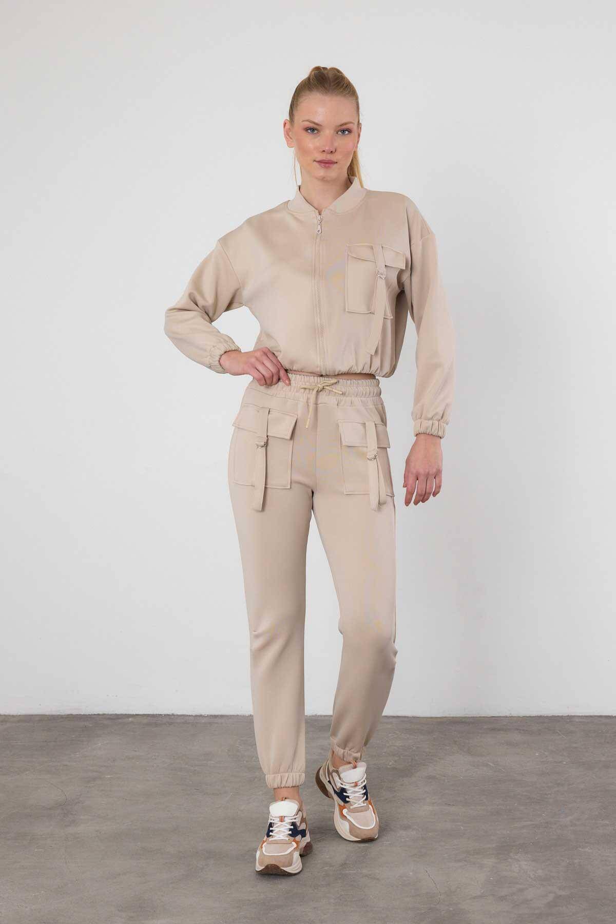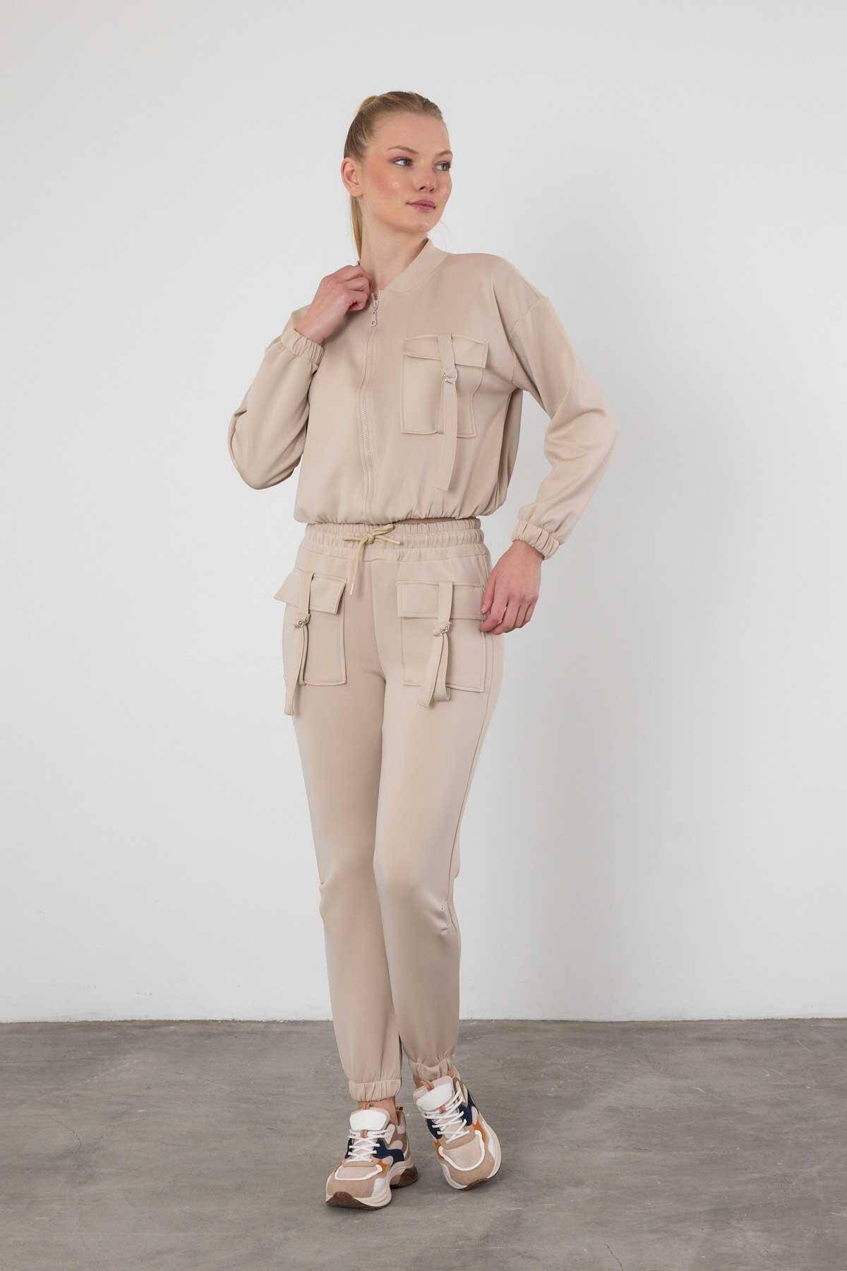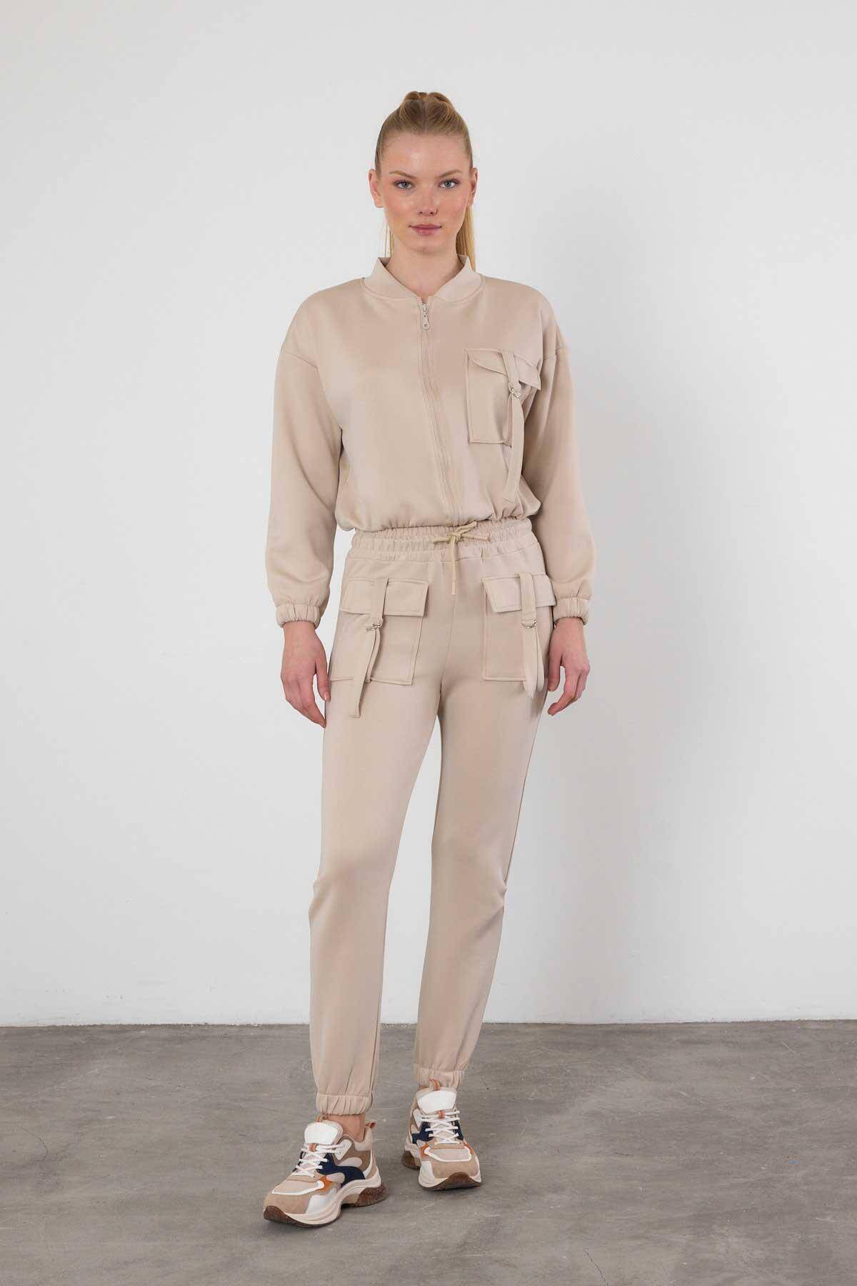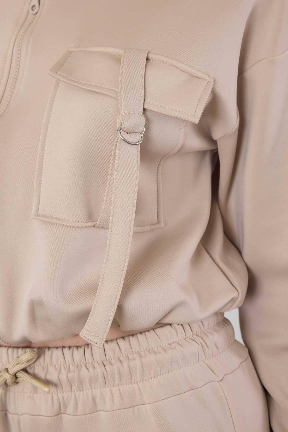 Bej Kapüşonlu Cepli Fermuarlı Kap 4572A