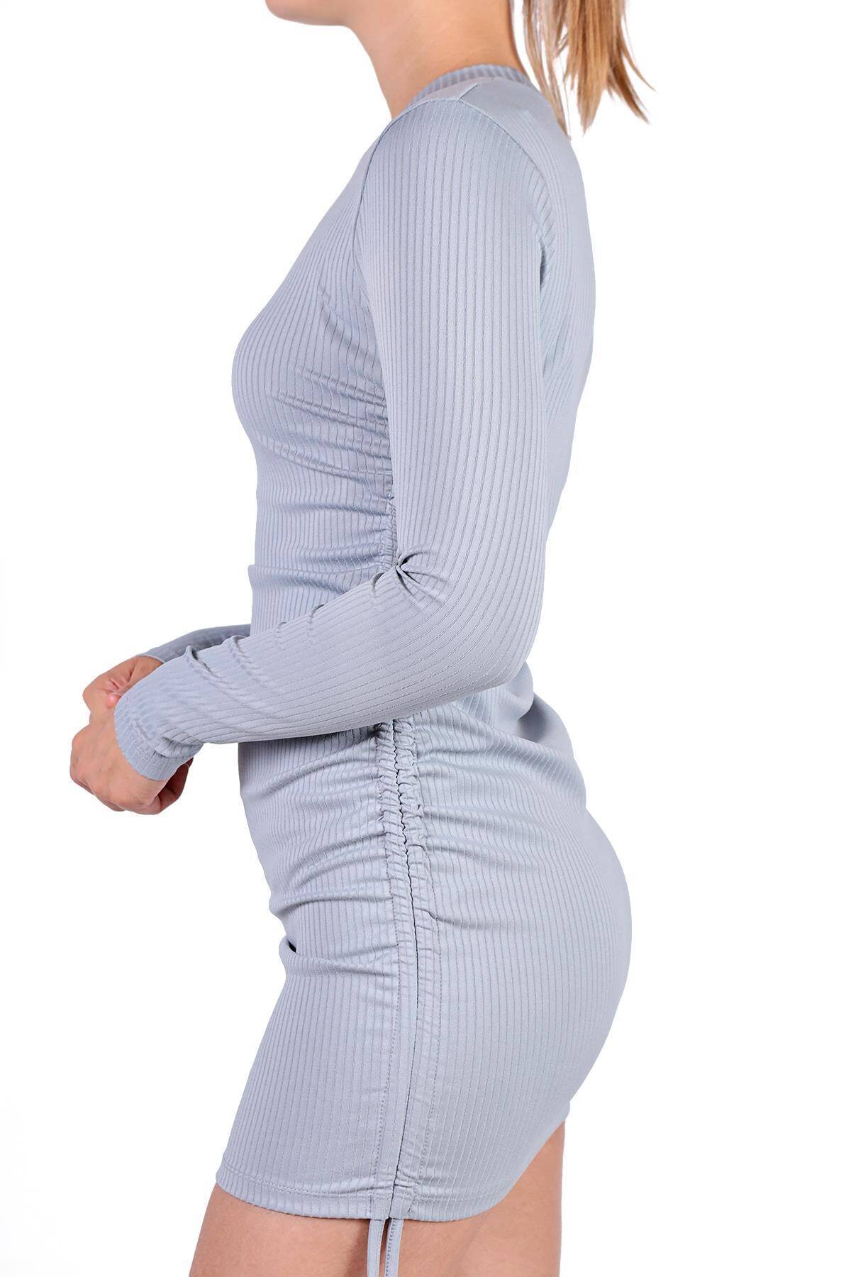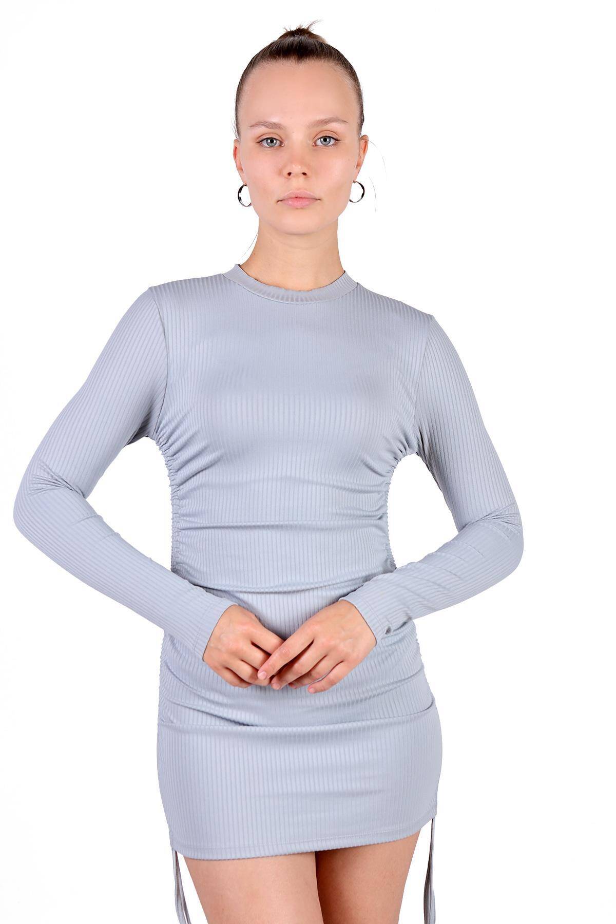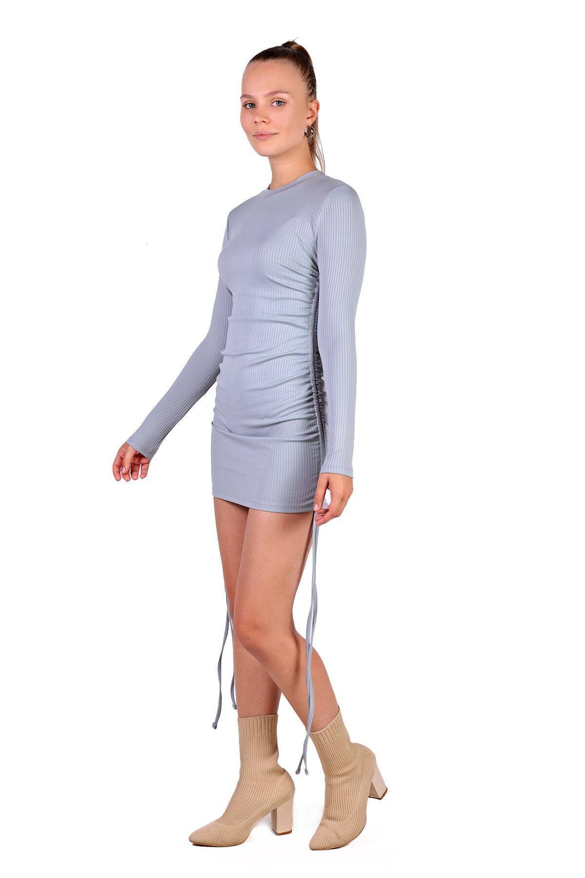 9164M Yan Büzgülü Fitilli Elbise Gri