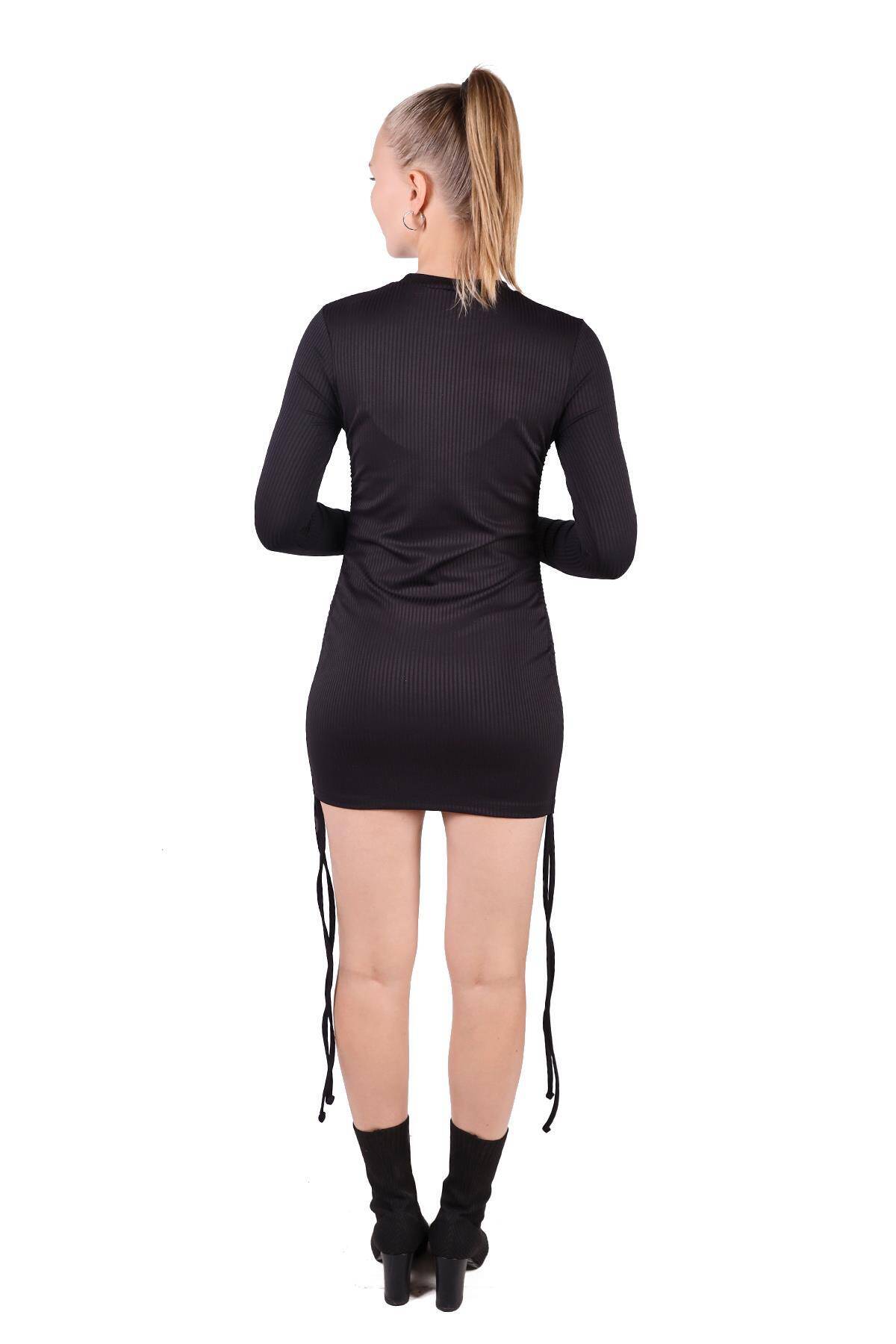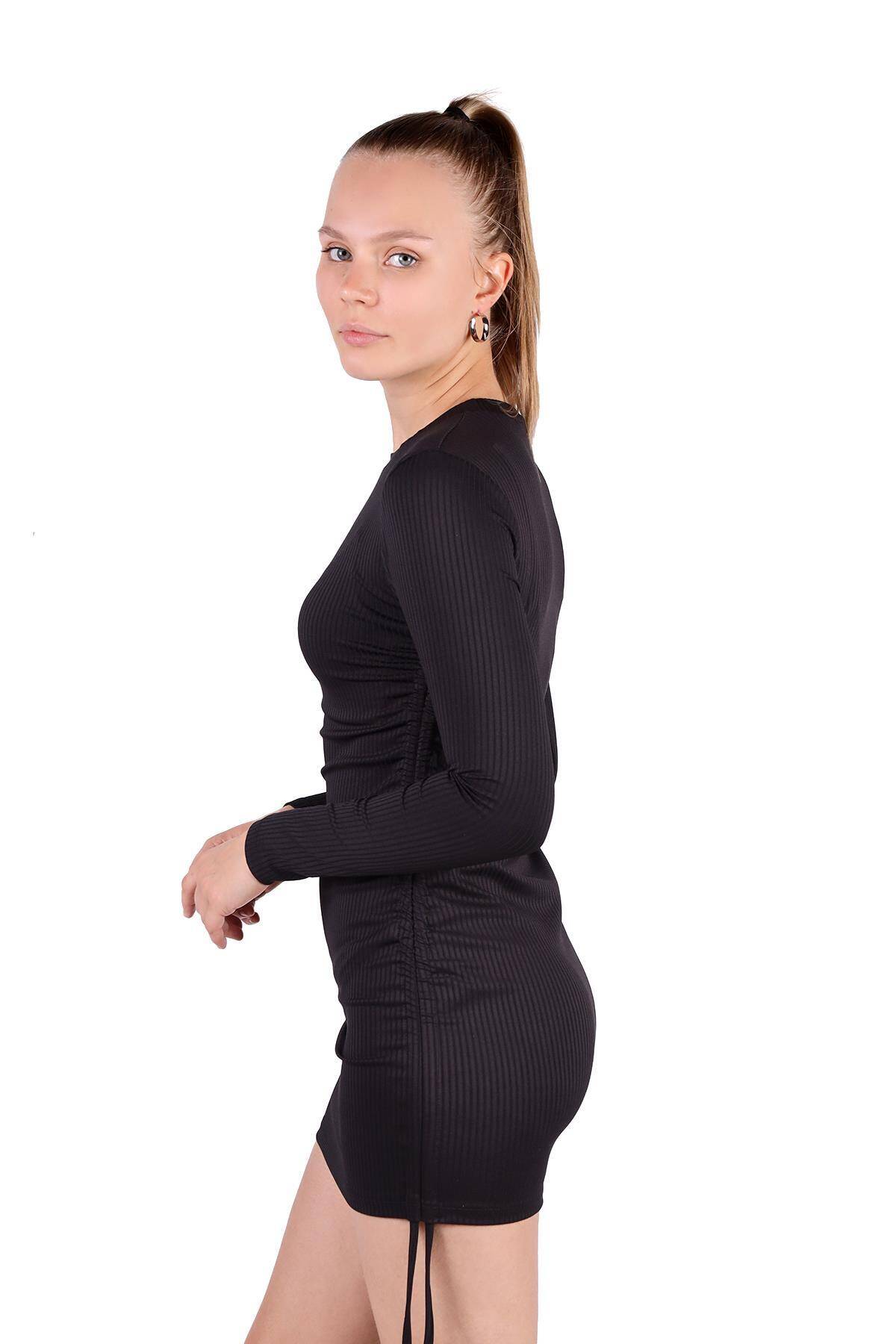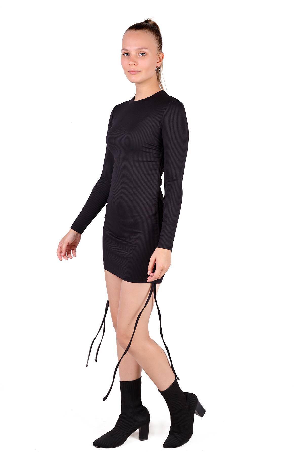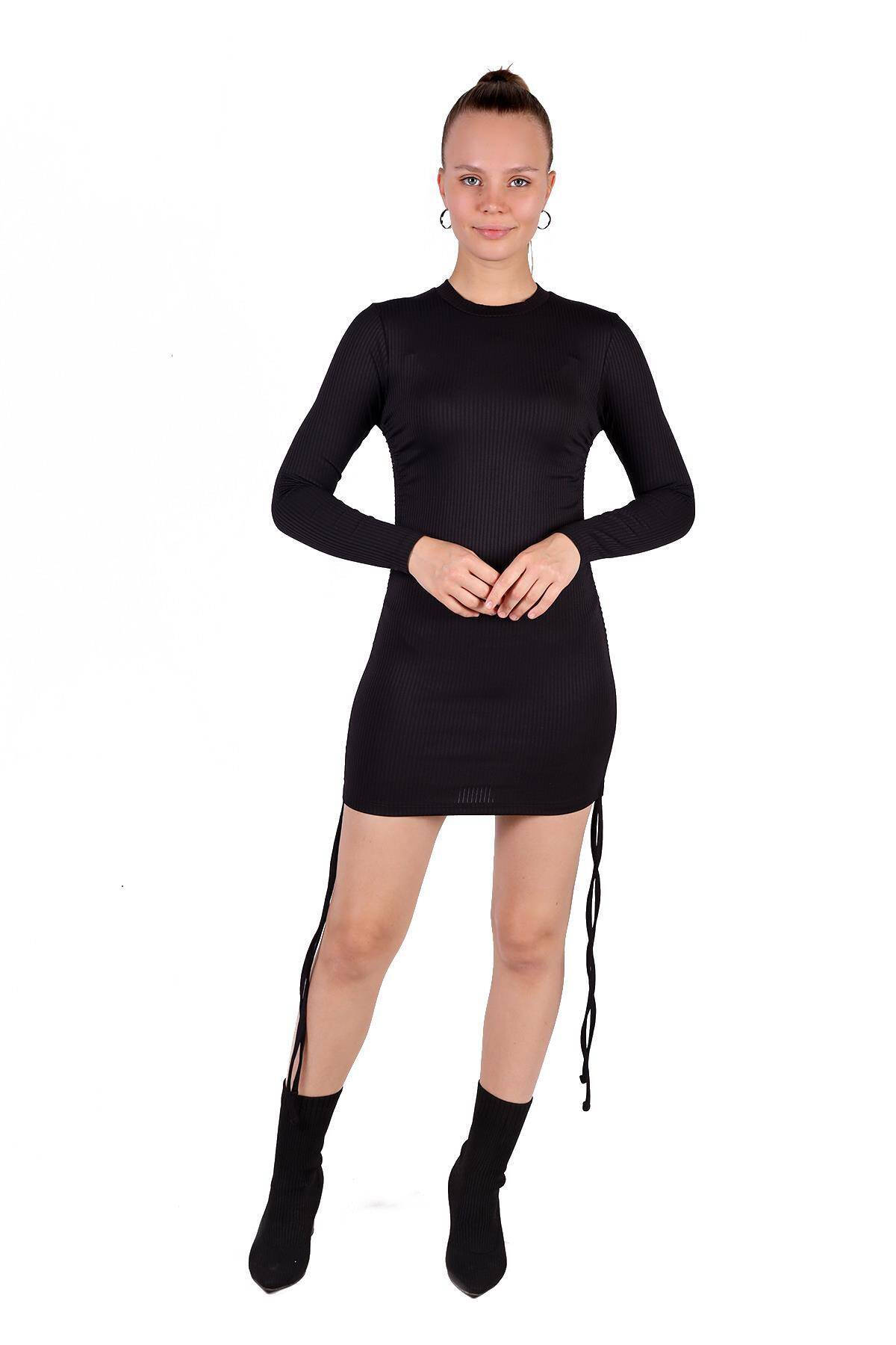 9164M Yan Büzgülü Fitilli Elbise Siyah