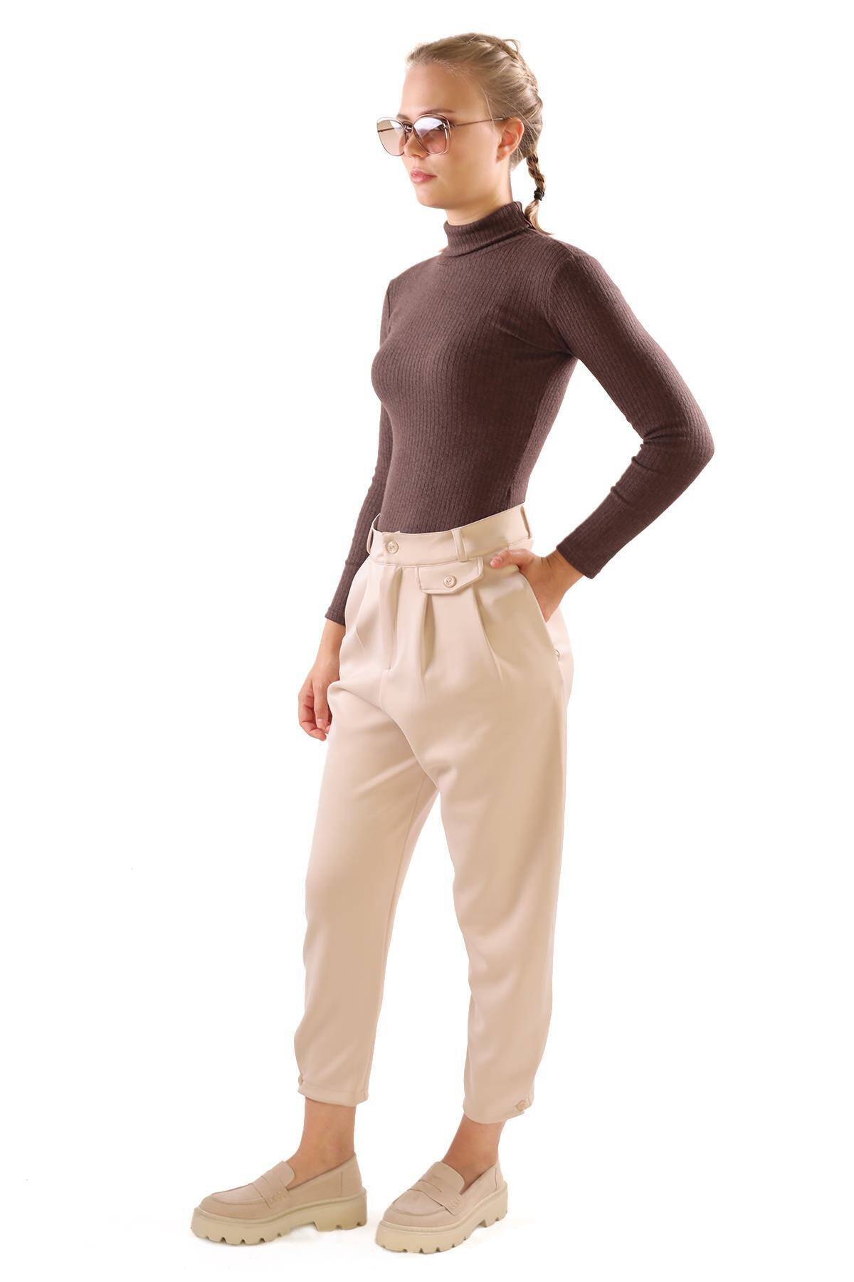Bej Kapüşonlu Cepli Fermuarlı Kap 4572A
