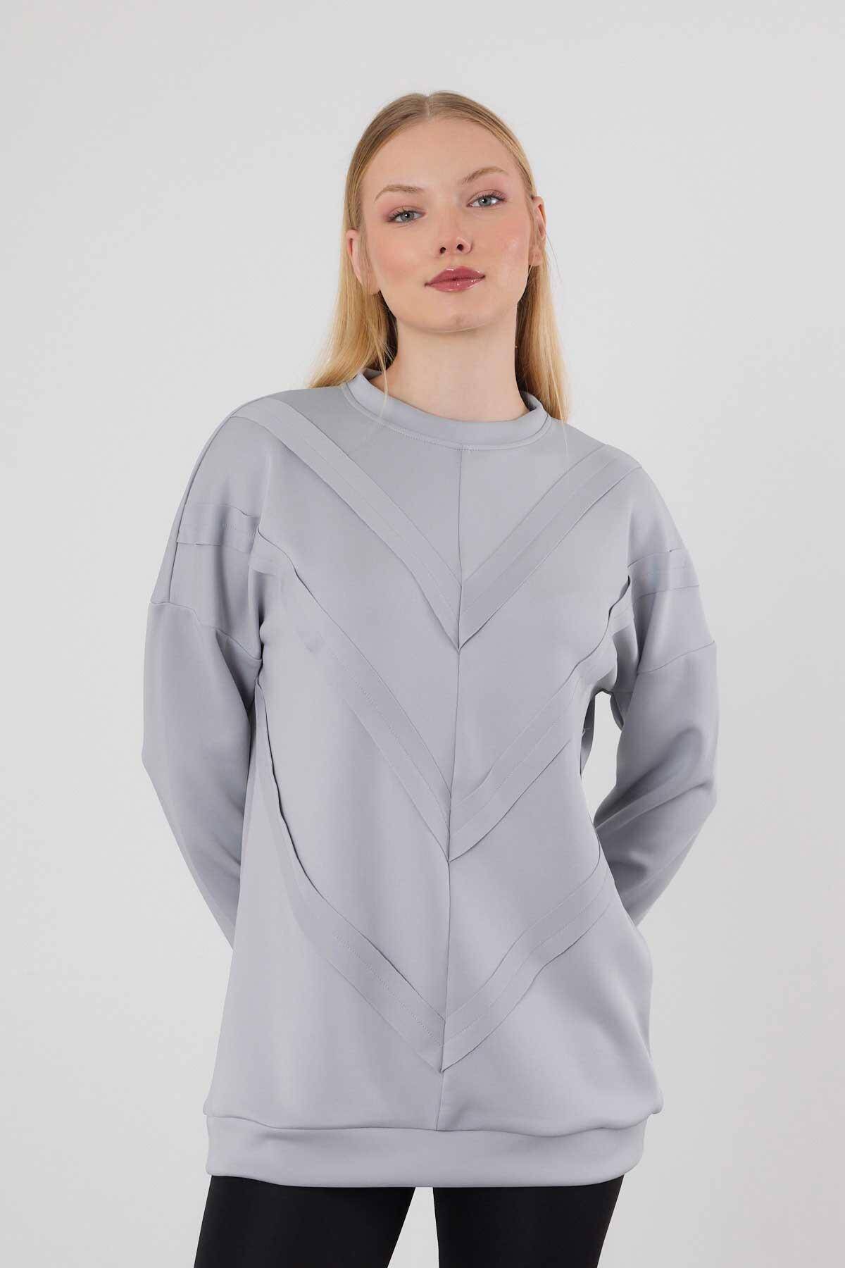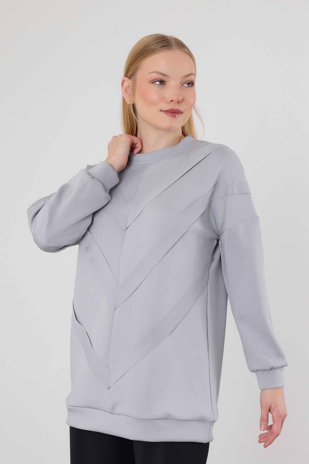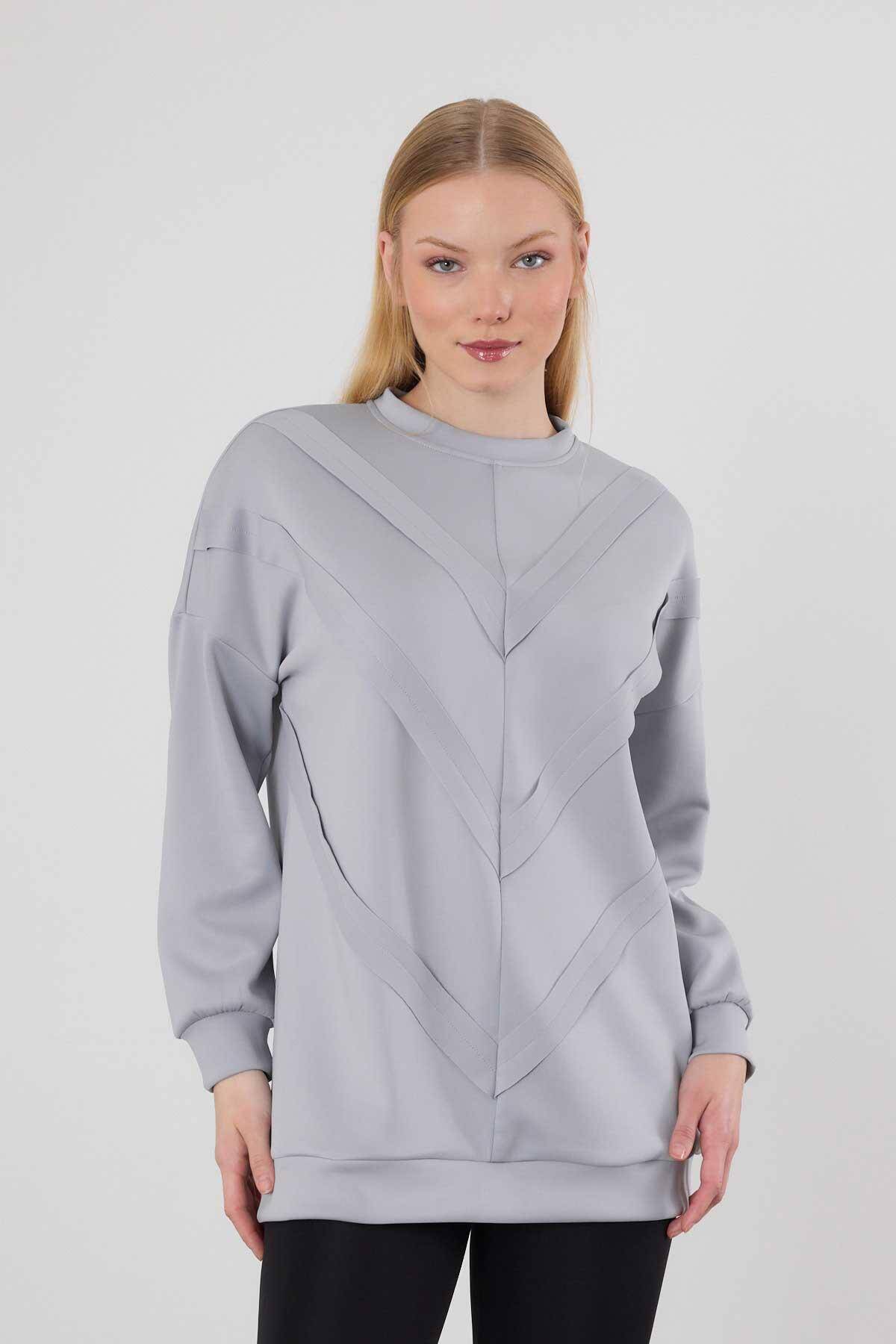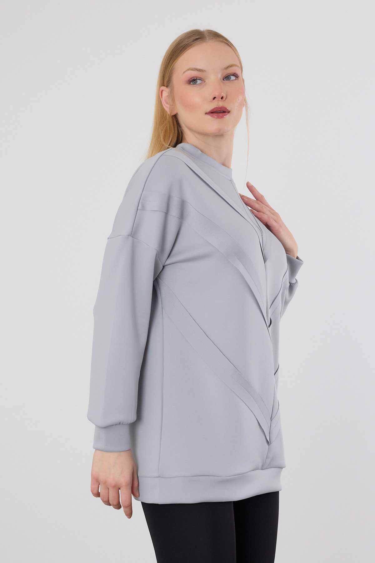 7149A Belden Bağlamalı Uzun Kaşe Kaban Gri