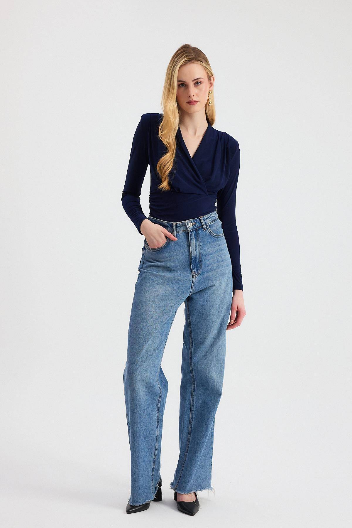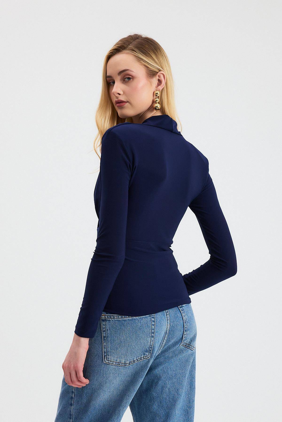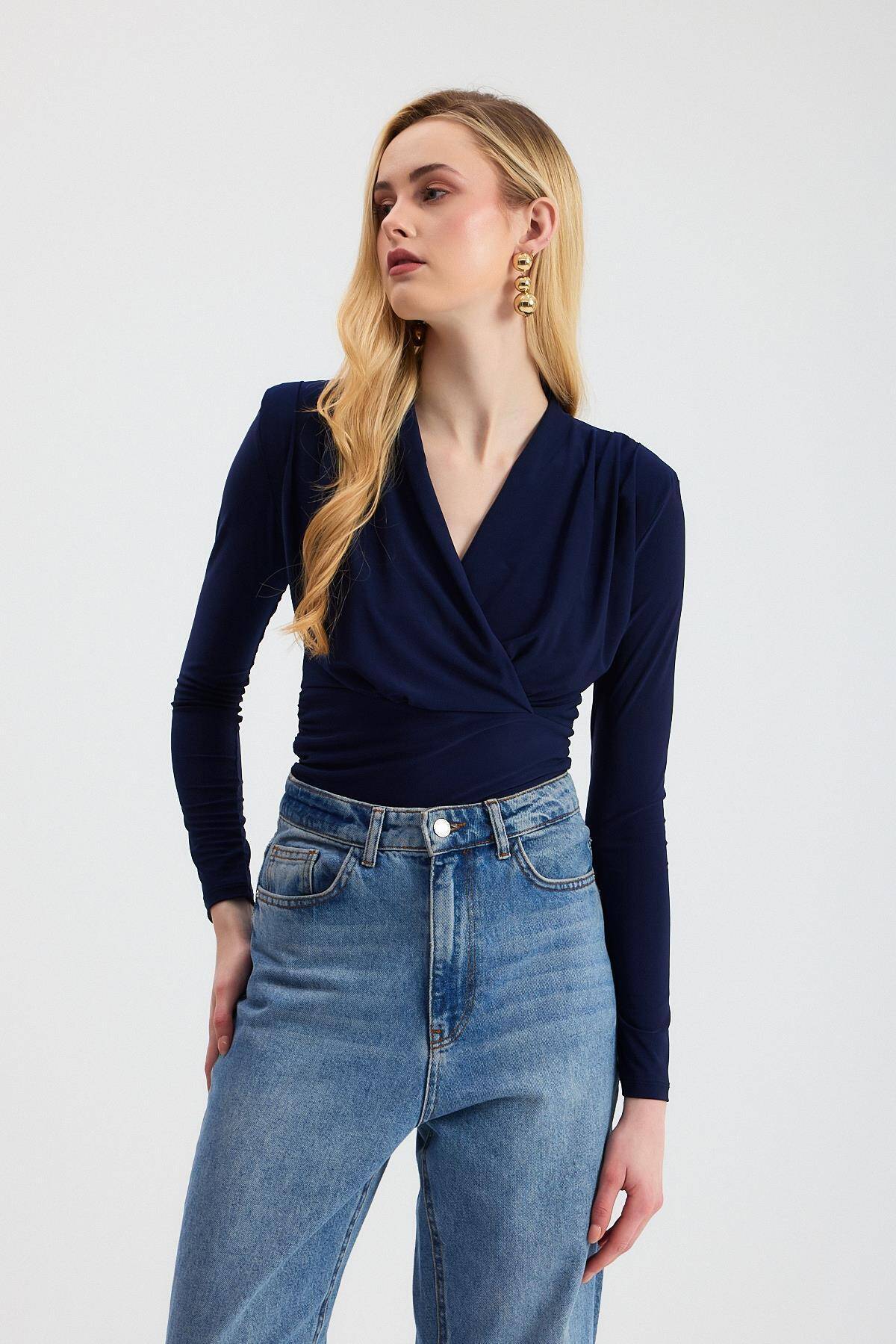 9256 Kruvaze Yaka Vatkalı Bluz Laci