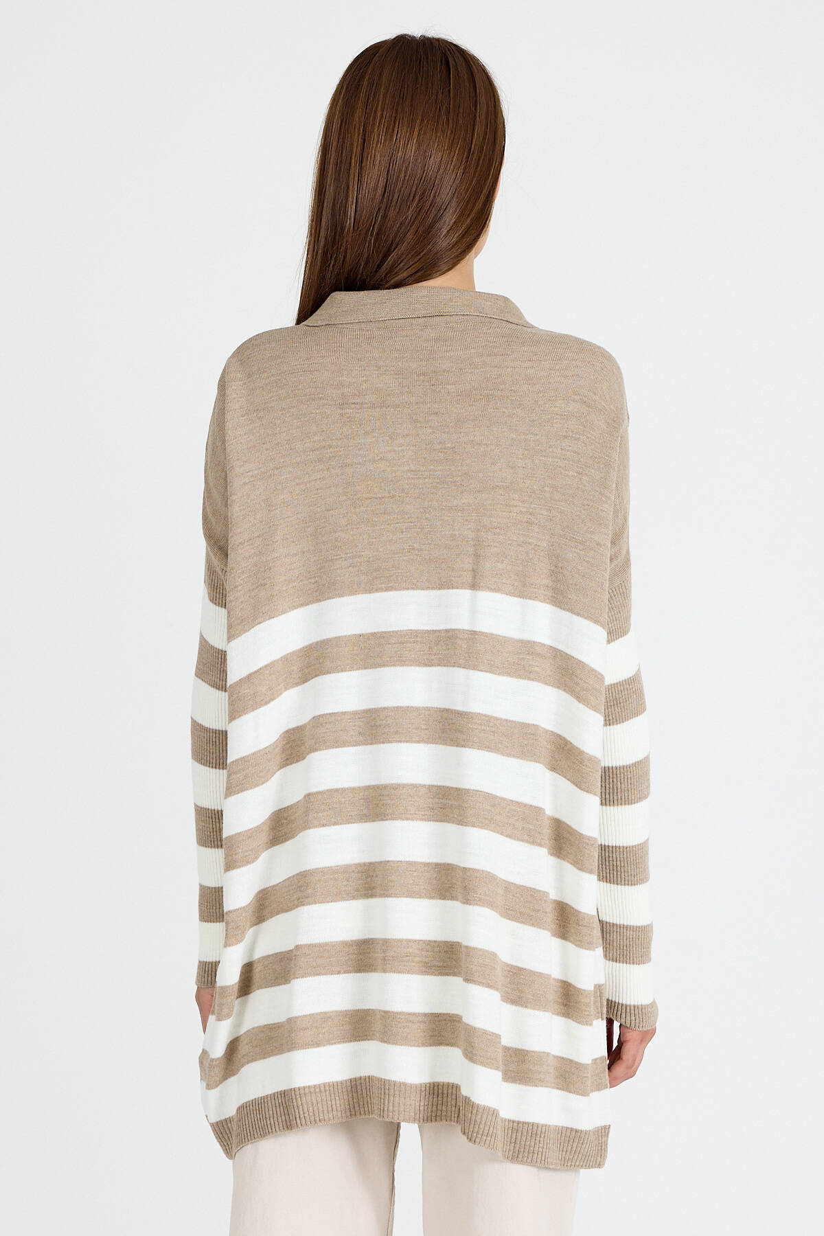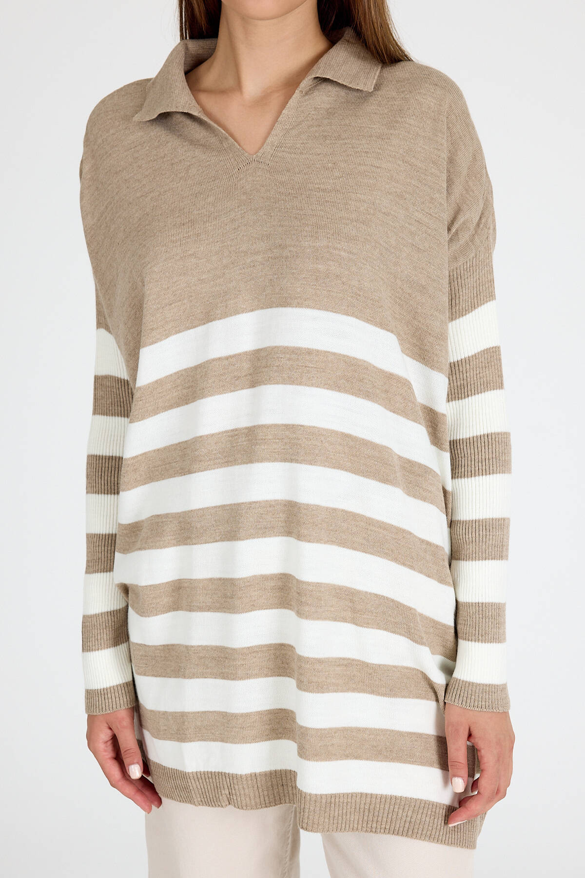 Açık Vizon Polo Yaka Çizgili Tunik 5340