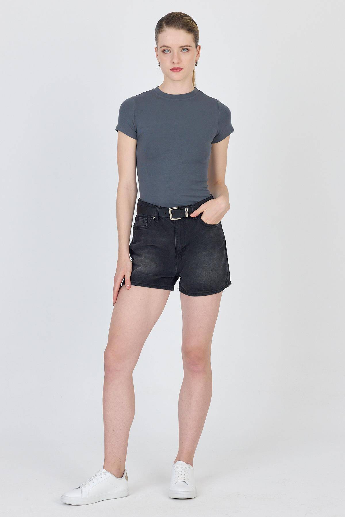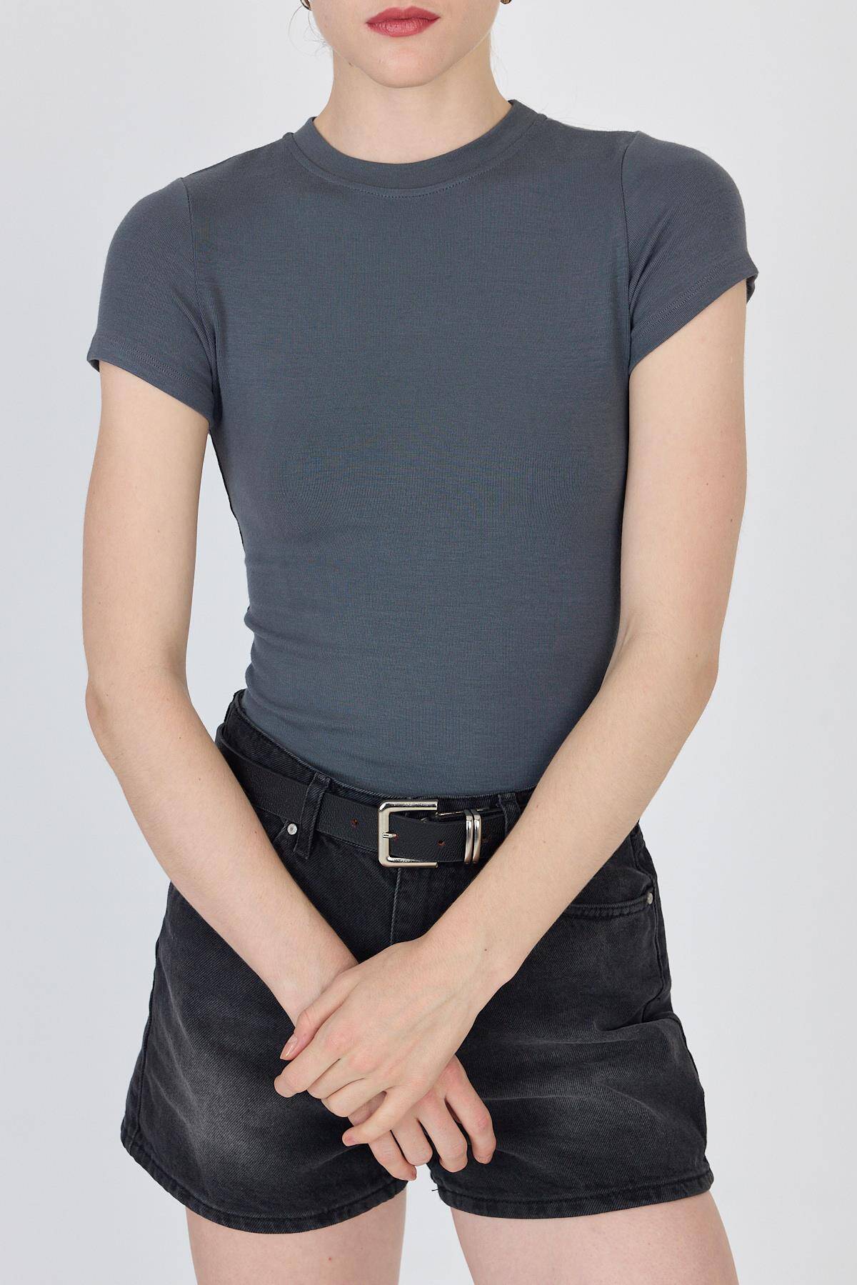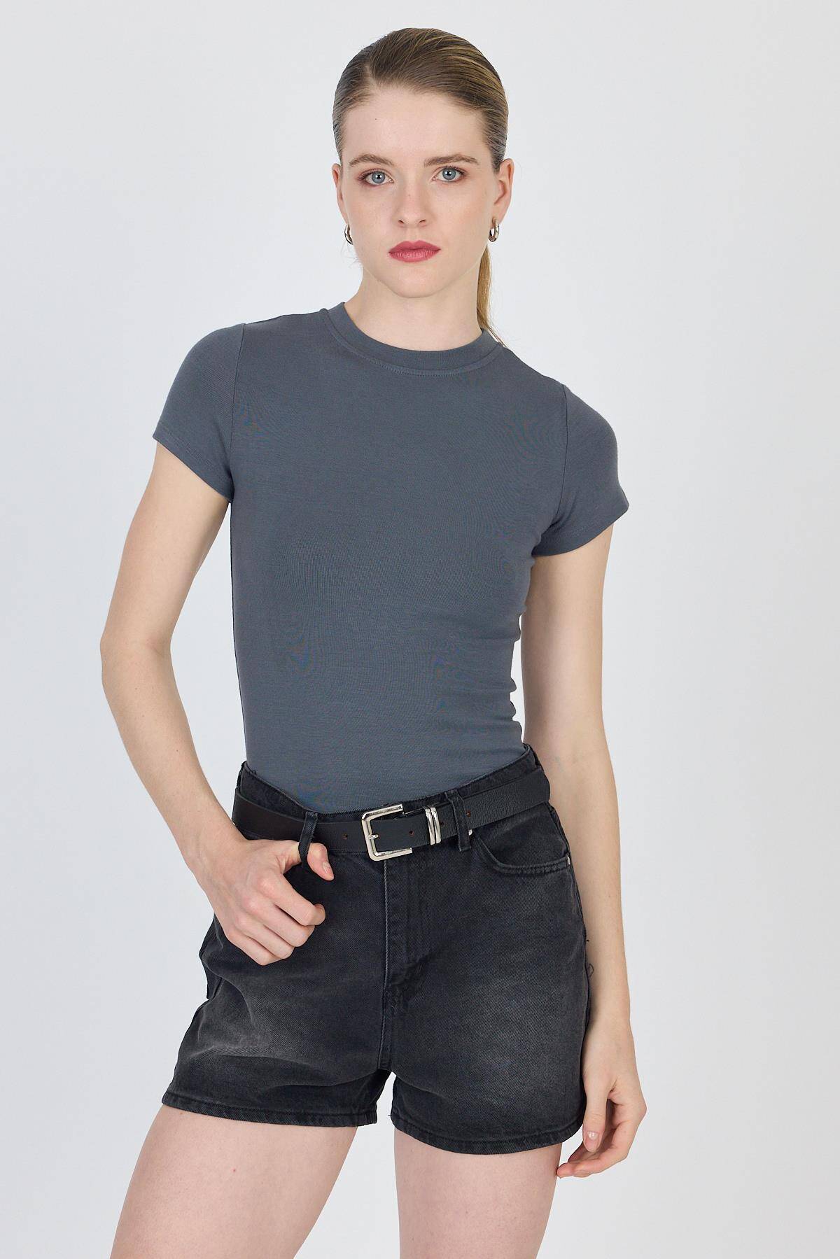 Antrasit Bisiklet Yaka Viskoz/Yumuşak Kumaş Slim Fit Tişört 1468