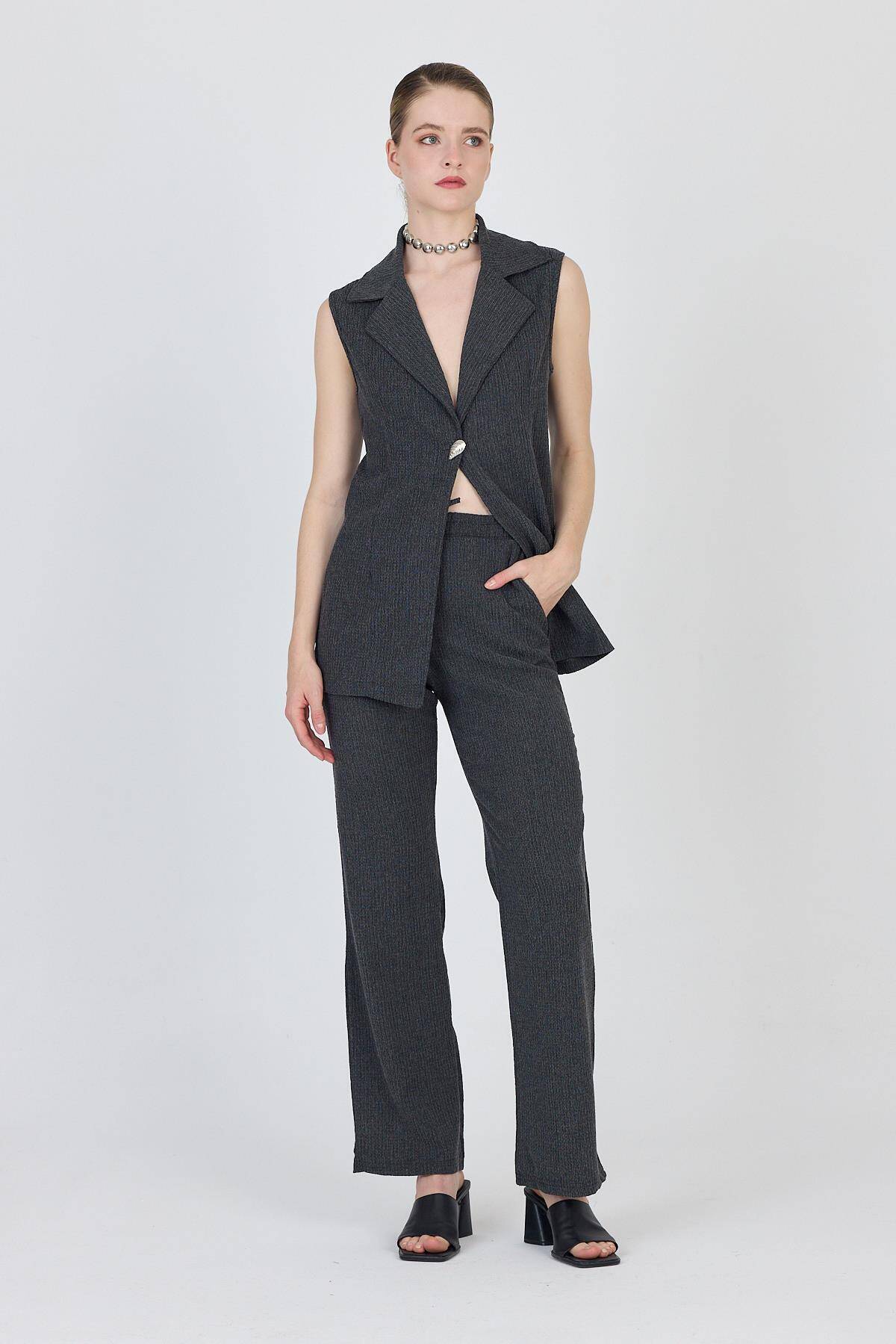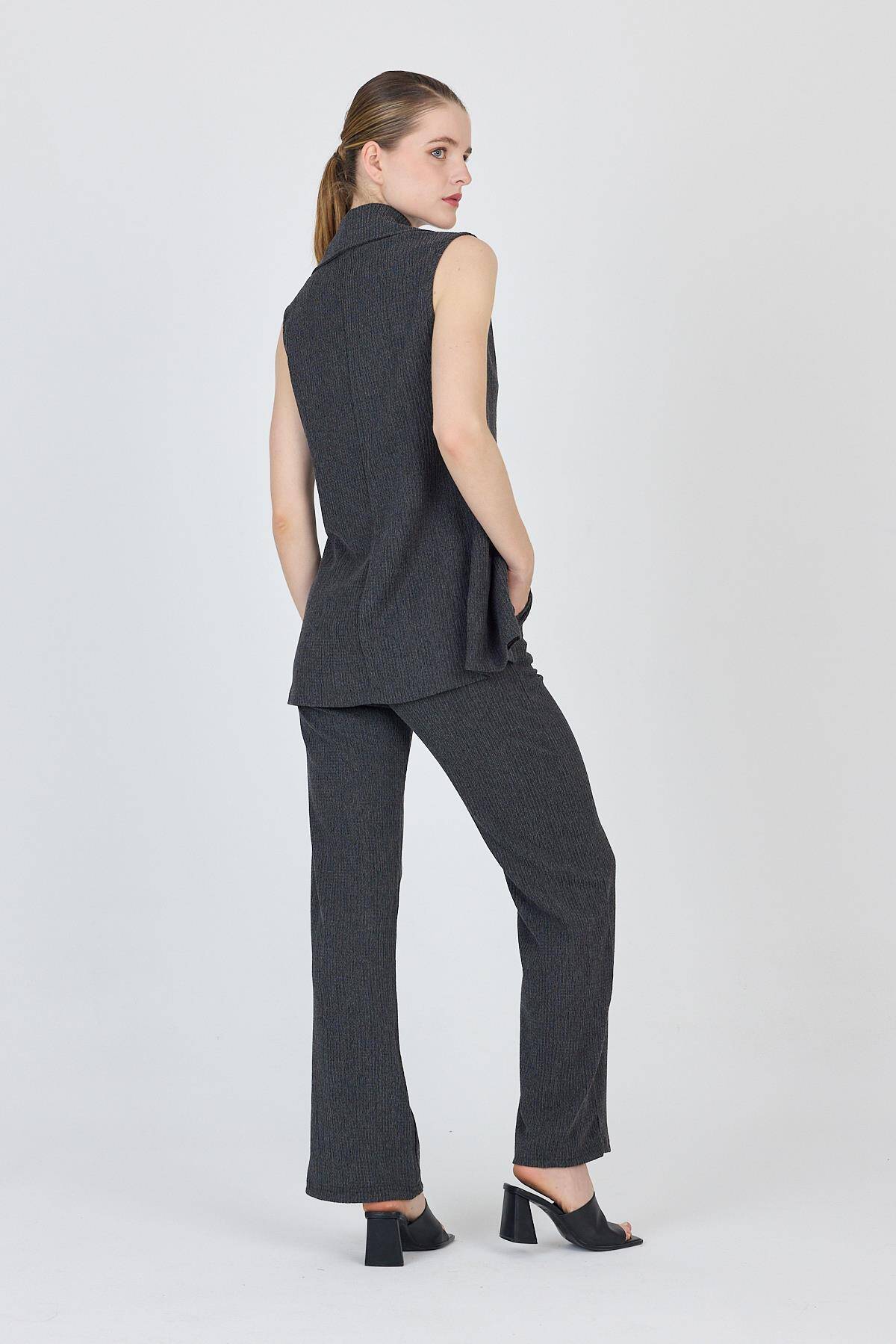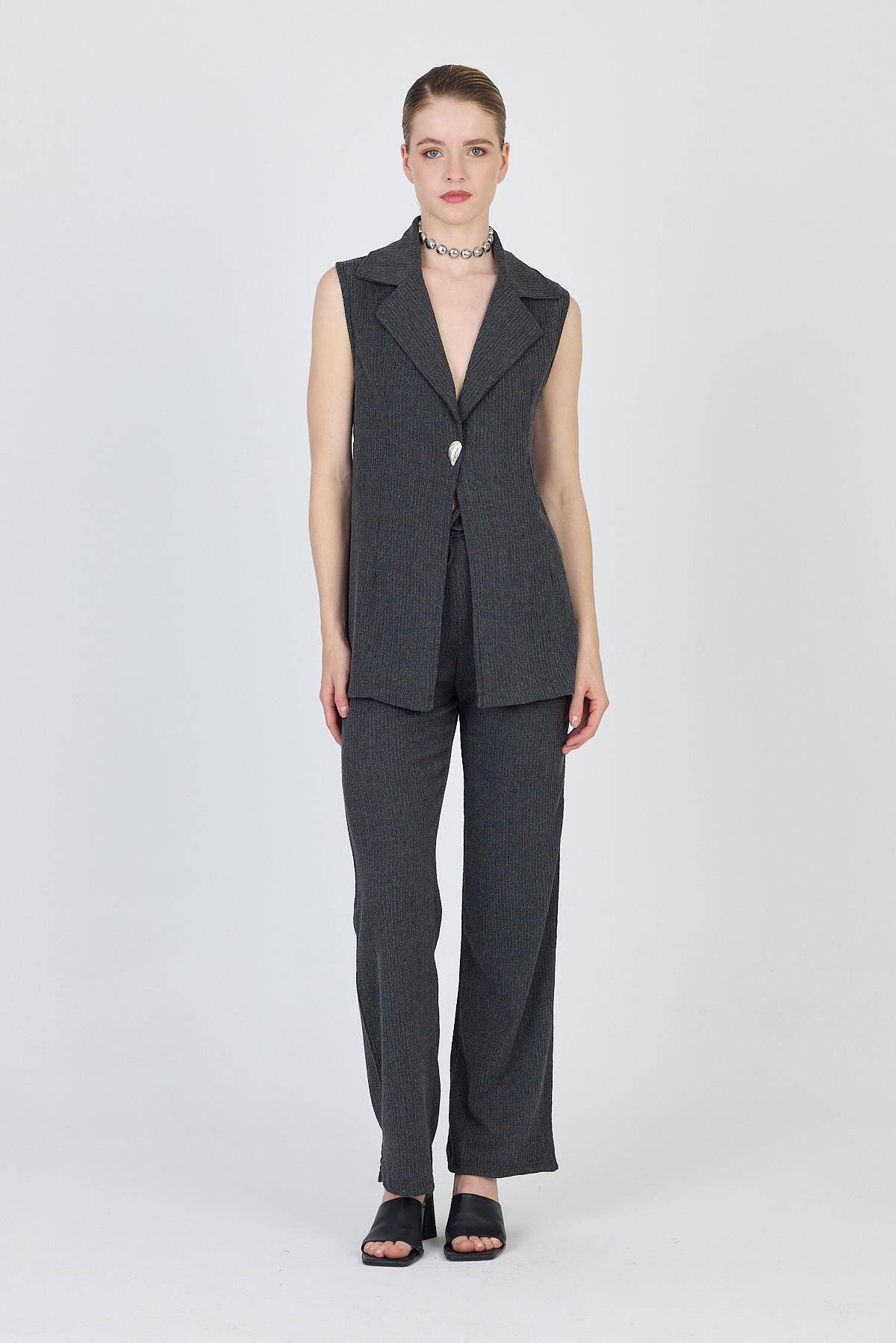 Antrasit Kolsuz Yelek ve Bol Paça Pantolon Takımı 1490