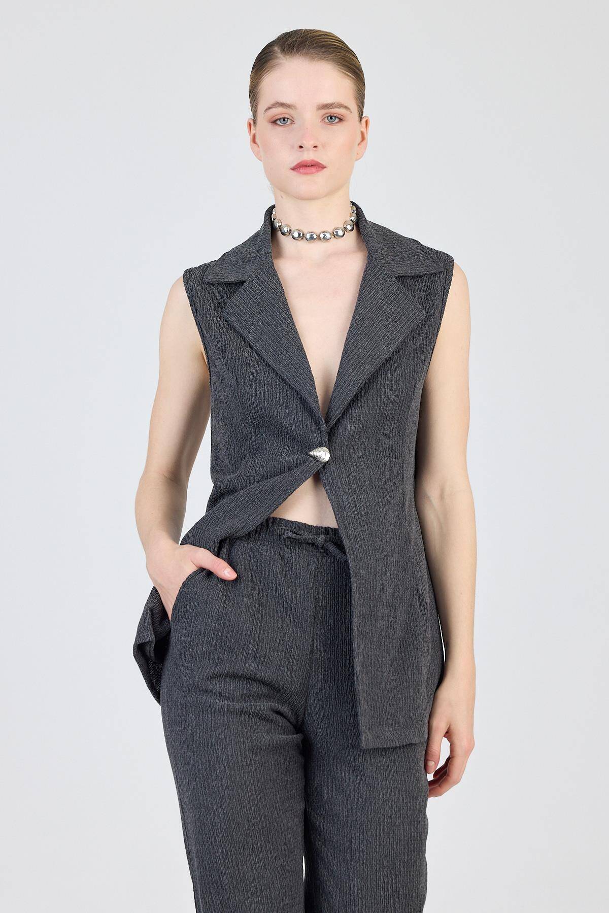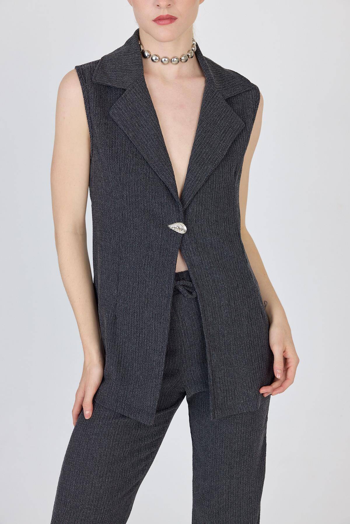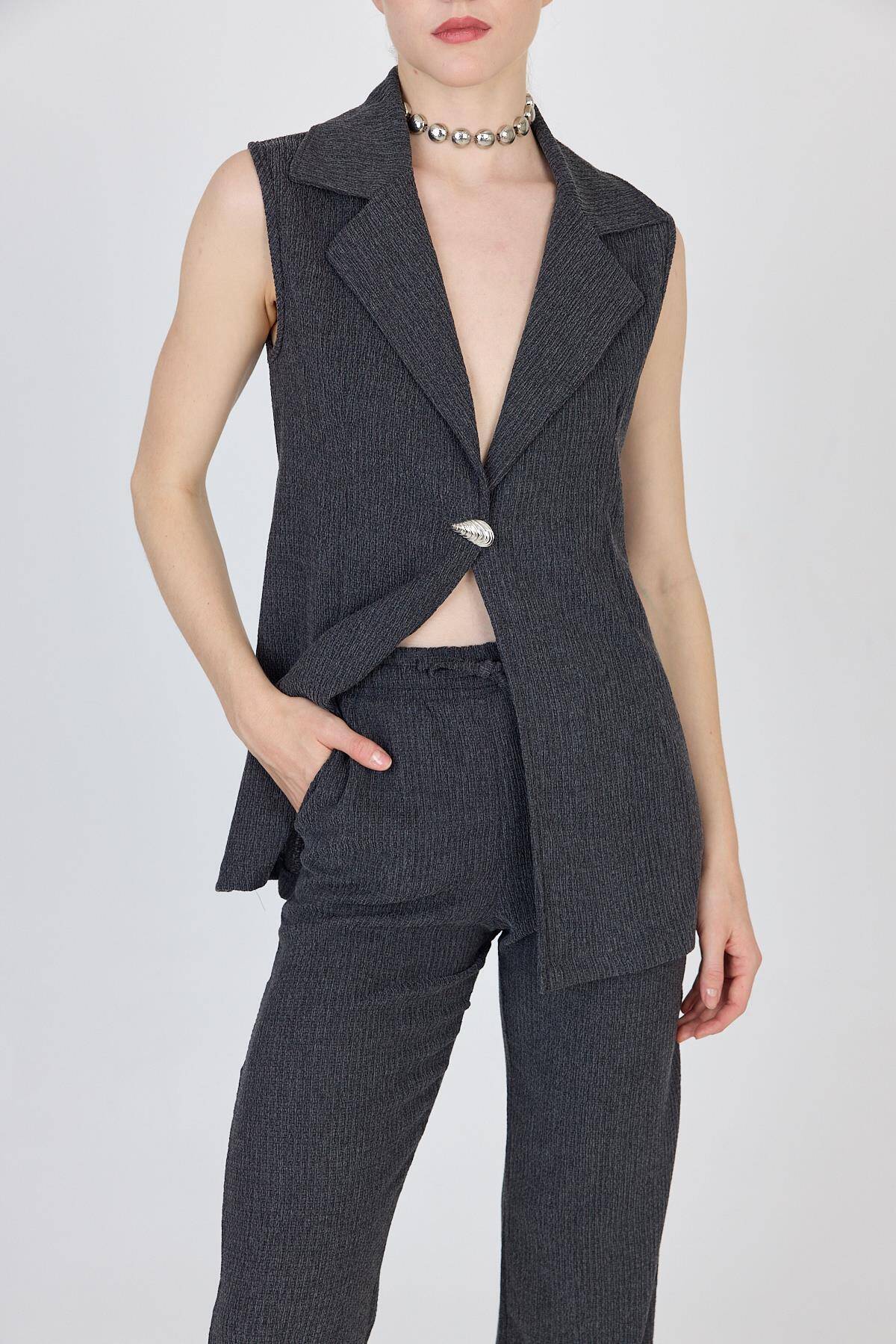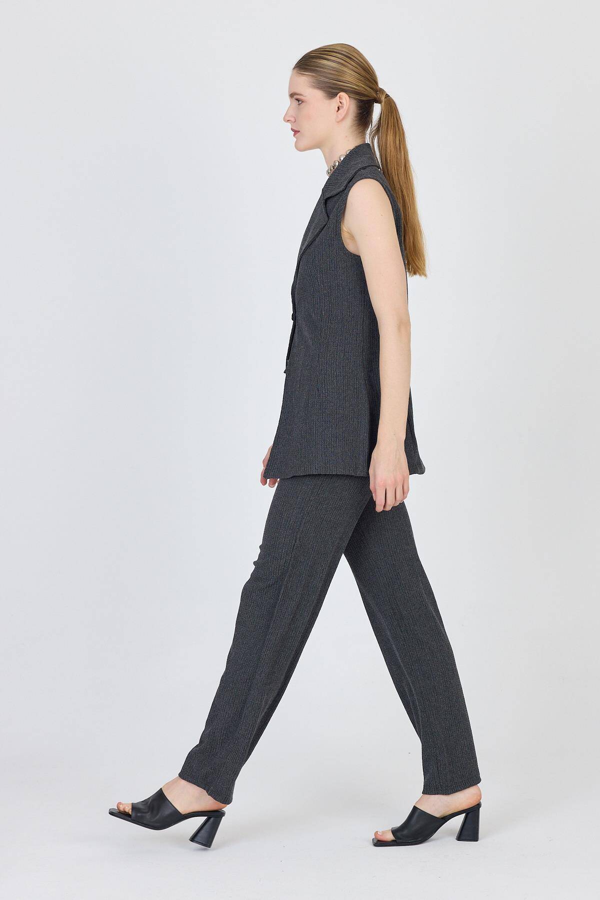 Antrasit Kolsuz Yelek ve Bol Paça Pantolon Takımı 1490