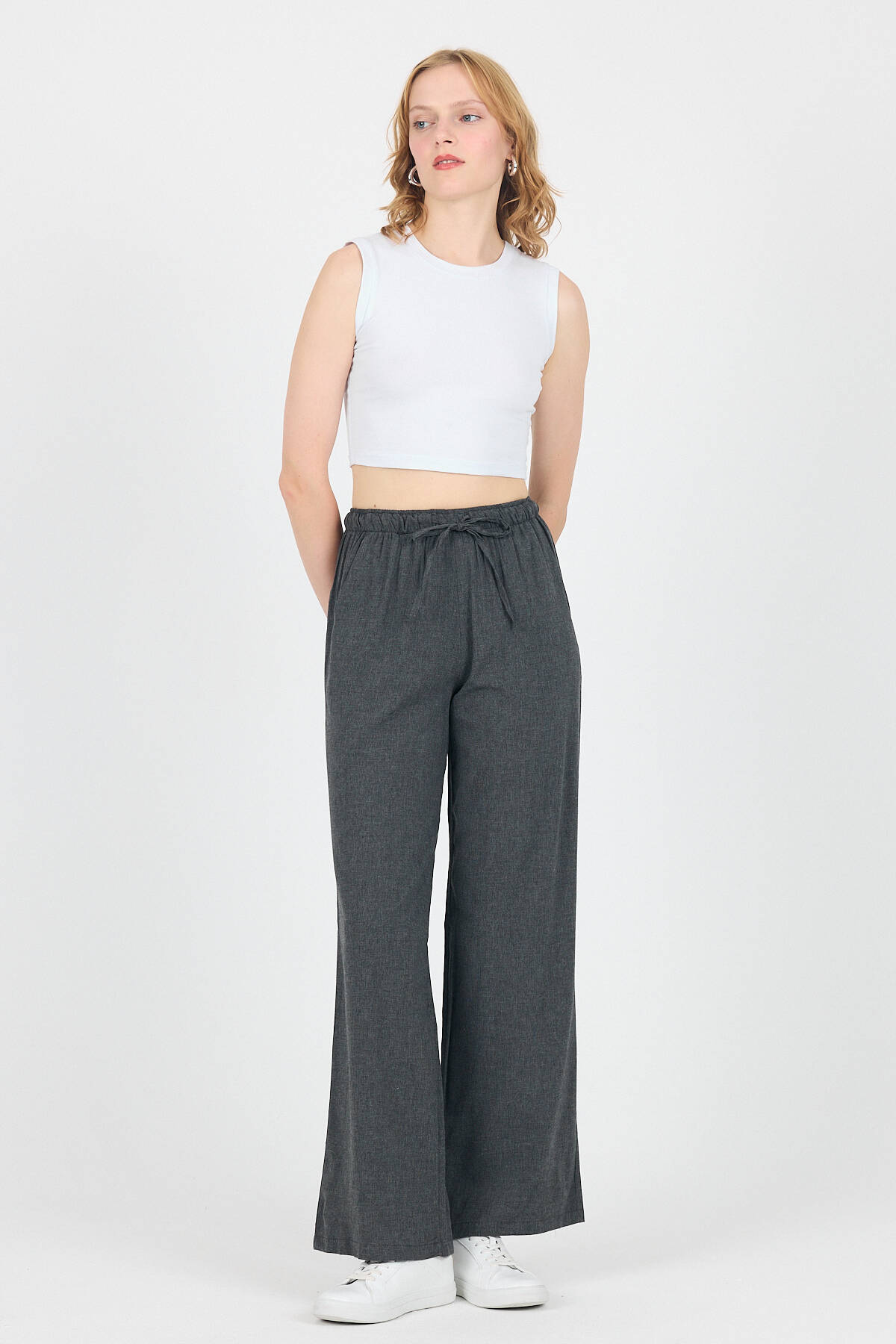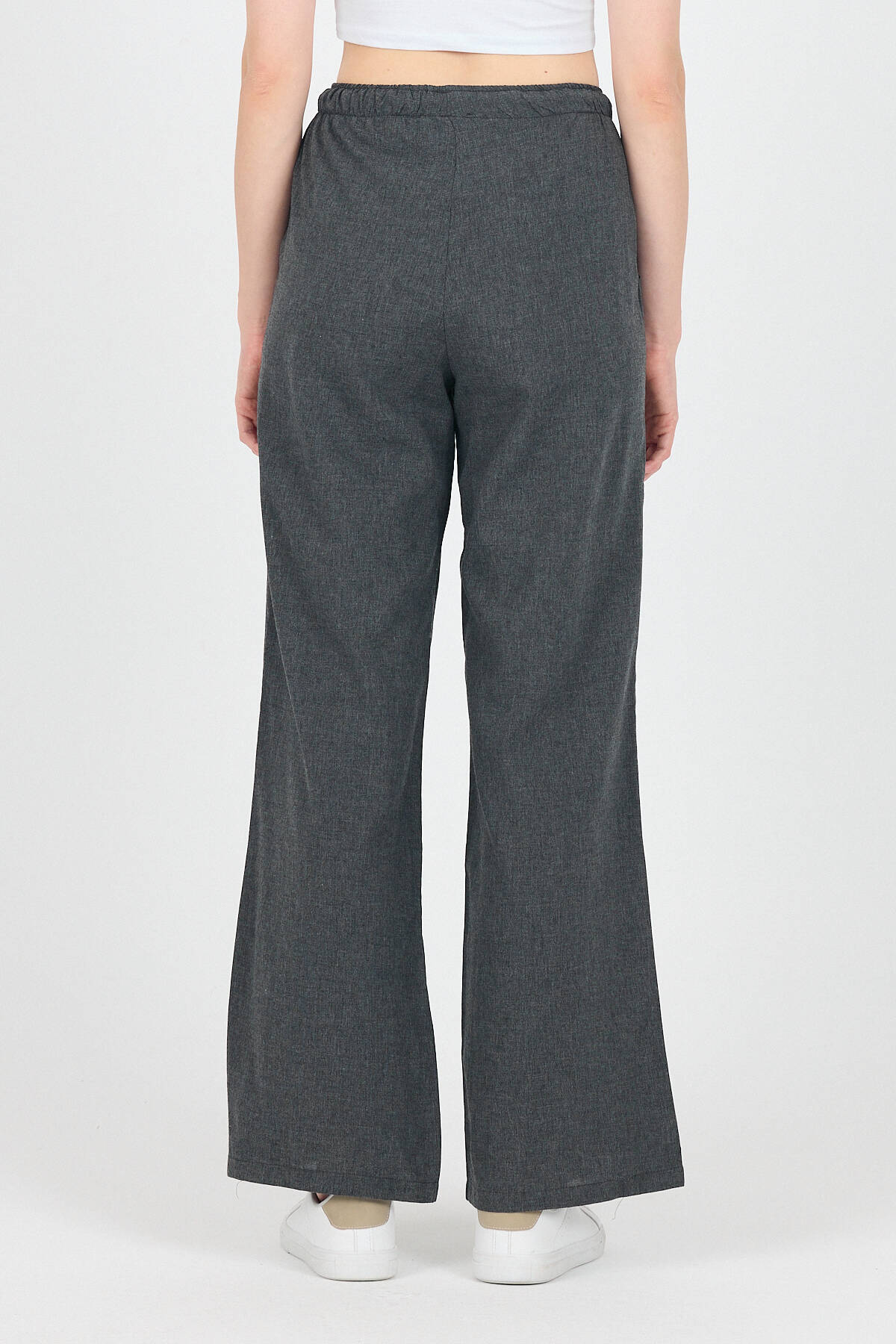 Antrasit Pamuklu Bel Lastikli Wide Leg/Bol Paça Pantolon 4754A