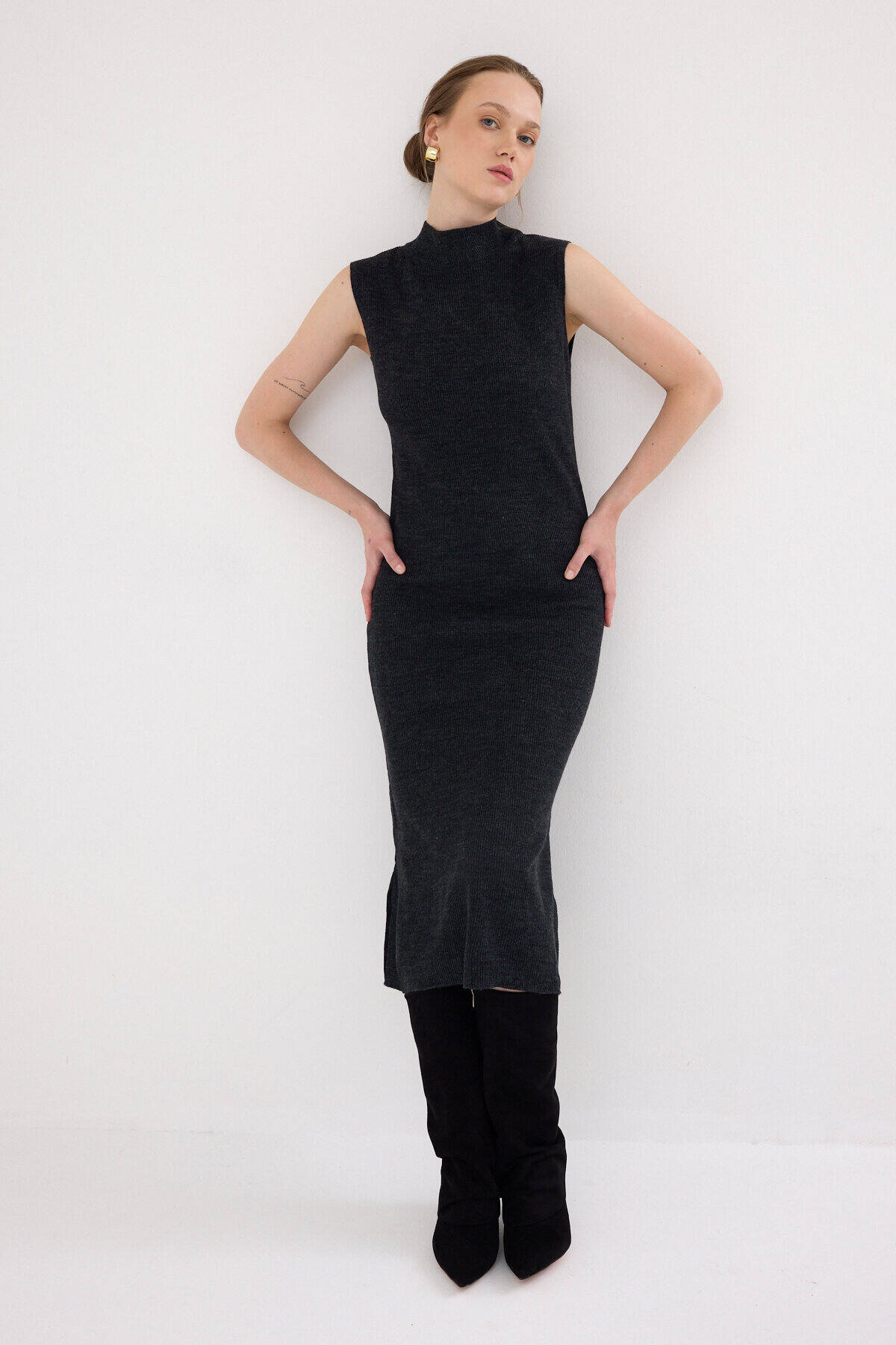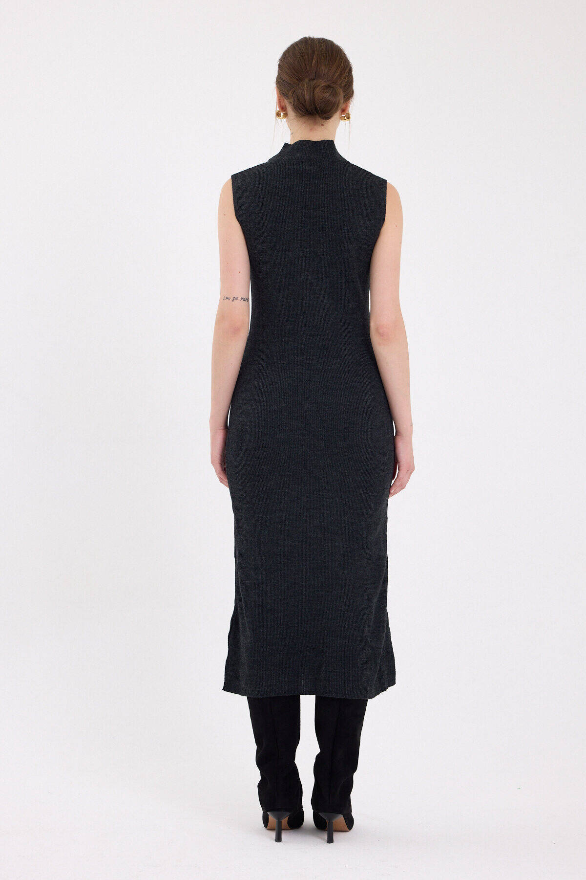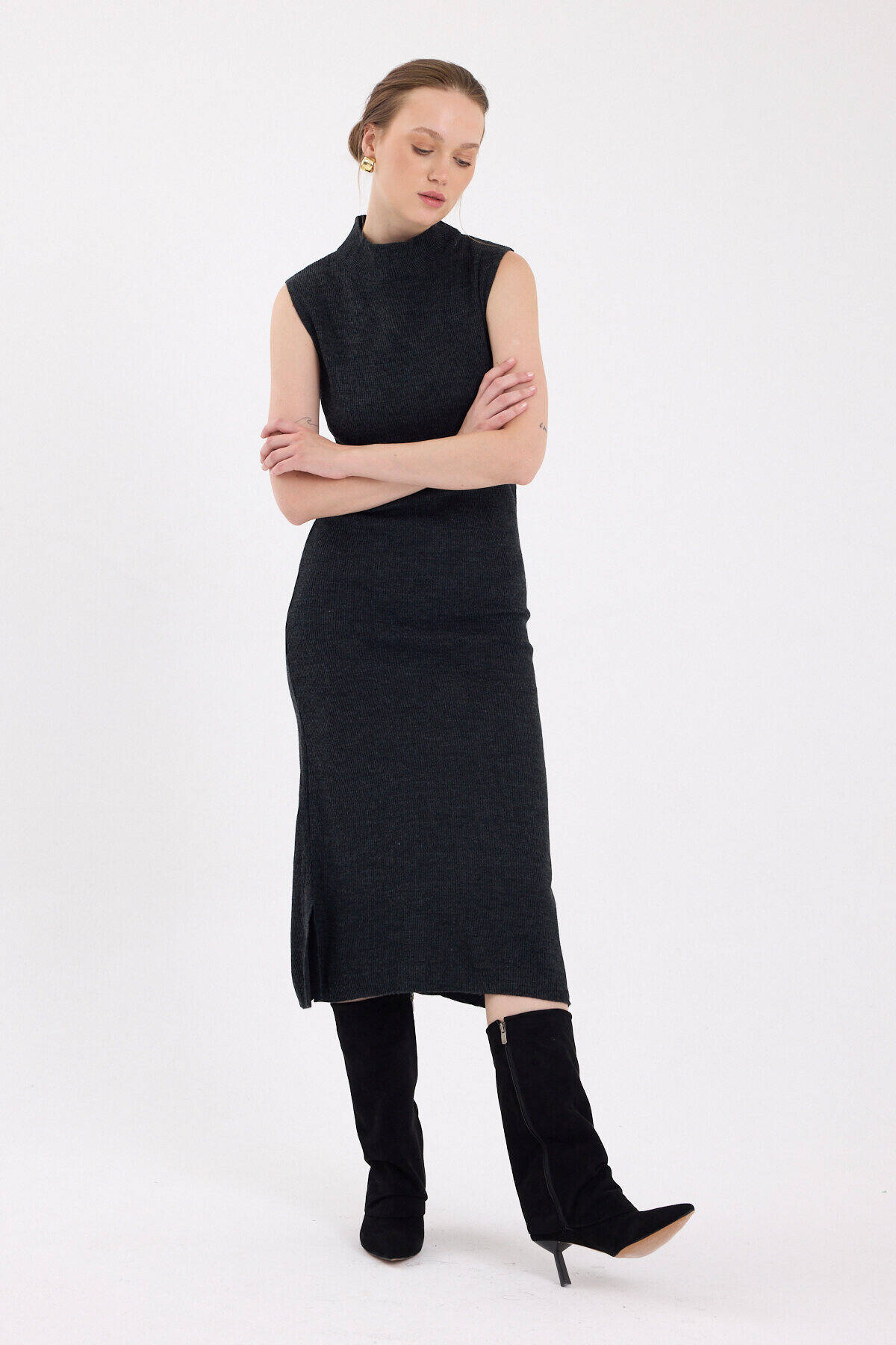 Antrasit Sıfır Kol Triko Midi Elbise 2232