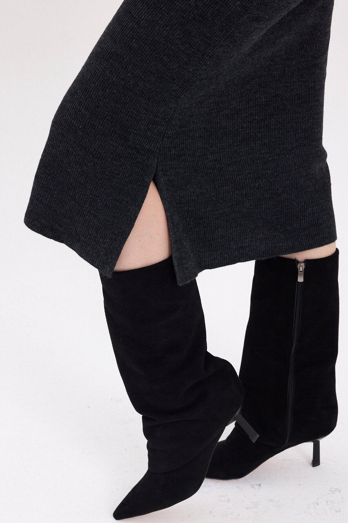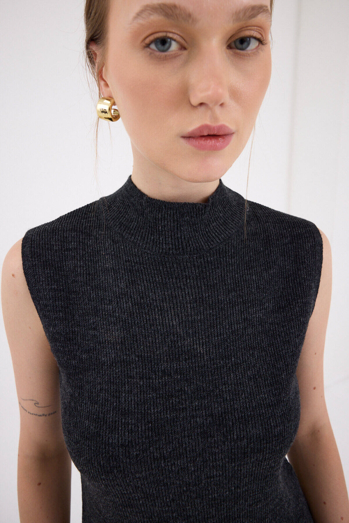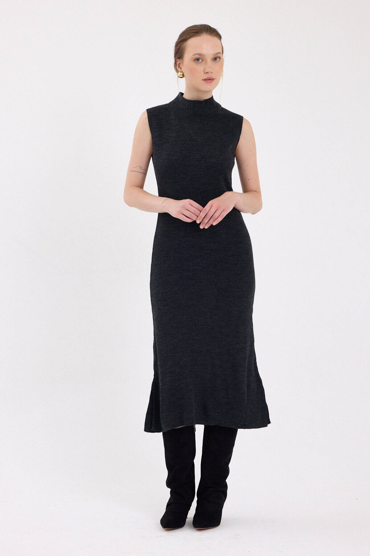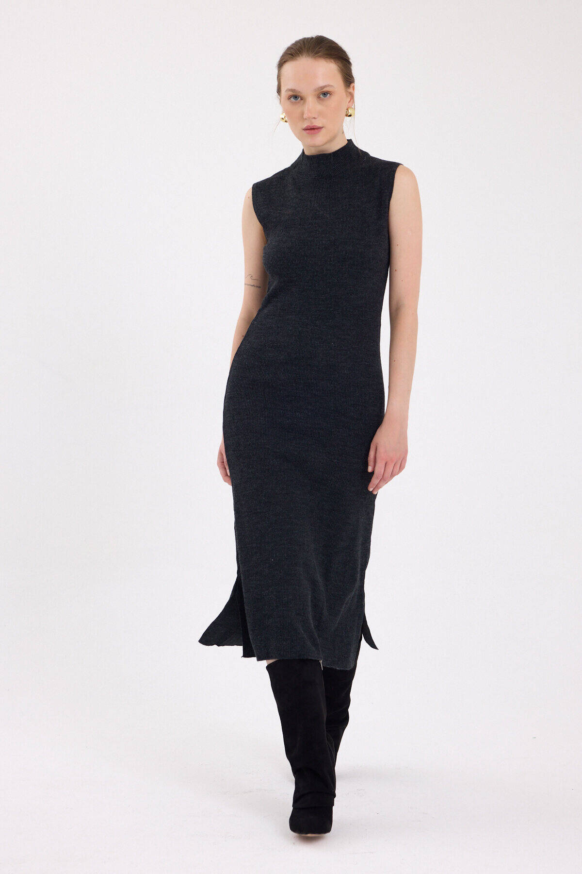 Antrasit Sıfır Kol Triko Midi Elbise 2232