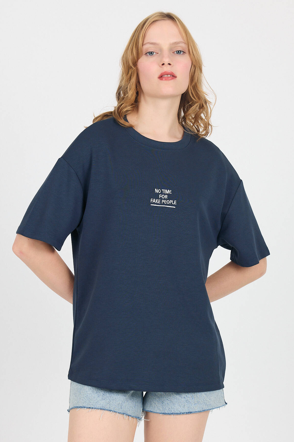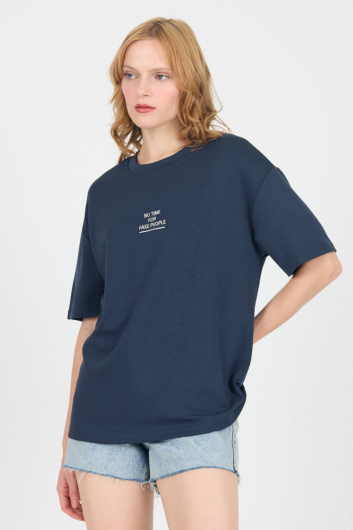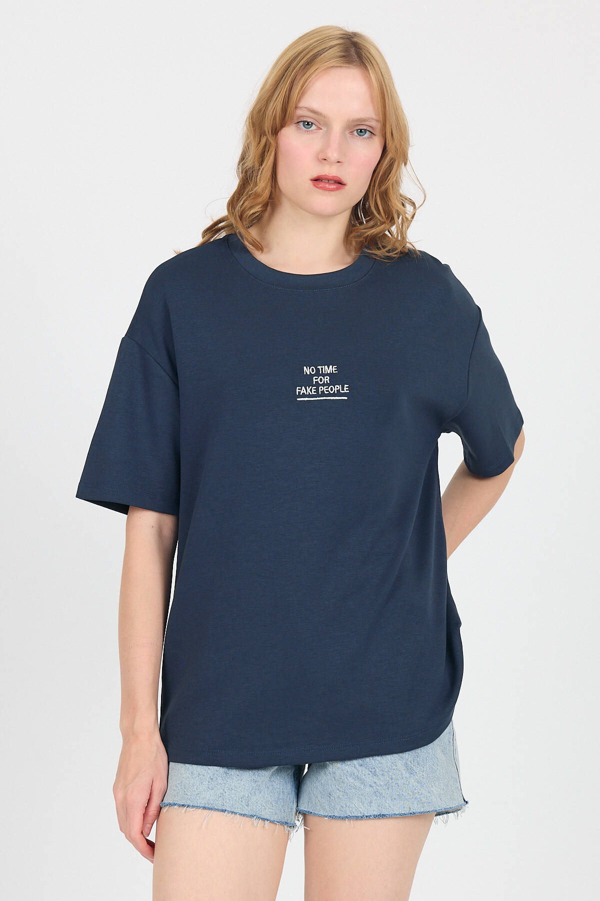 Antrasit Yumuşak Dokulu Yazı Baskılı Oversize Tişört 6265