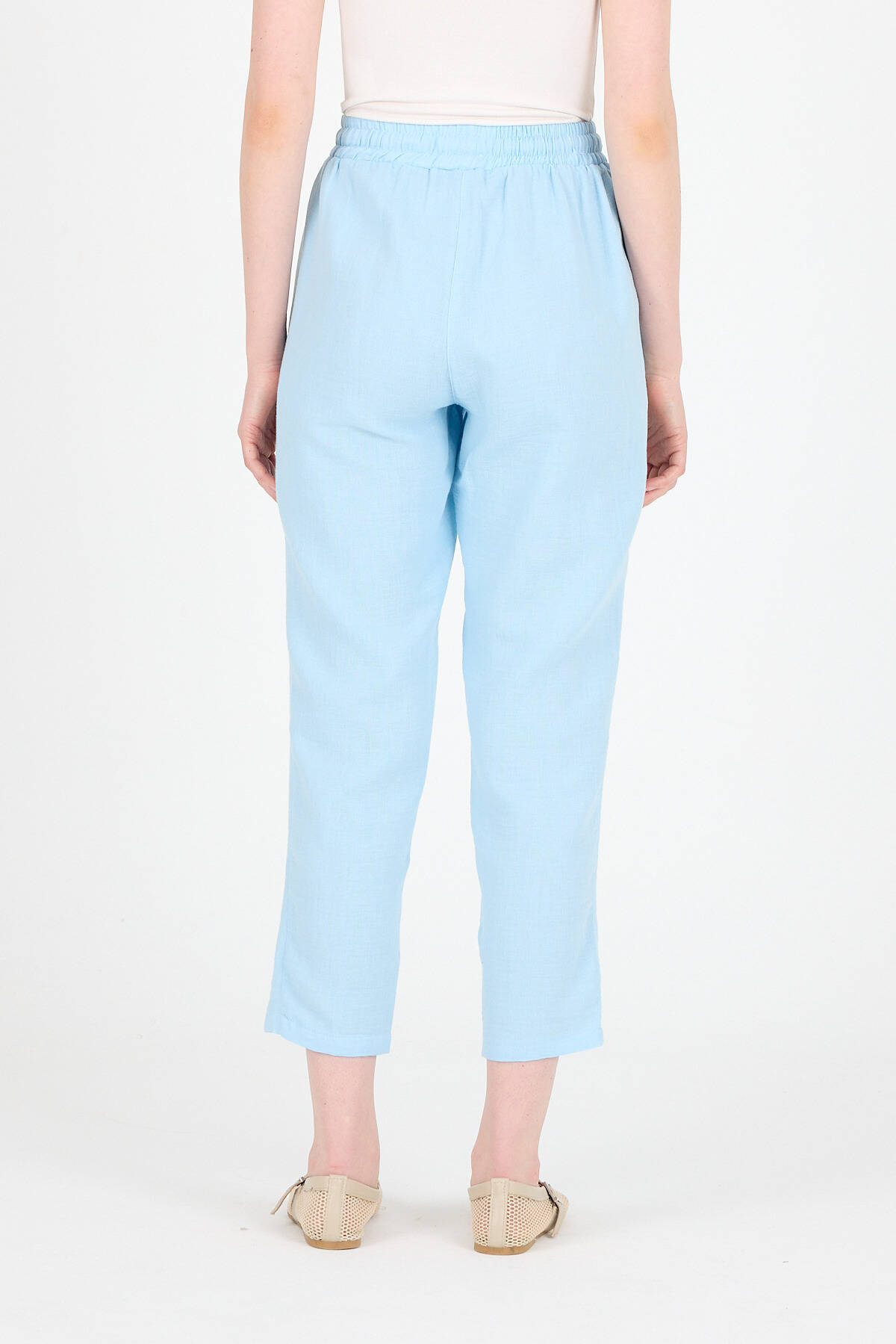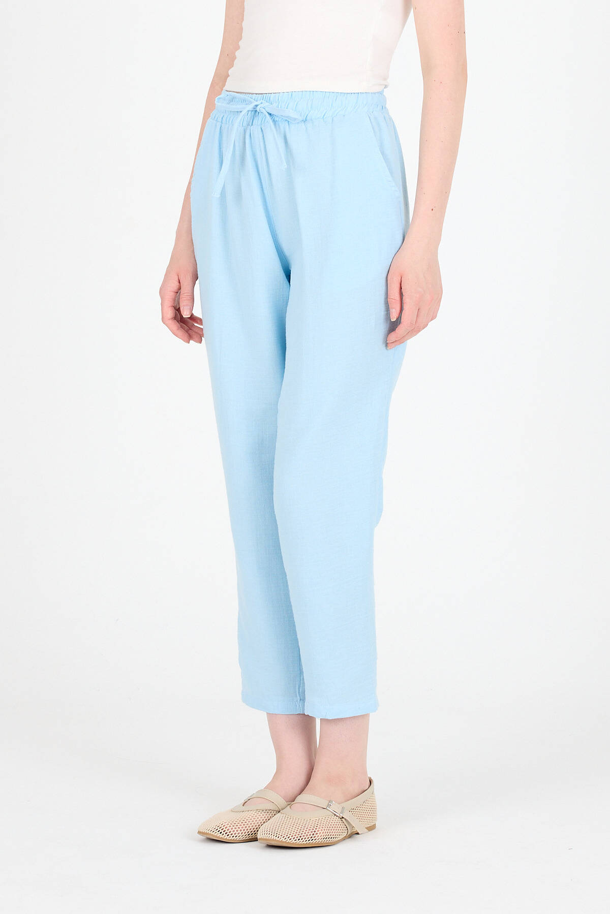 Bebe Mavi Müslin %100 Pamuk Beli Lastikli Pantolon 8055A