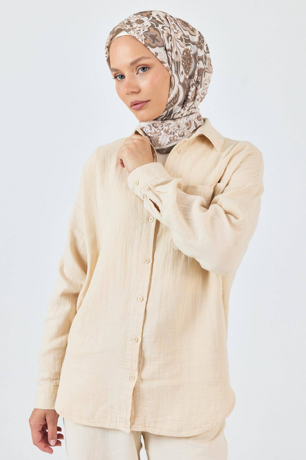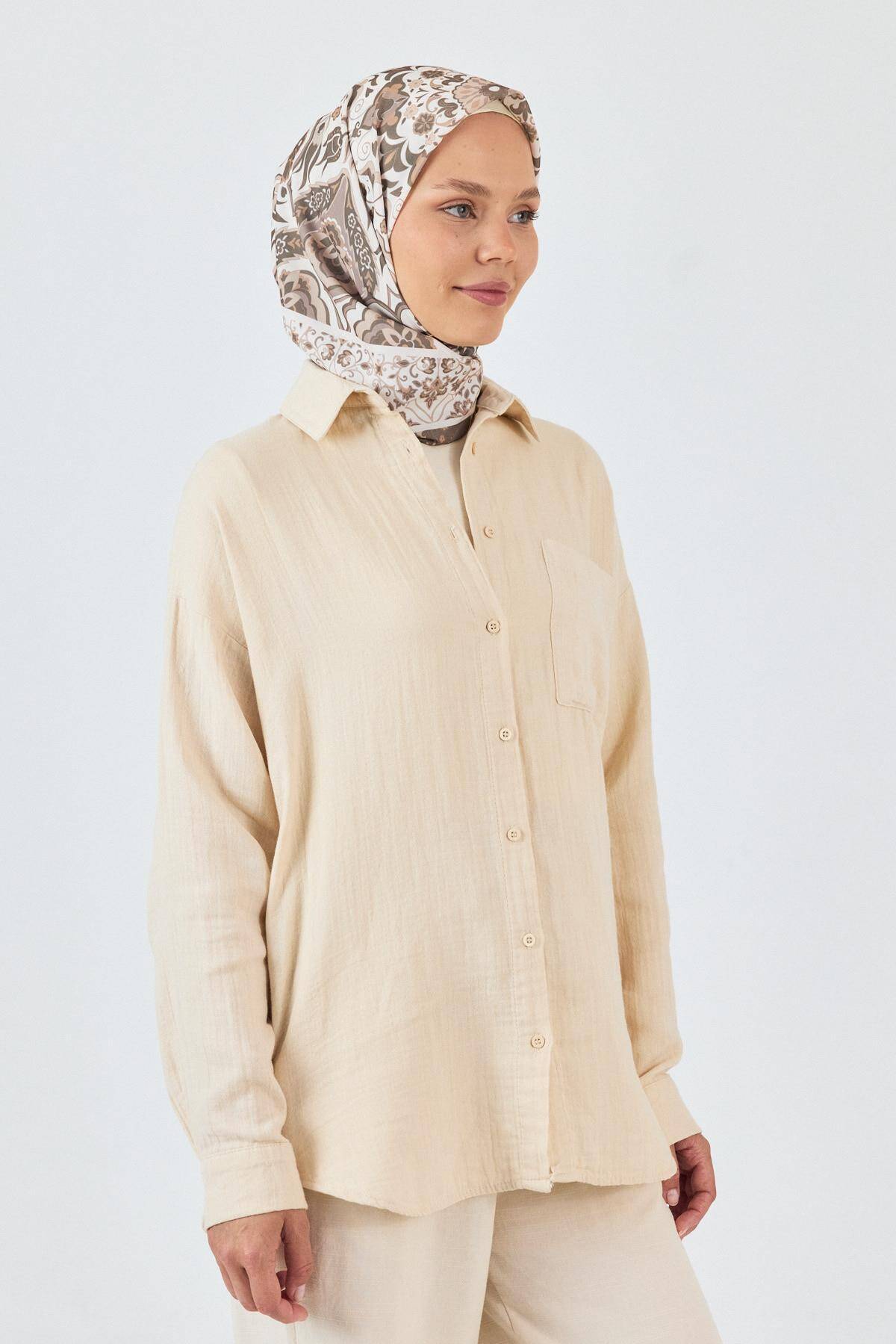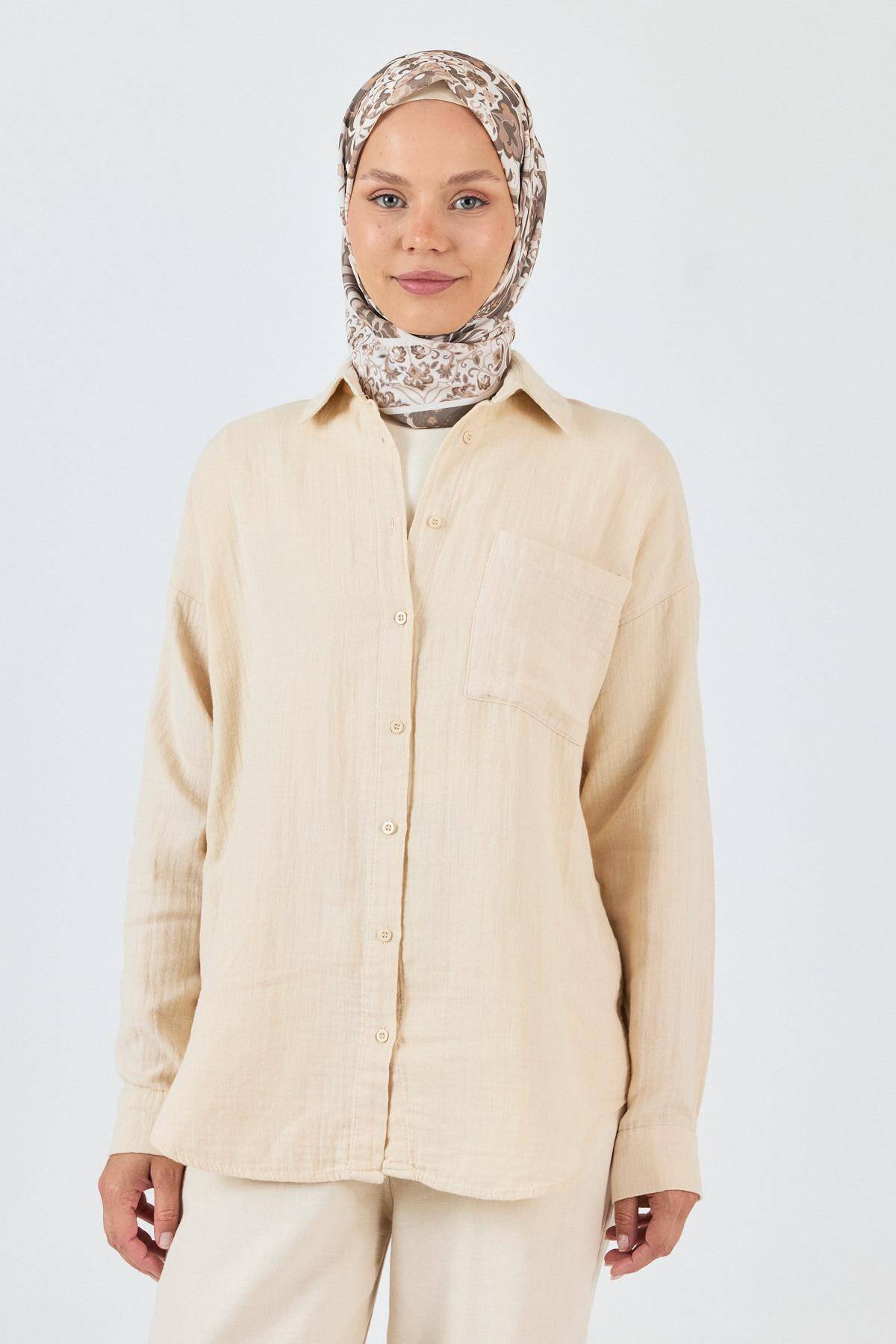 Bej Kapüşonlu Cepli Fermuarlı Kap 4572A