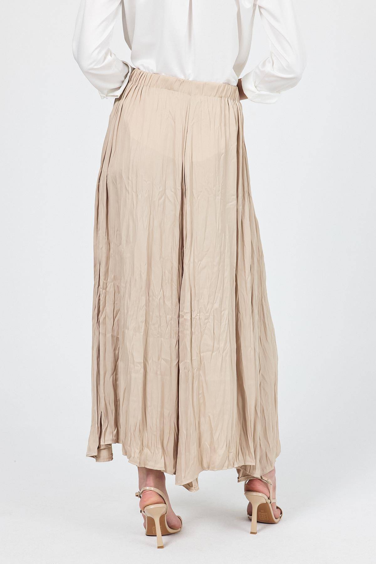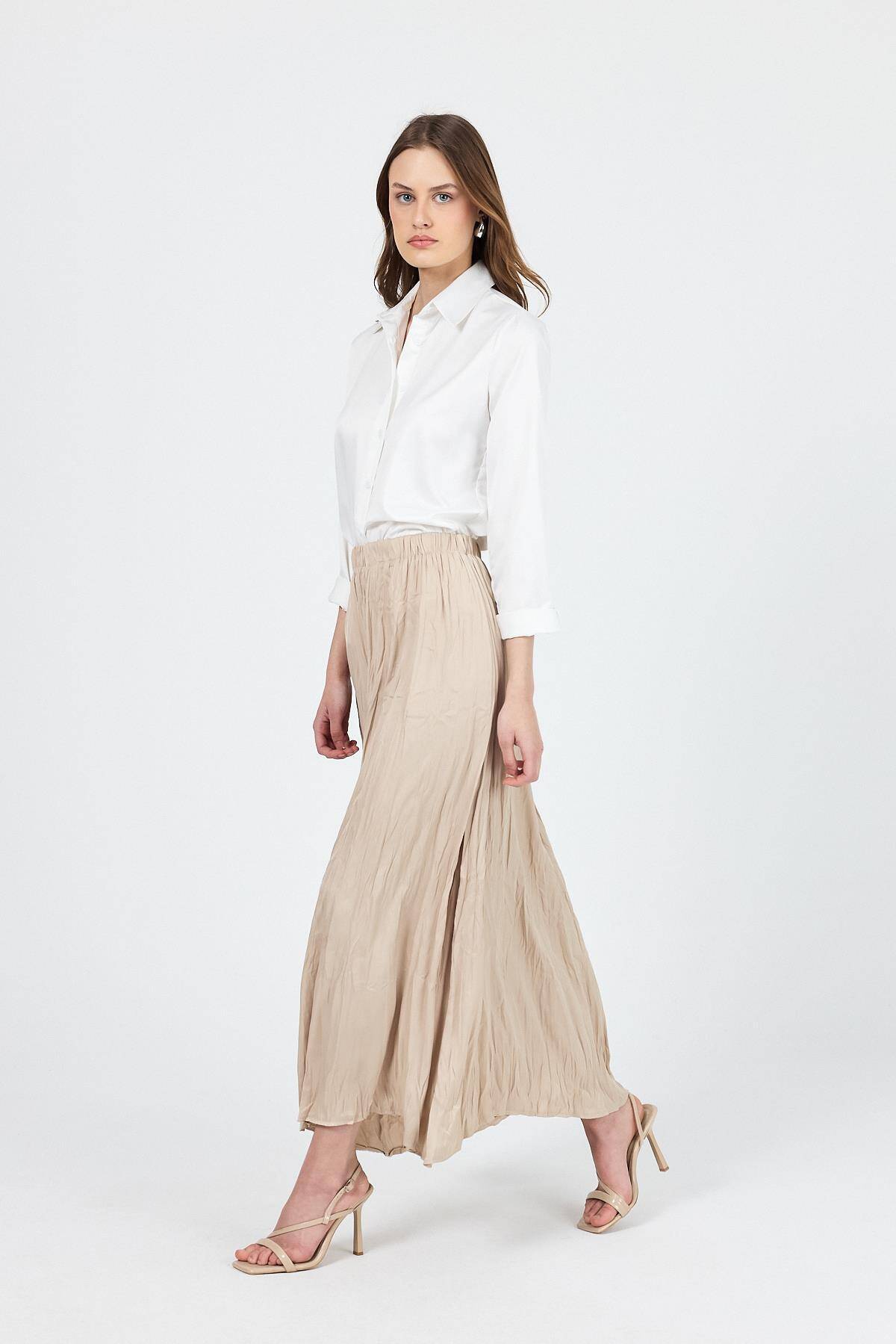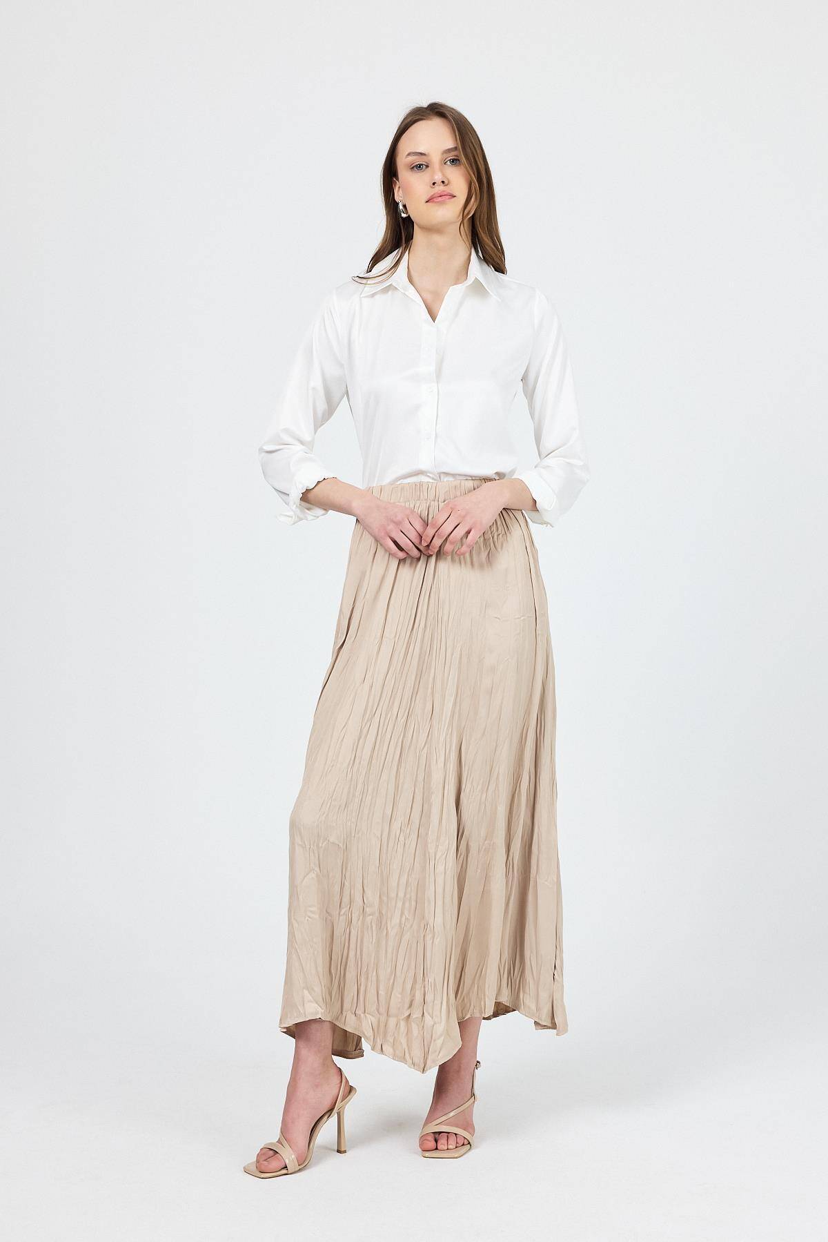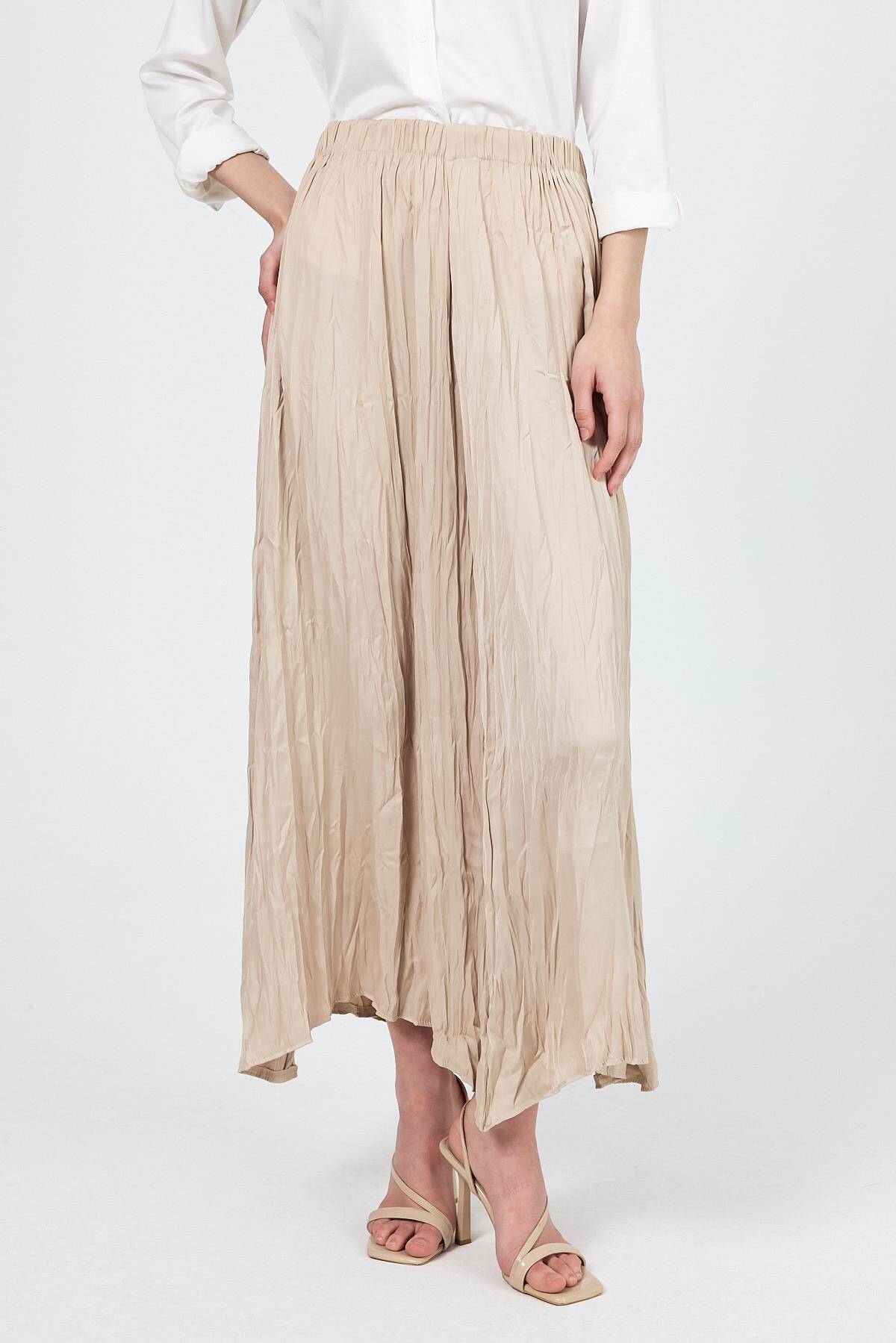Bej Kraşlı Kırışık Kumaş Etek 9470