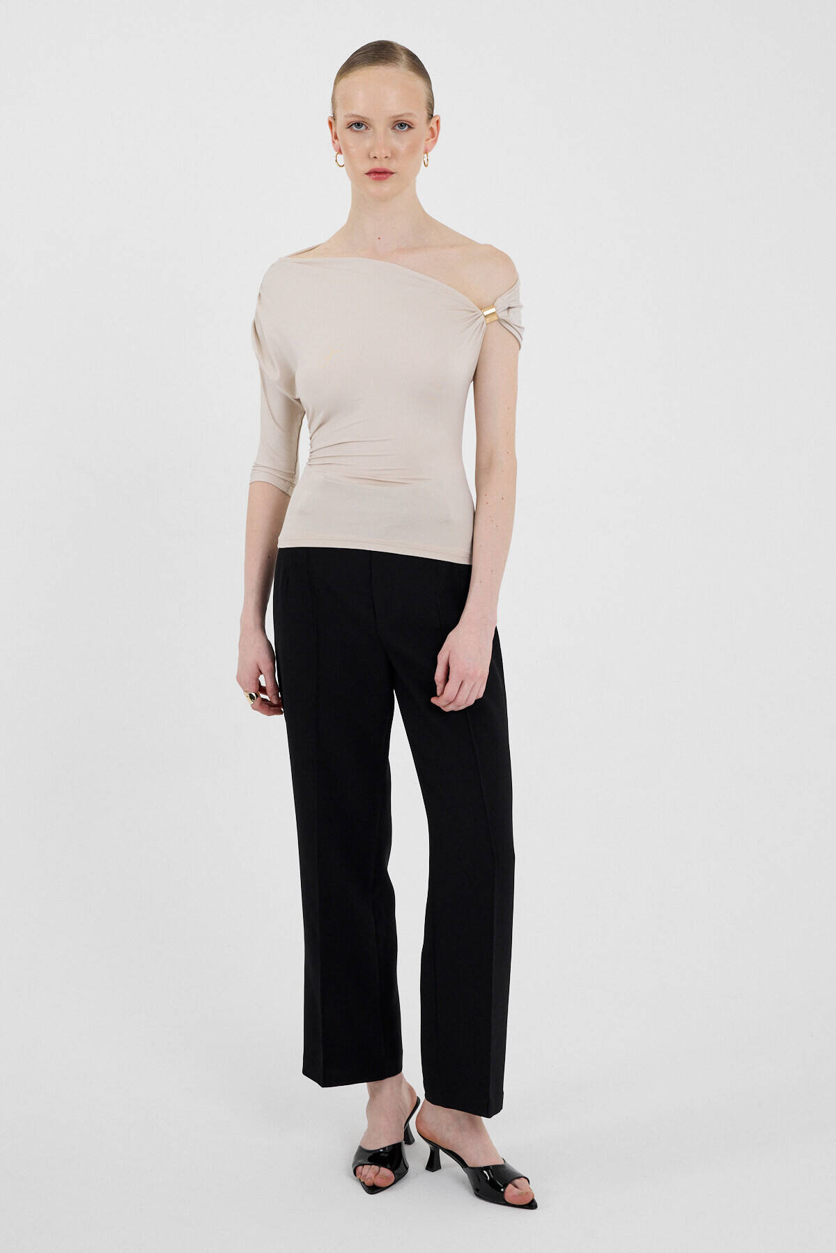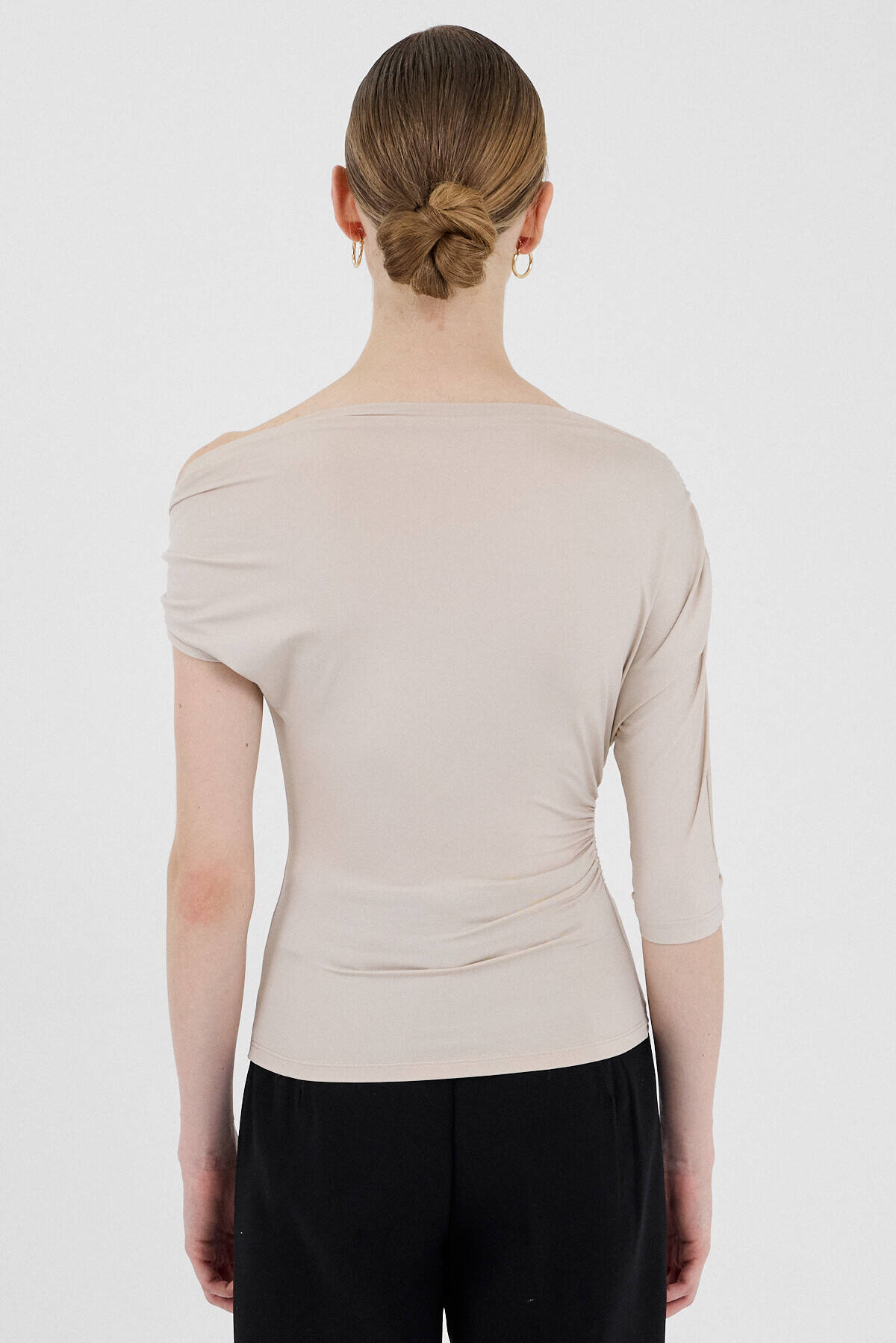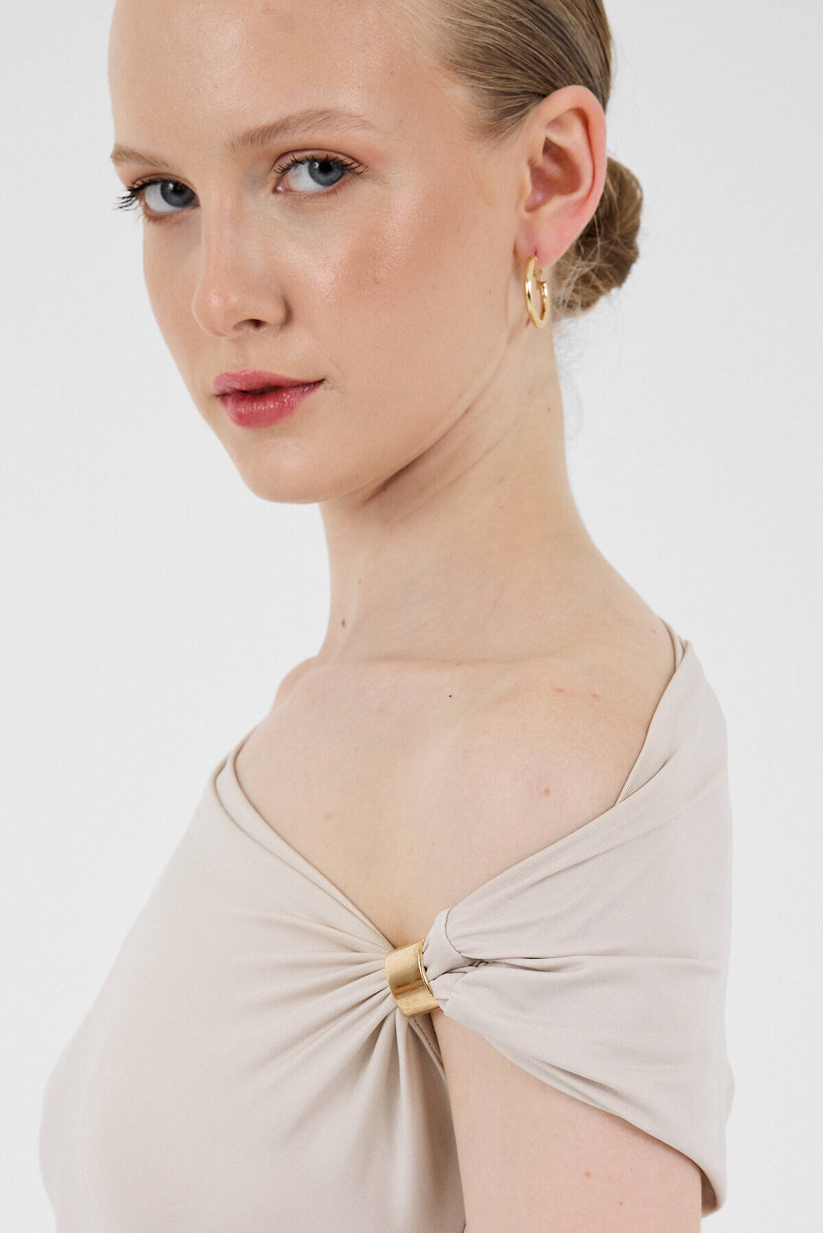 Bej Omuz Aksesuar Detaylı Yarım Kol Bluz 2490