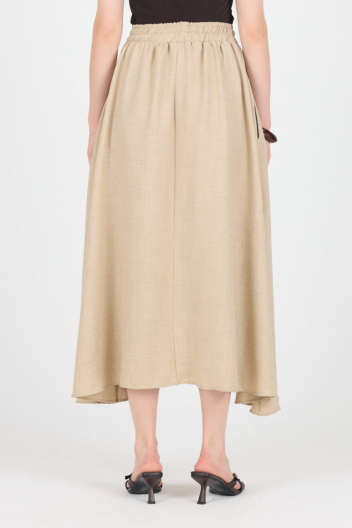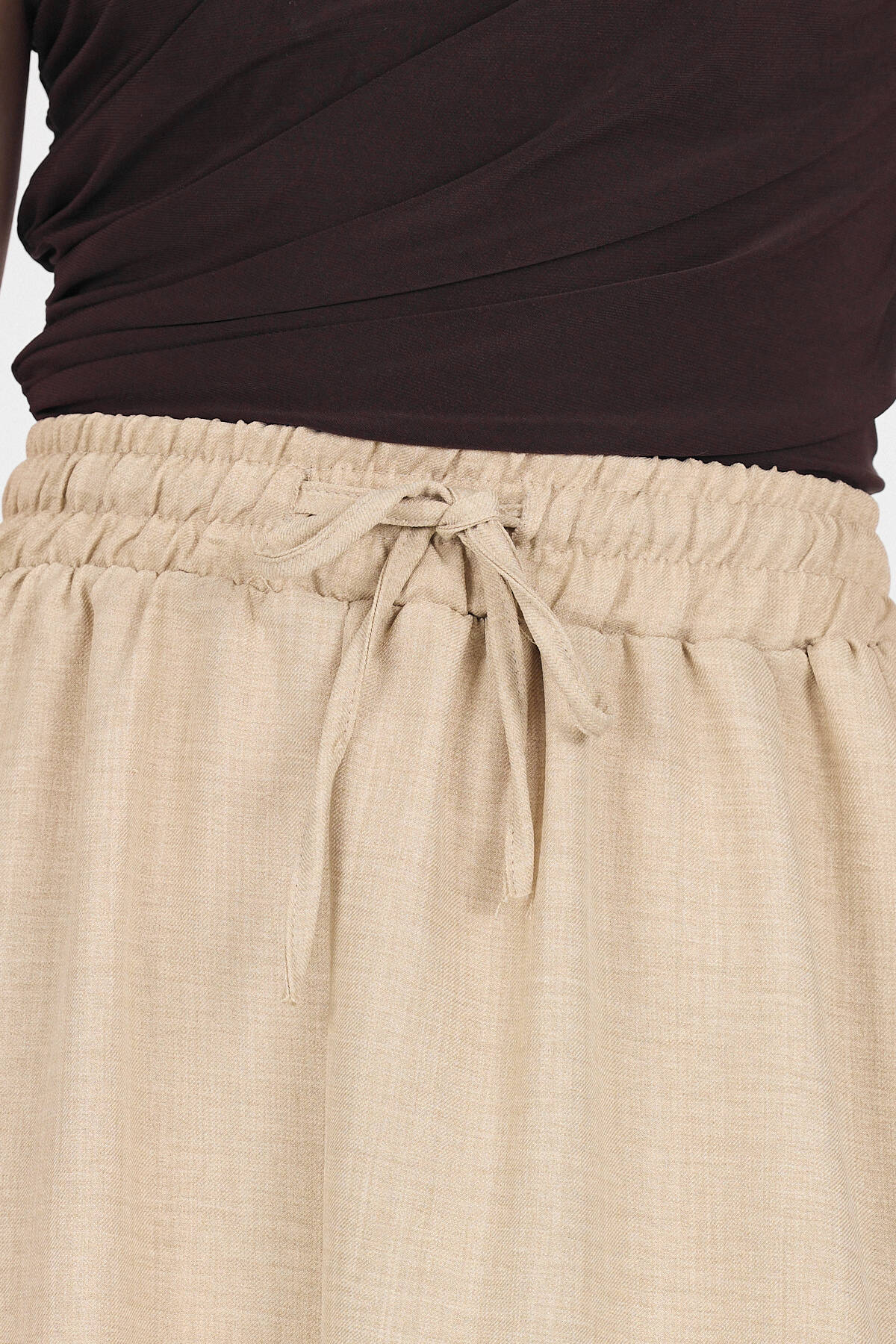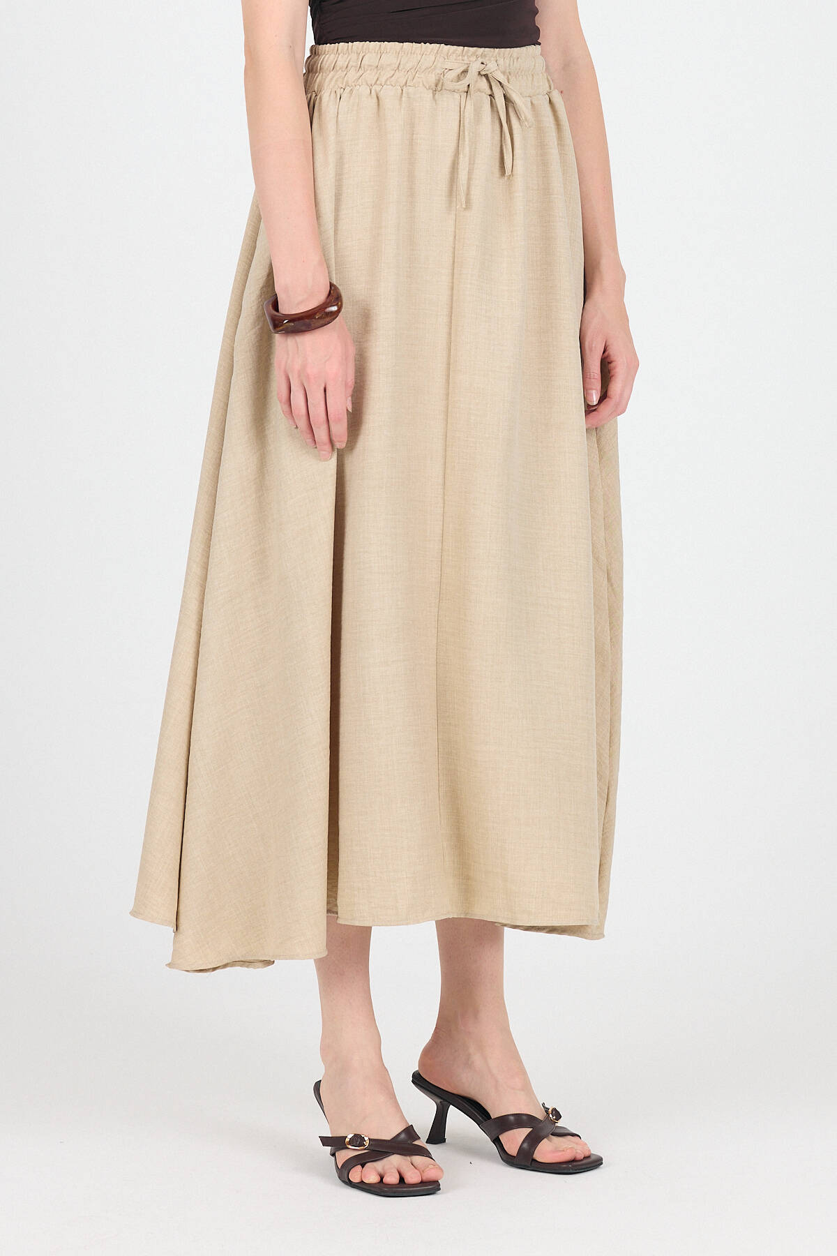 Bej Pamuklu Çan Kesim Bağcıklı Uzun Etek 8024