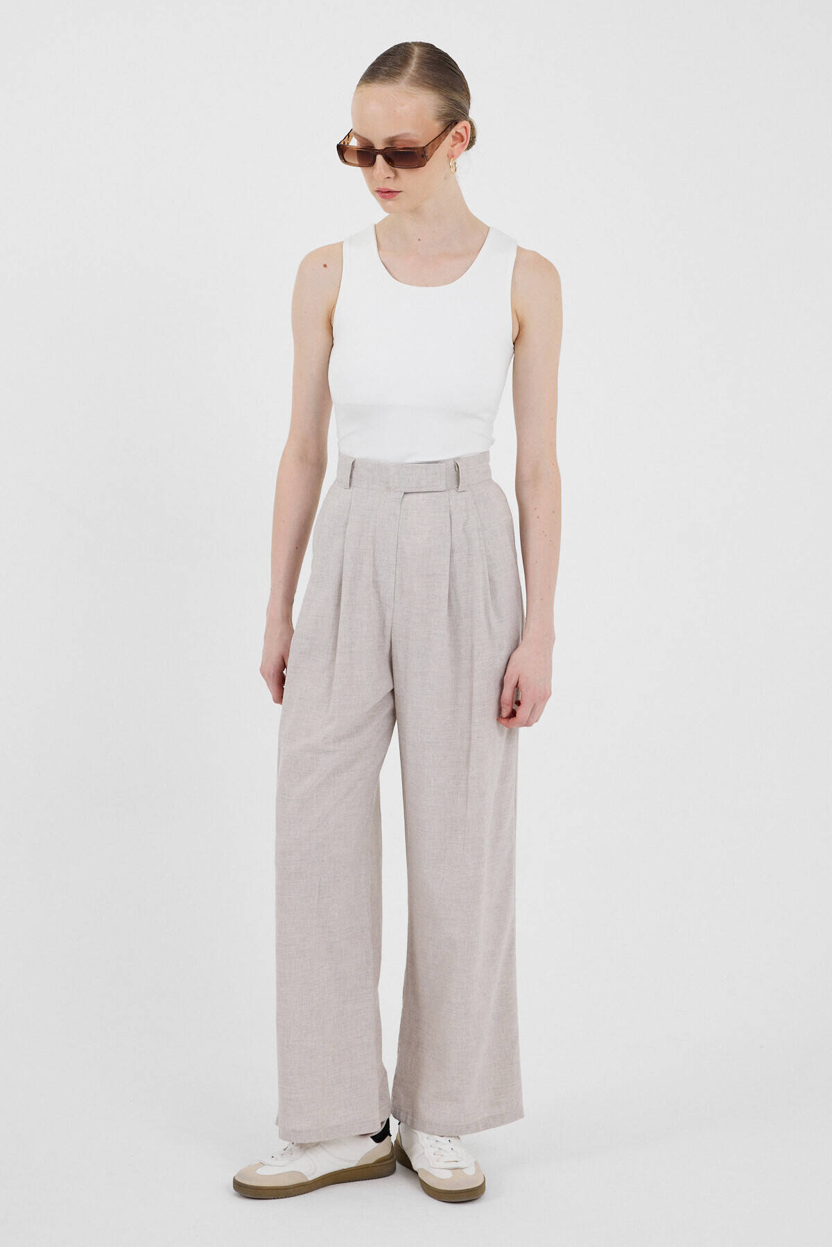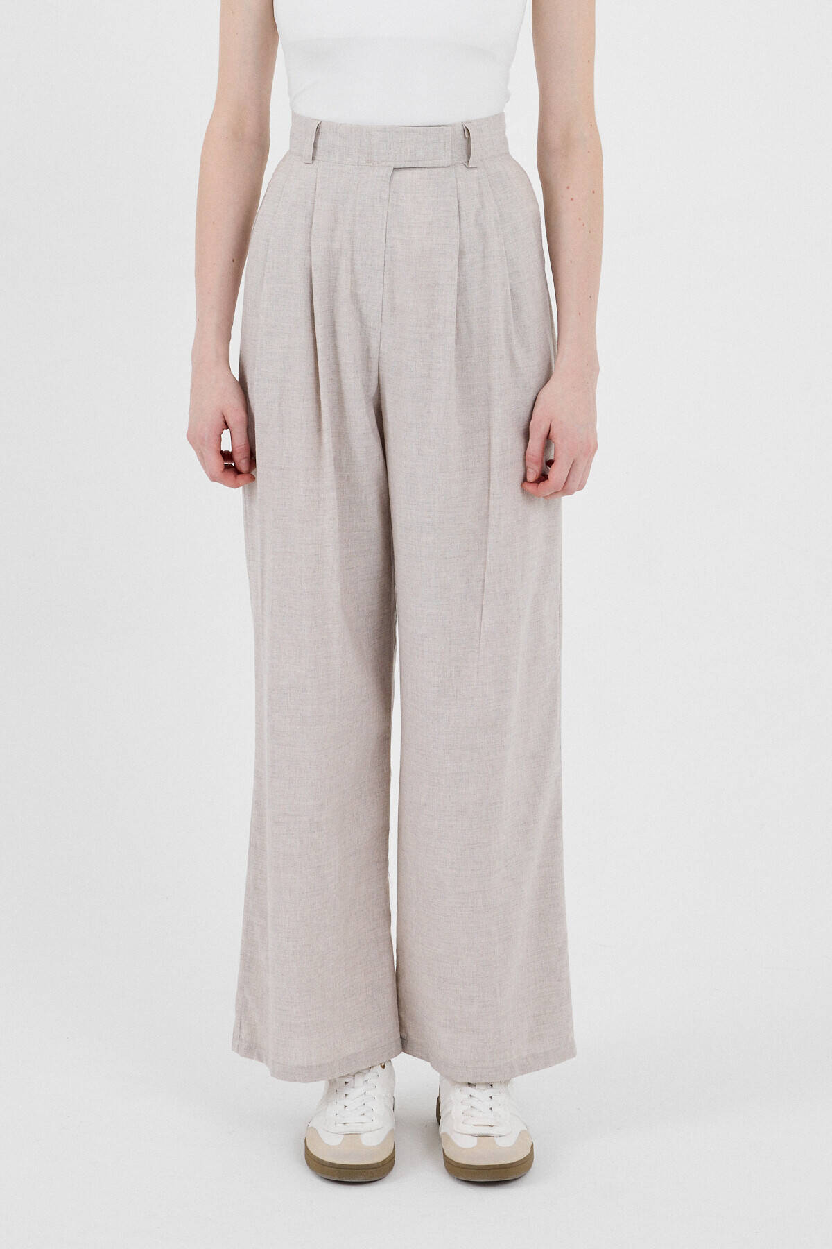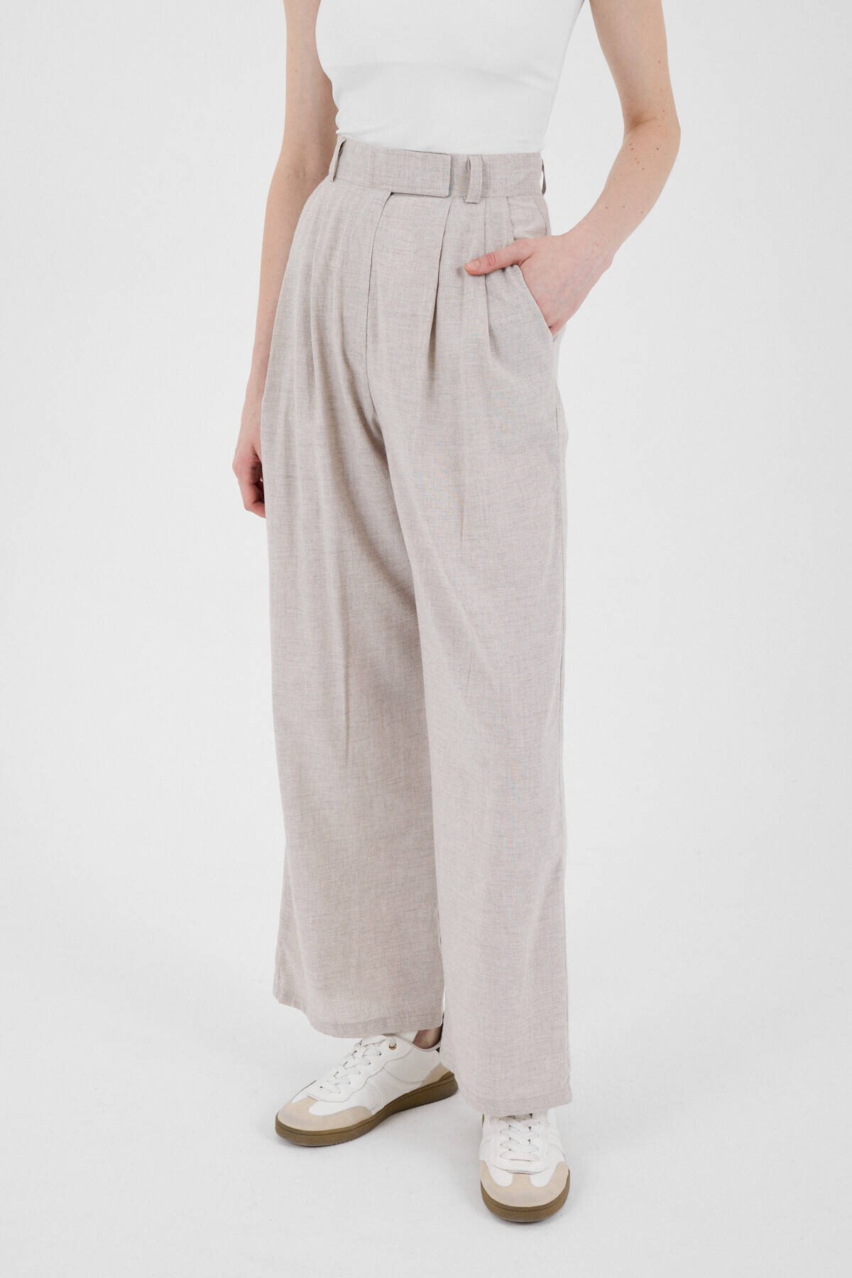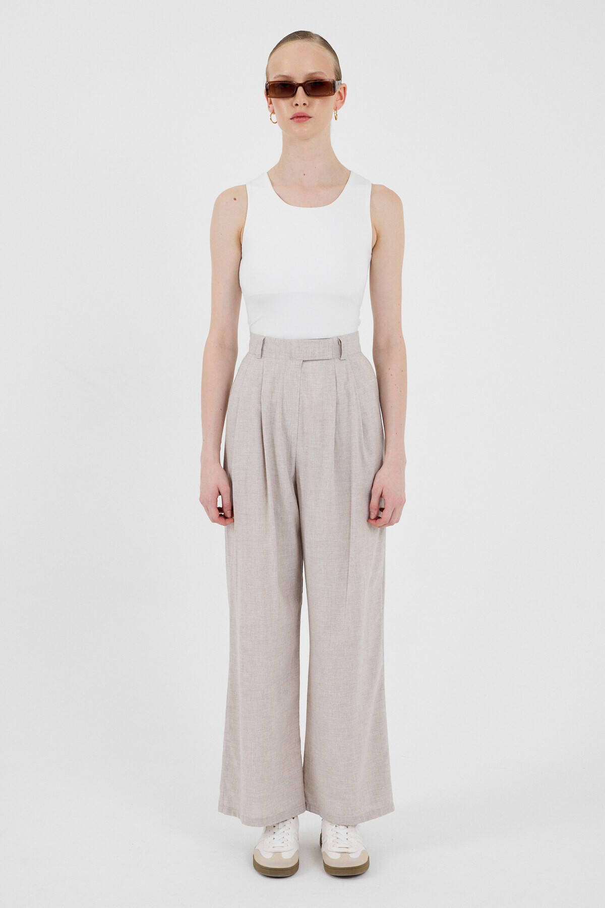Bej Yüksek Bel Cırt Kapama Detaylı Pamuklu Palazzo Pantolon 8062A