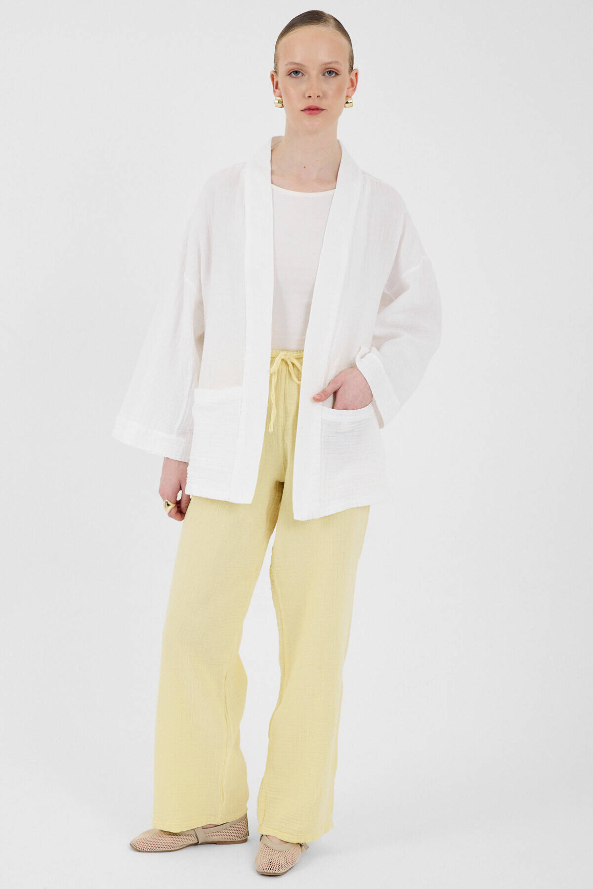 Beyaz %100 Pamuk Cepli Müslin Kimono 8065A