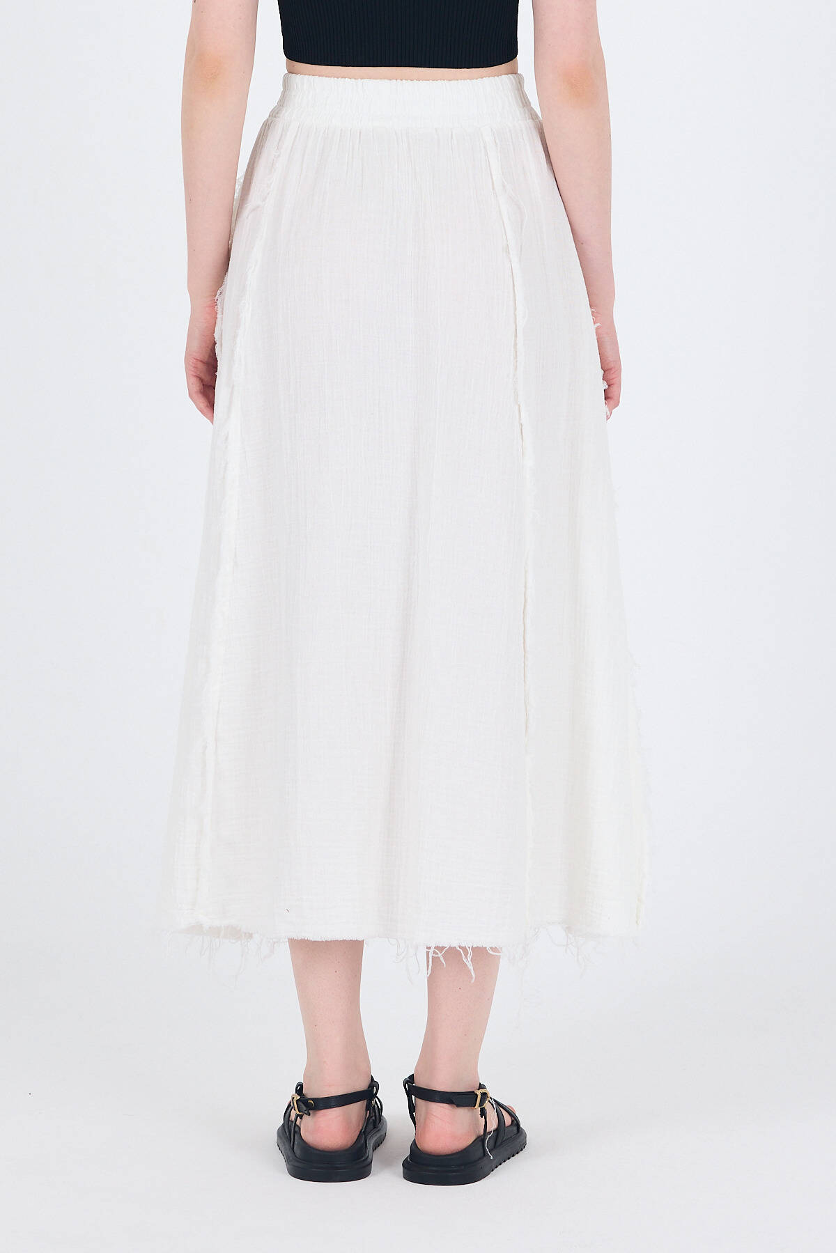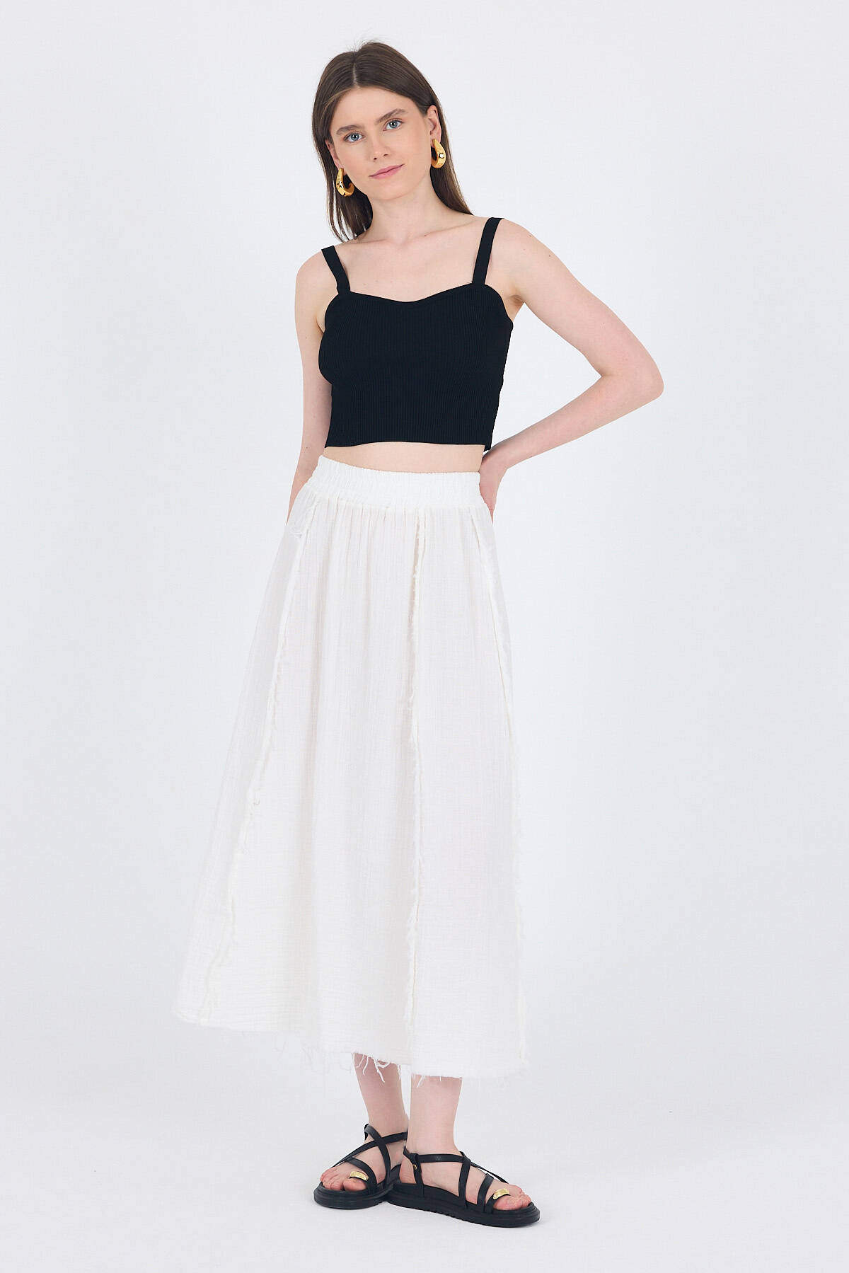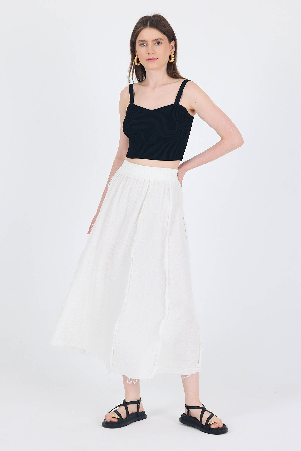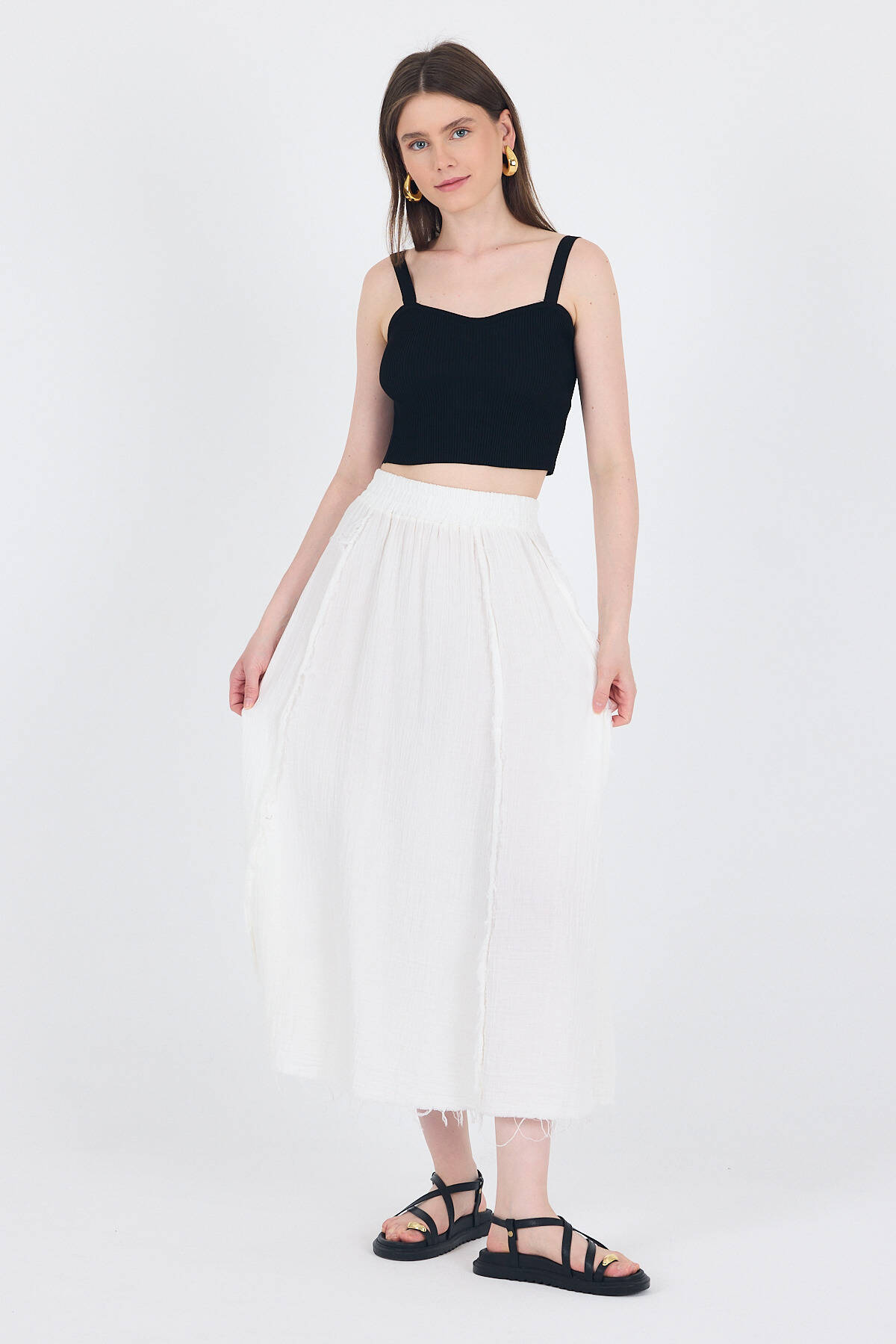 Beyaz %100 Pamuk Müslin Midi Etek 7038