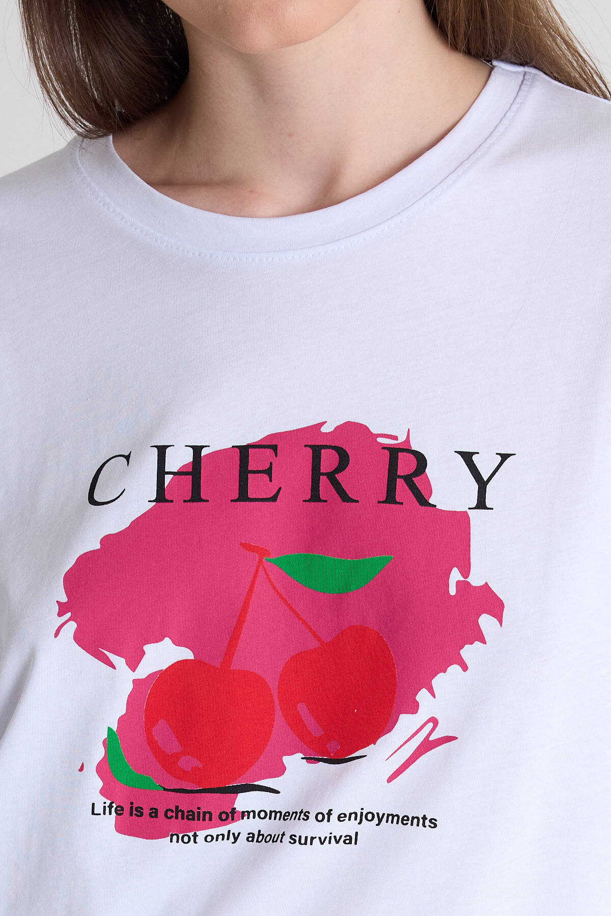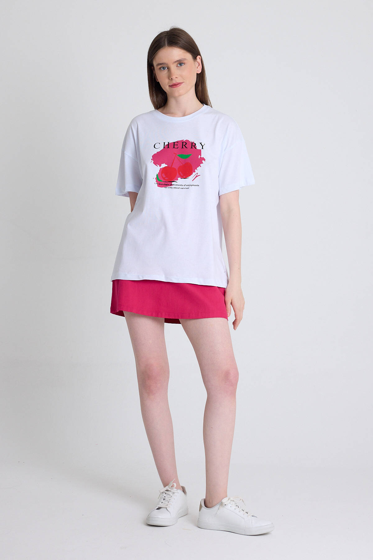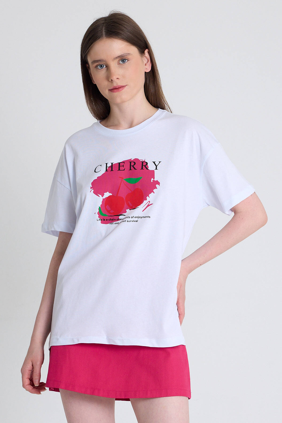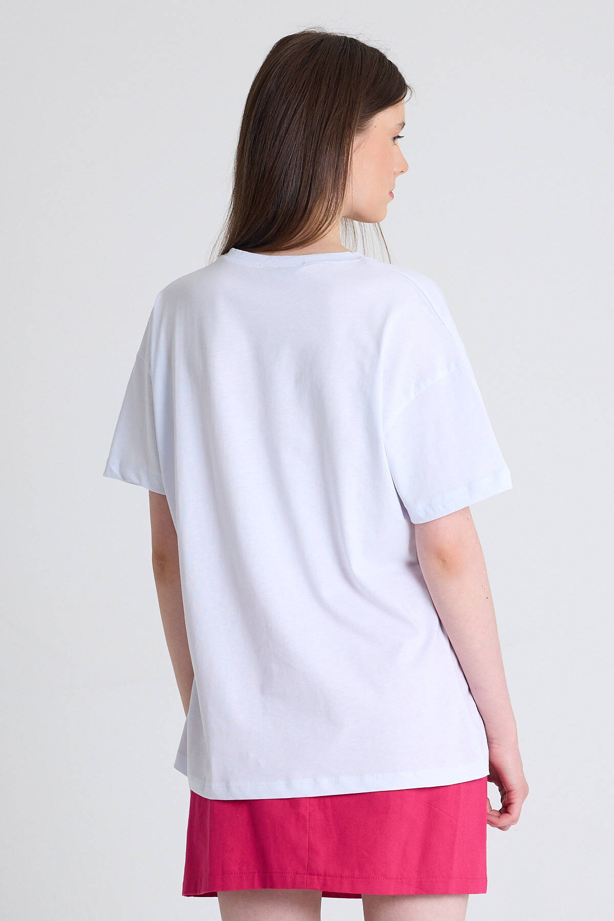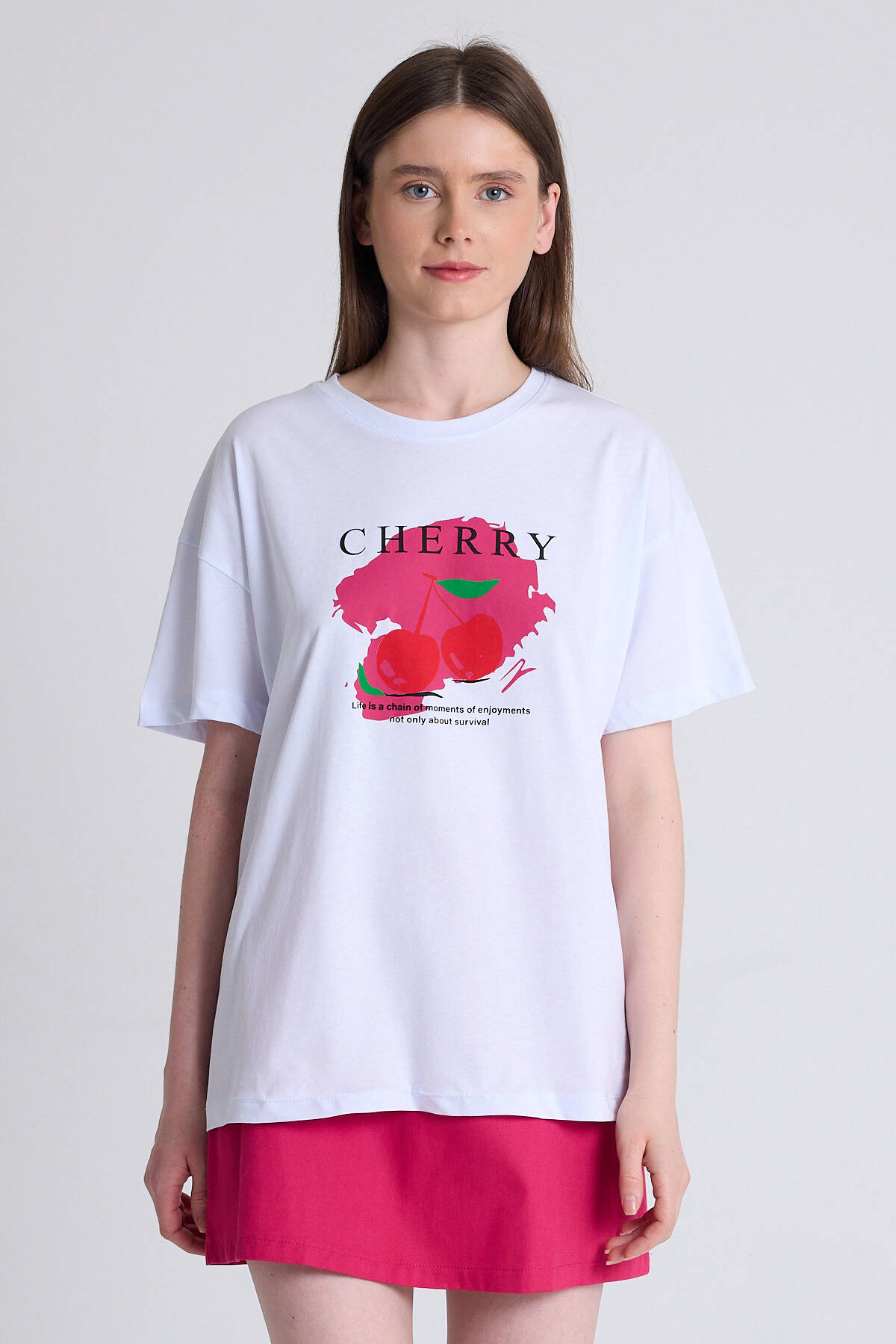 Beyaz %100 Pamuk Yazı Baskılı Tişört 2150-15M
