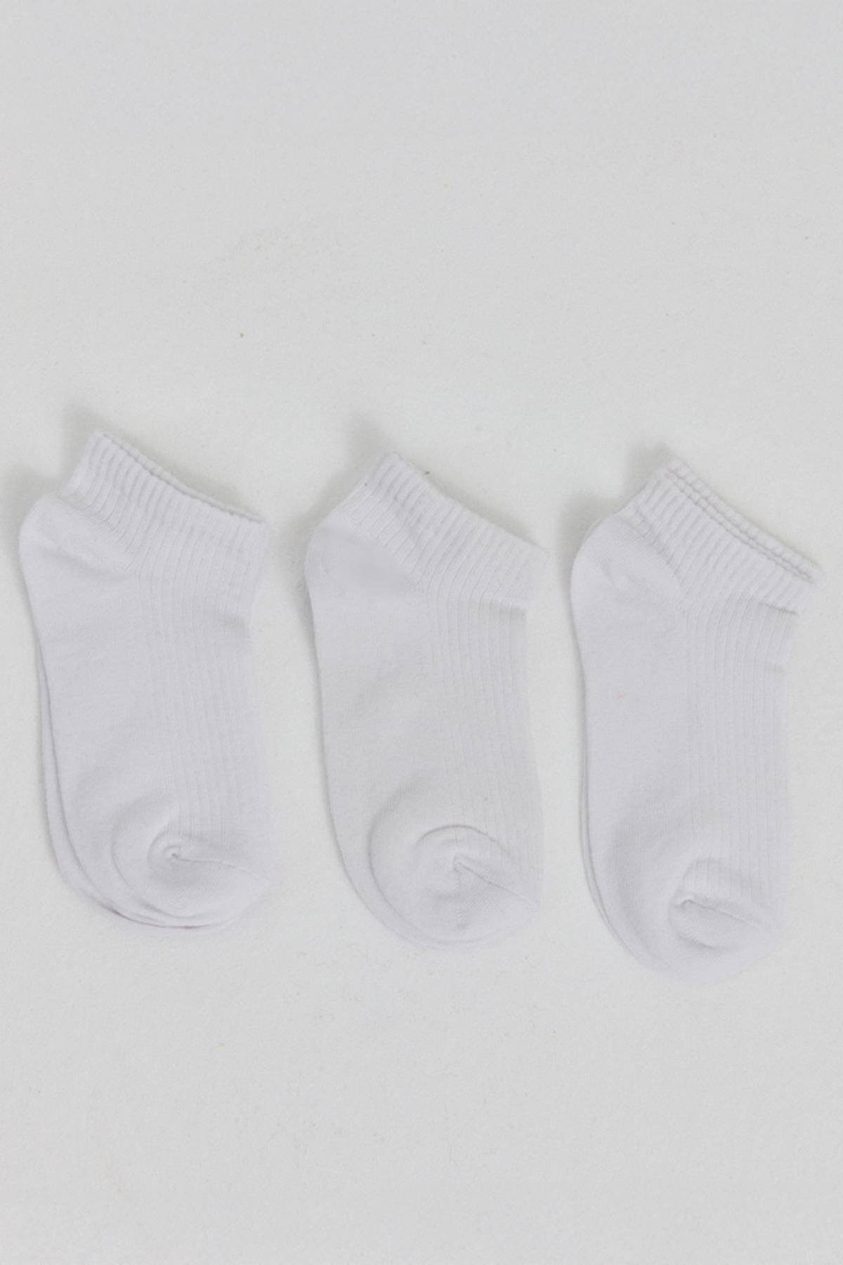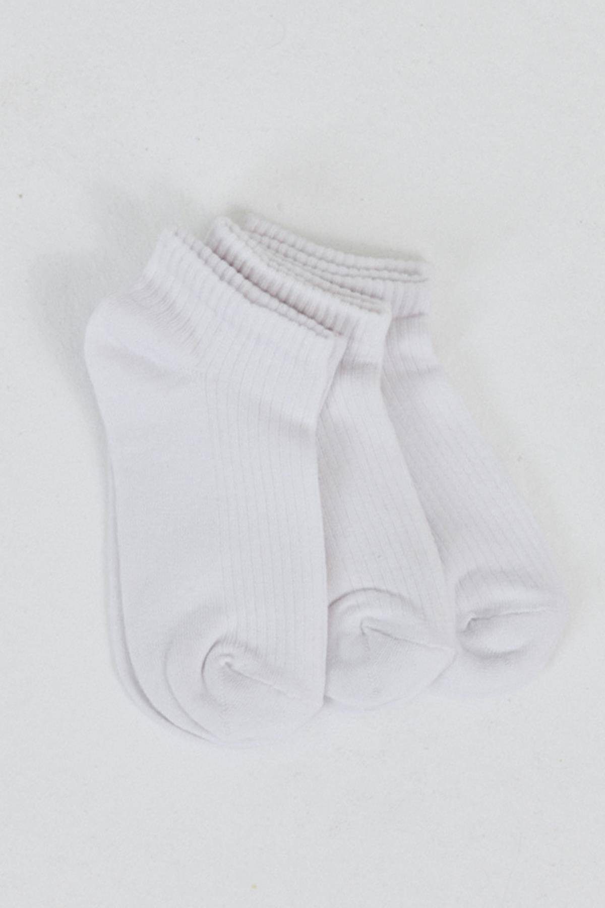 Beyaz 3'lü Örme Patik Çorap 1106