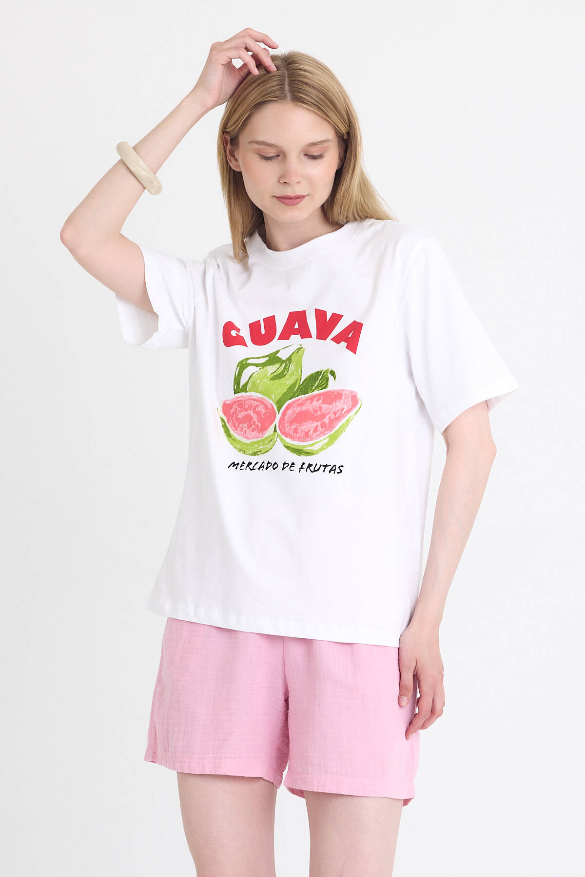 Beyaz Deri Kemer Detaylı Etnik Desenli Kimono 4363A