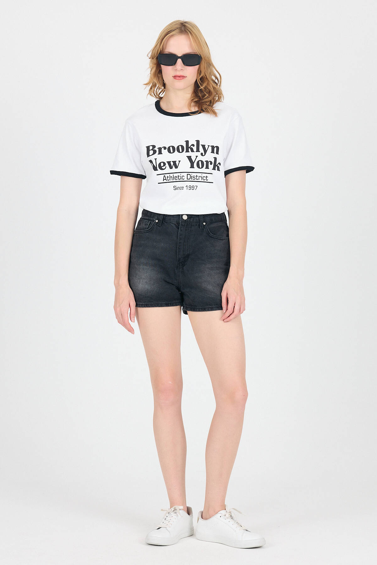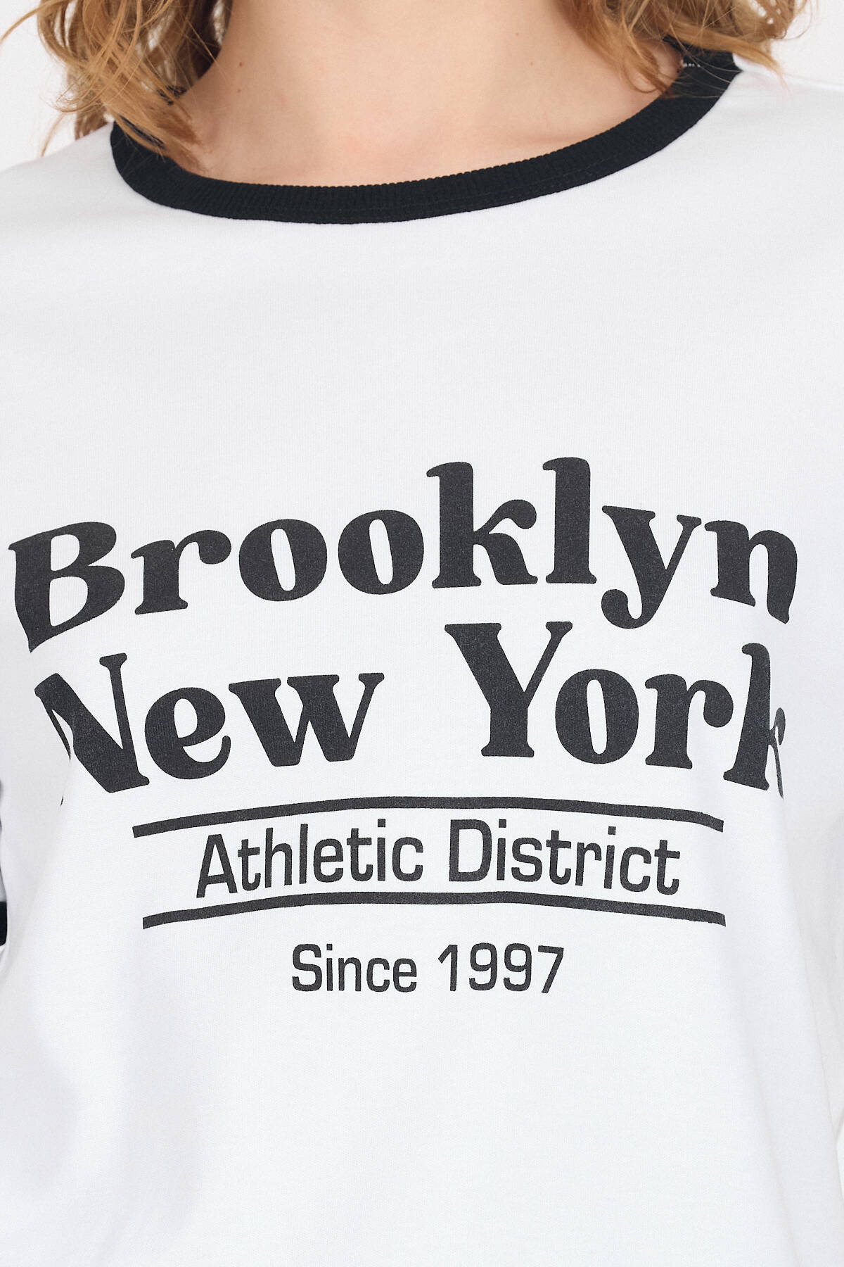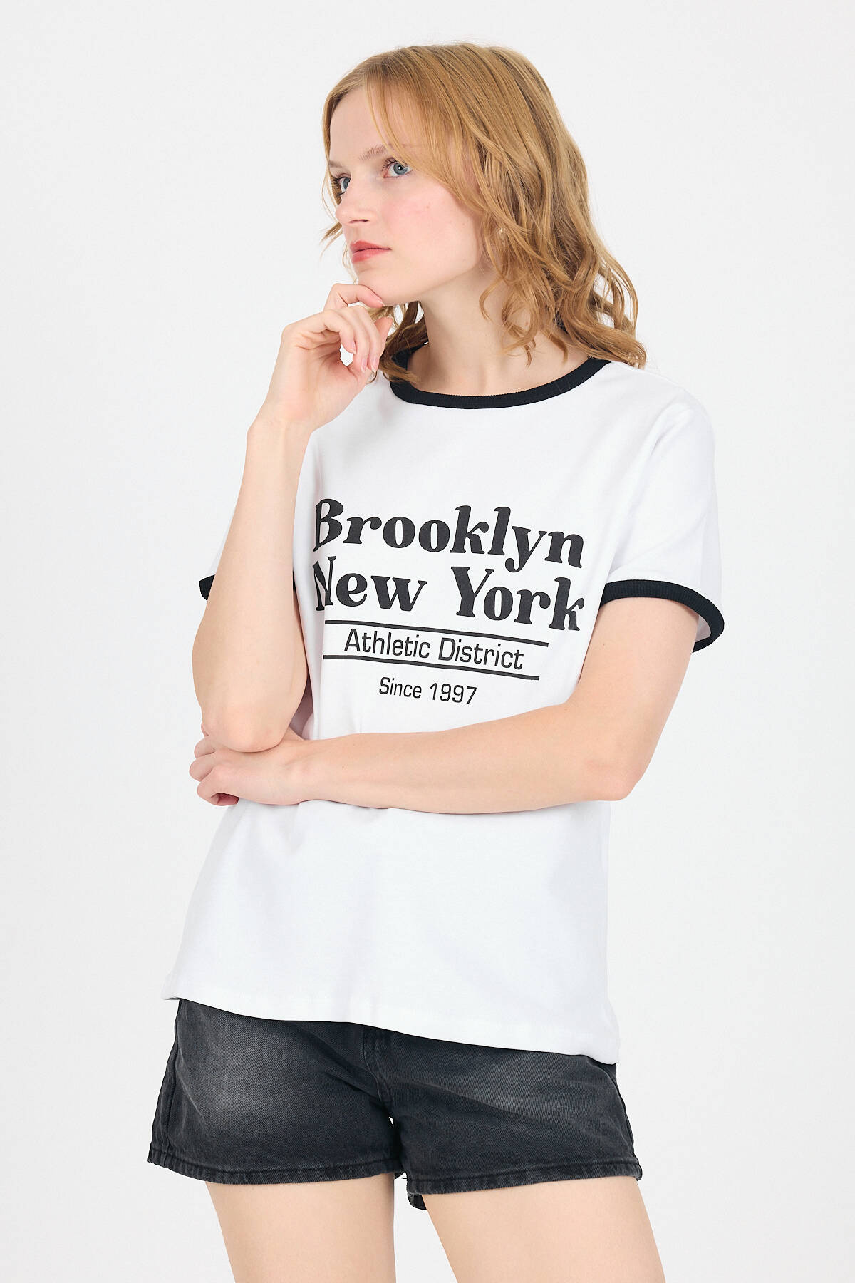 Beyaz Baskılı Relaxed Fit Ribana Detaylı Tişört 5652
