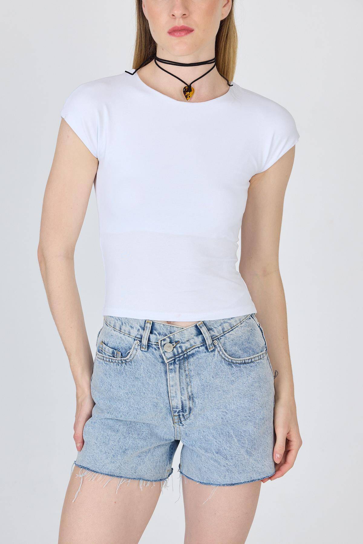 Beyaz Bisiklet Yaka Pamuklu Slim Fit Tişört 9190