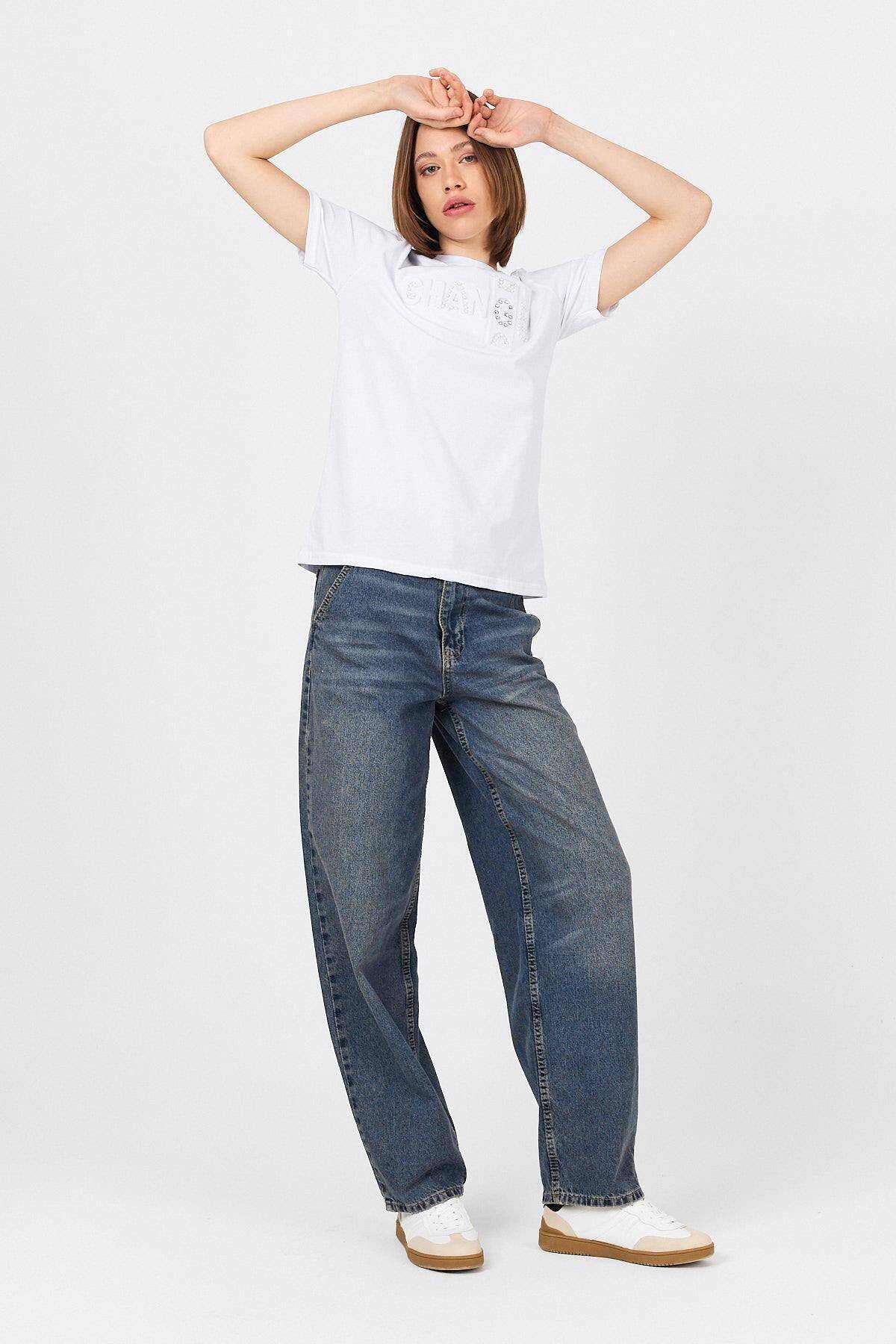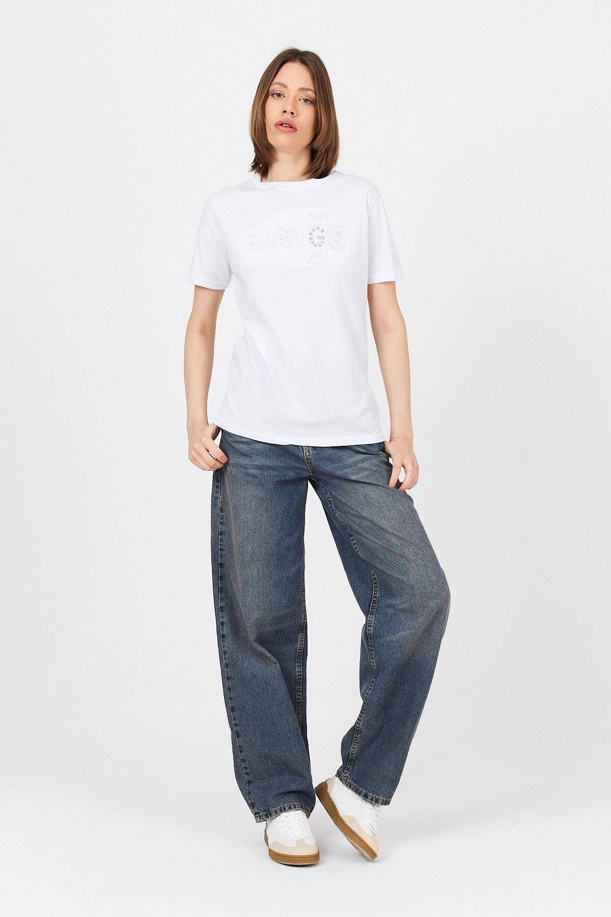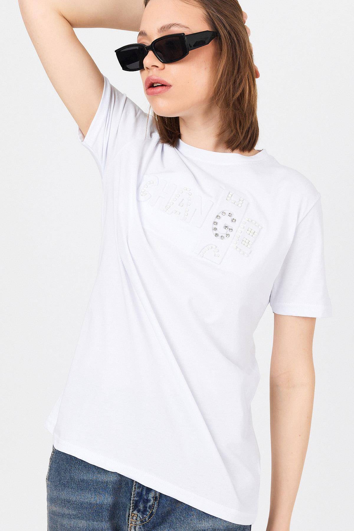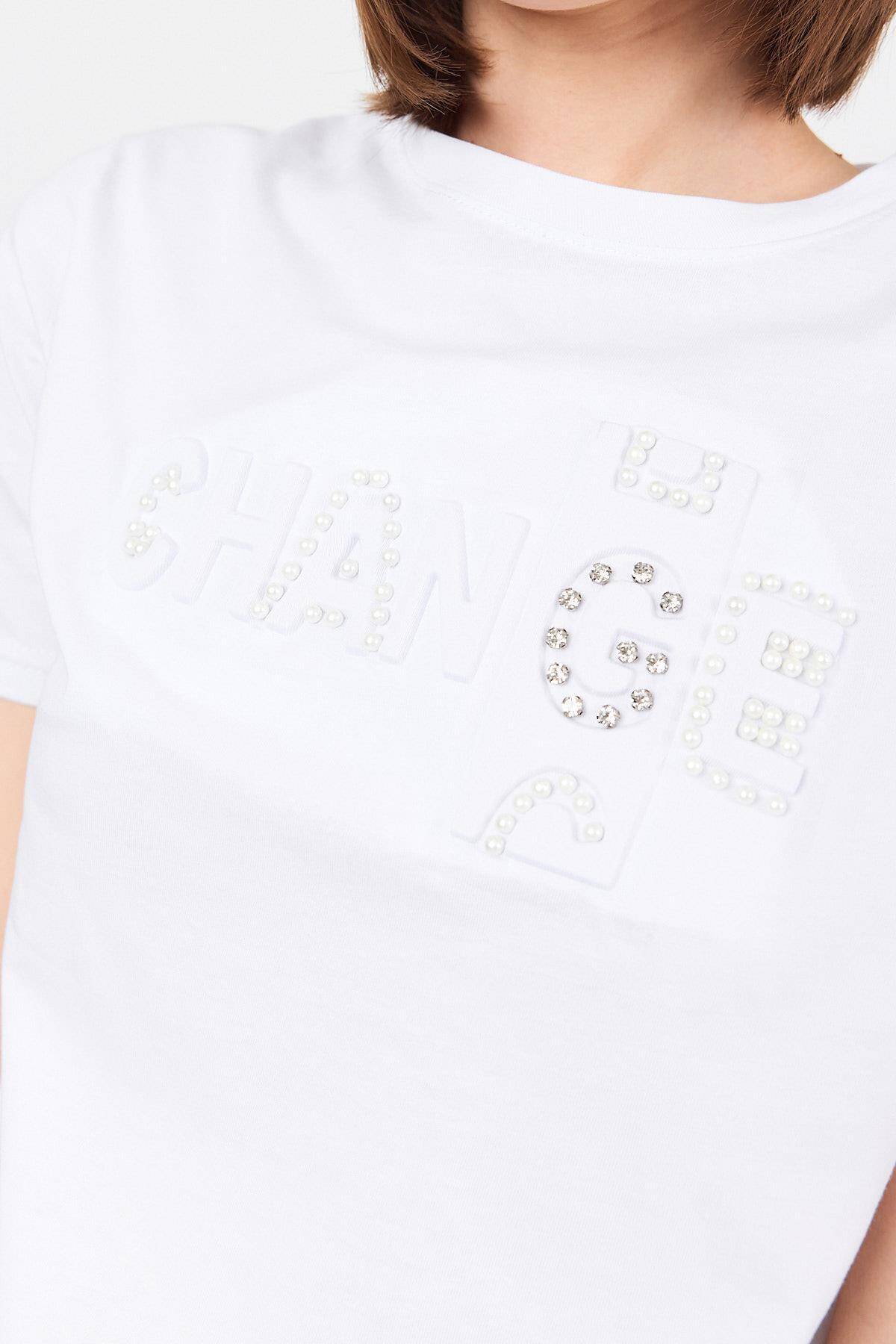 Beyaz Change Yazı Kabartmalı Tişört 25227