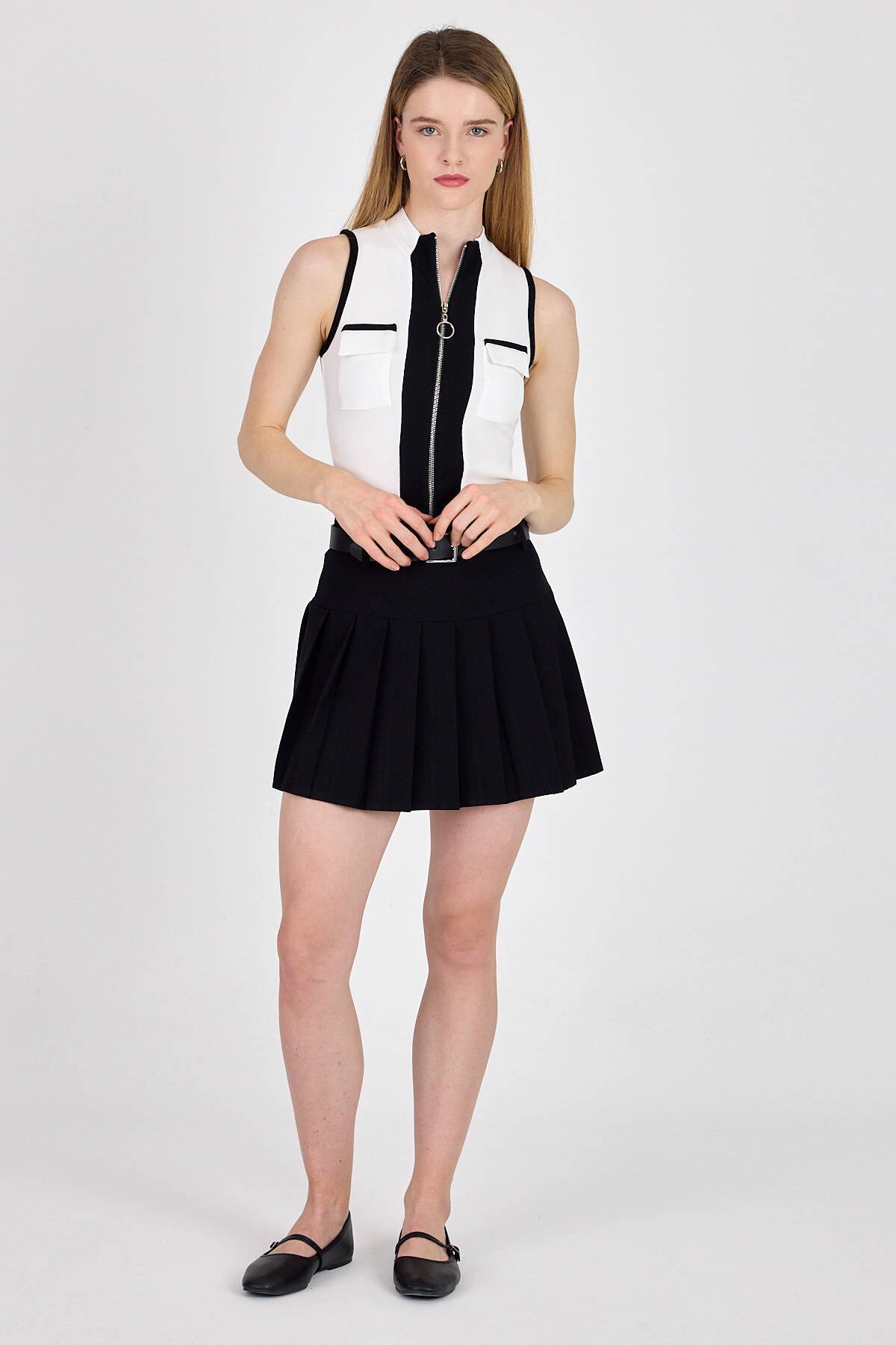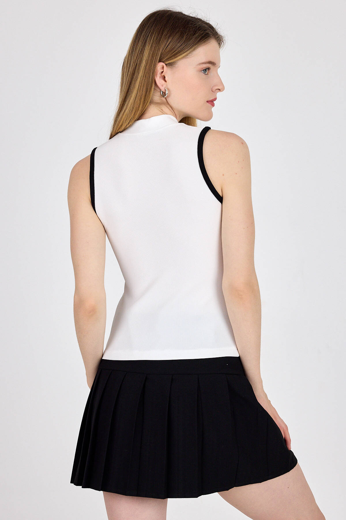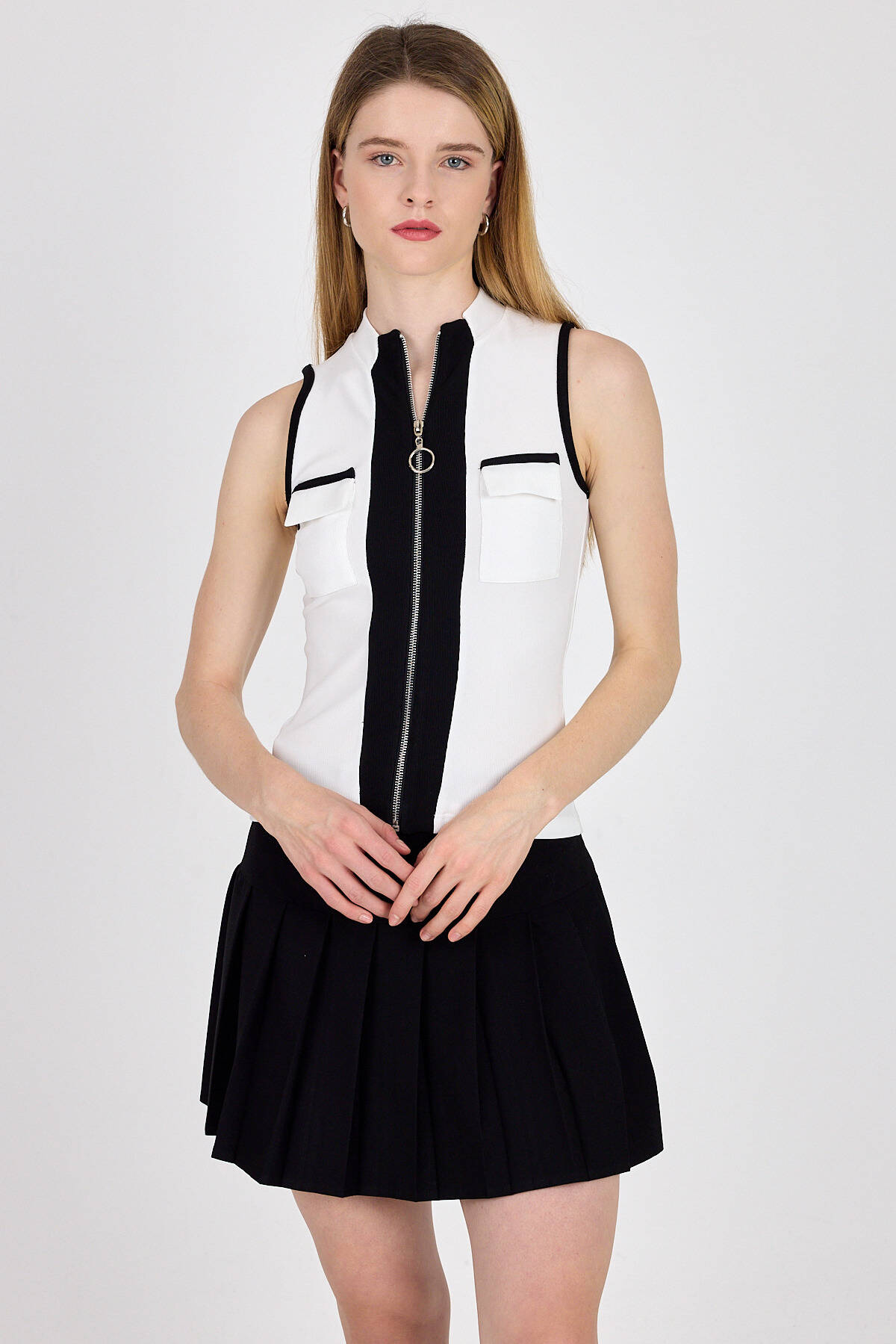 Beyaz Fermuarlı Örme Bluz 1449