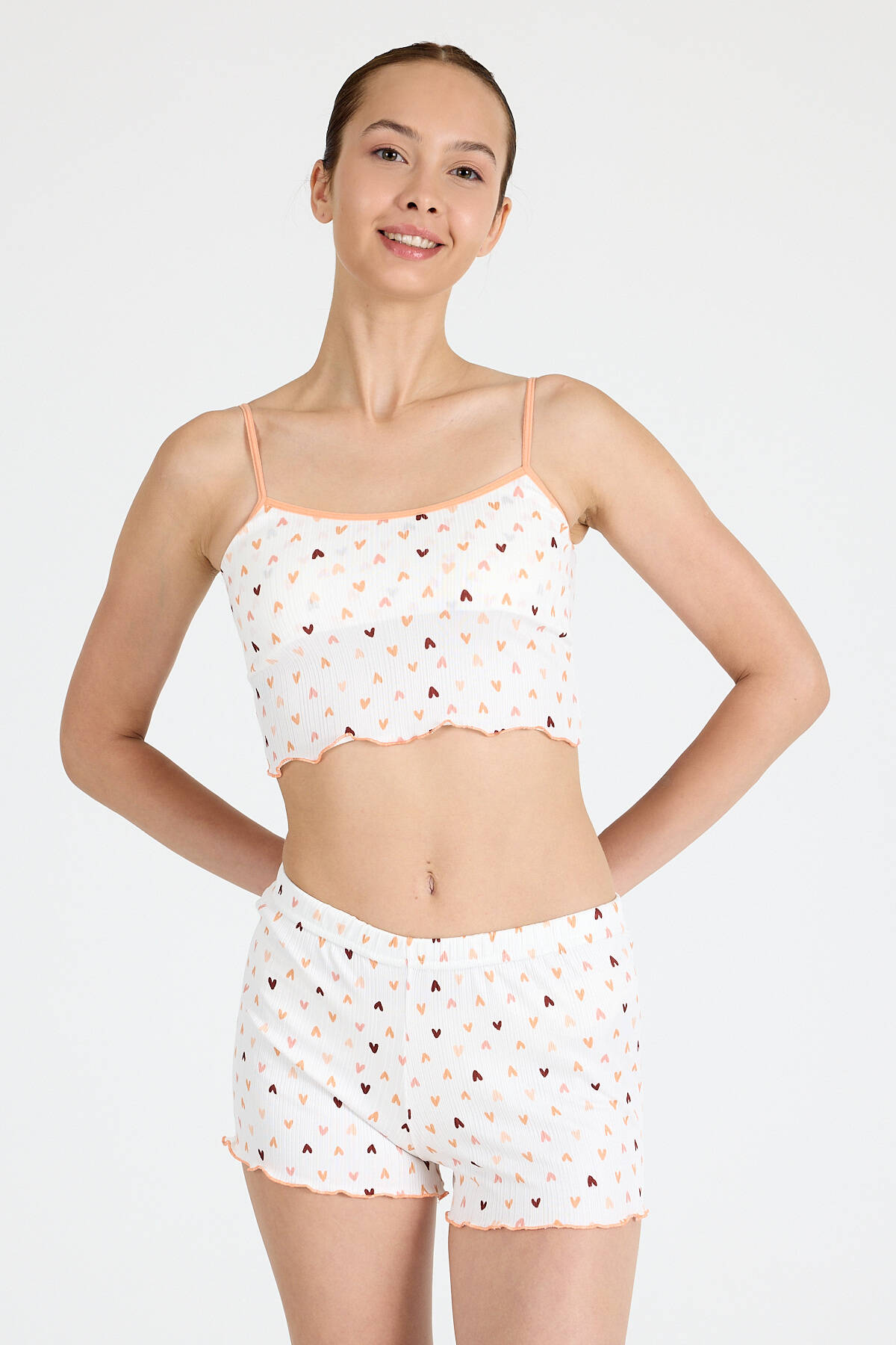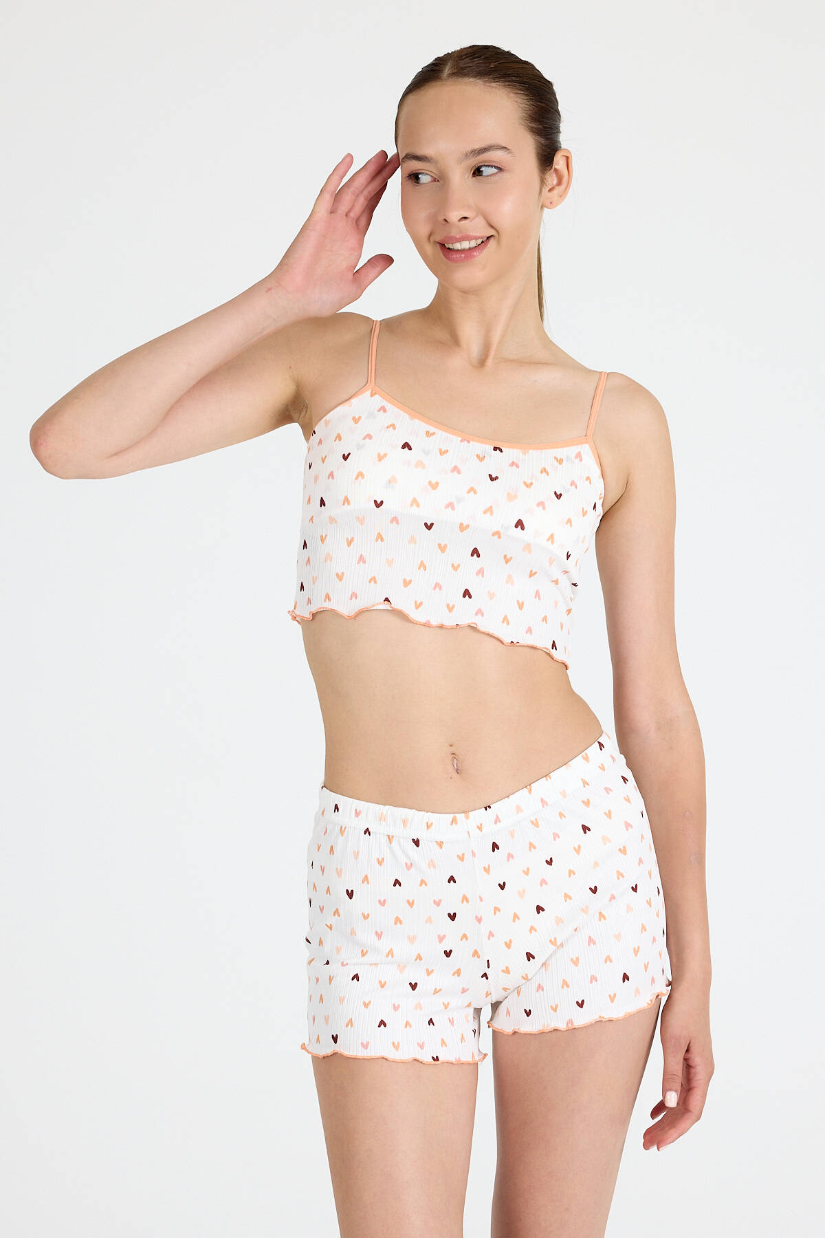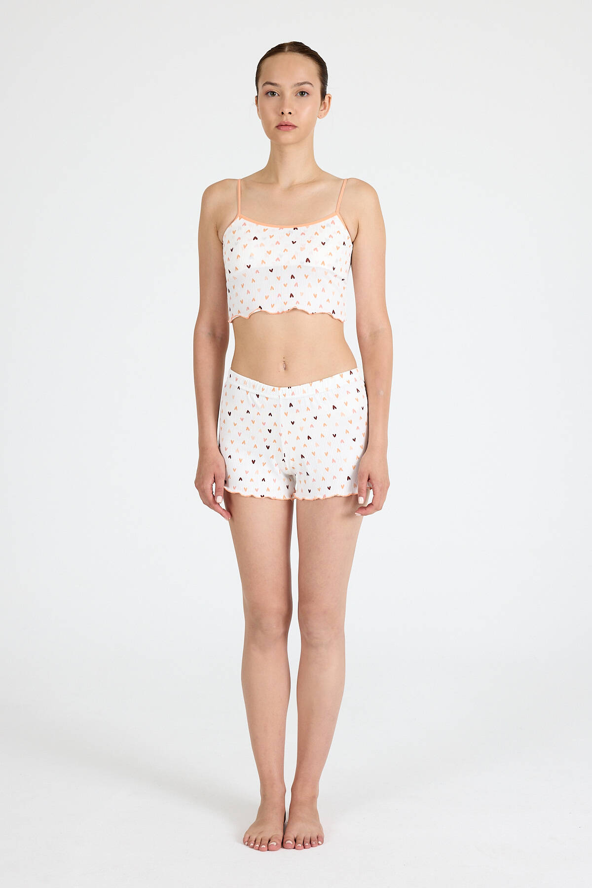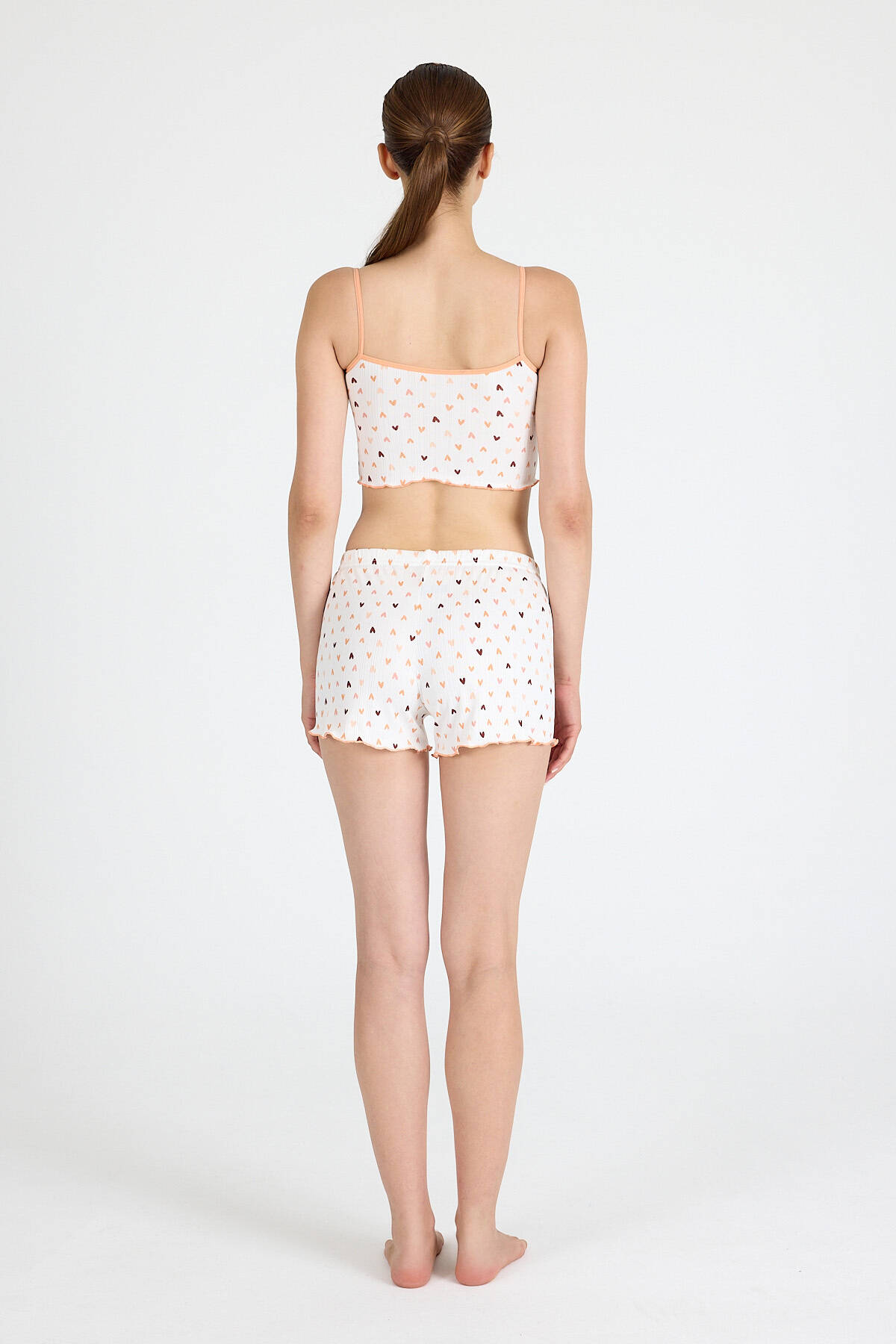 Beyaz Kalp Desenli Atlet Şort Takım 3406