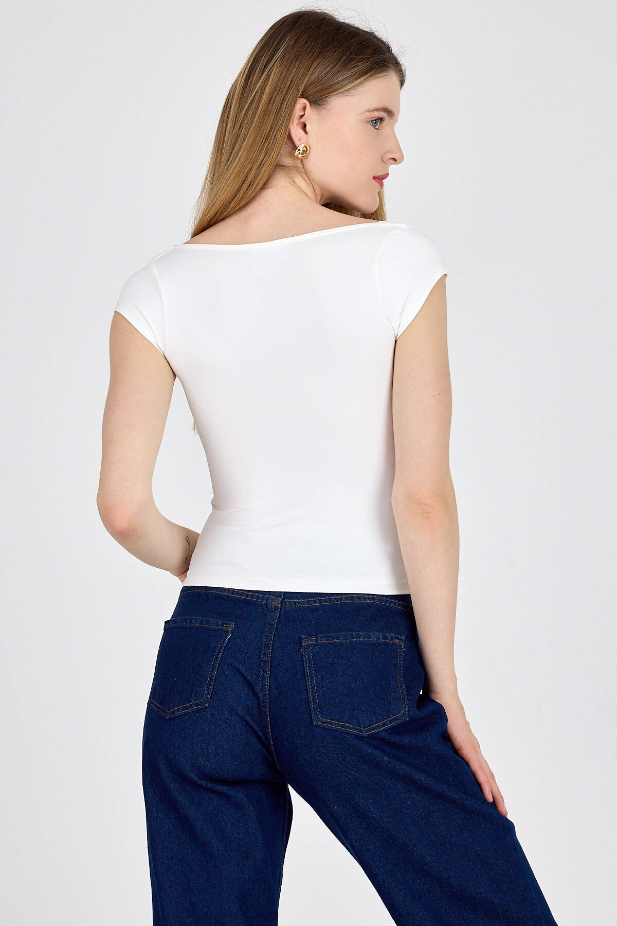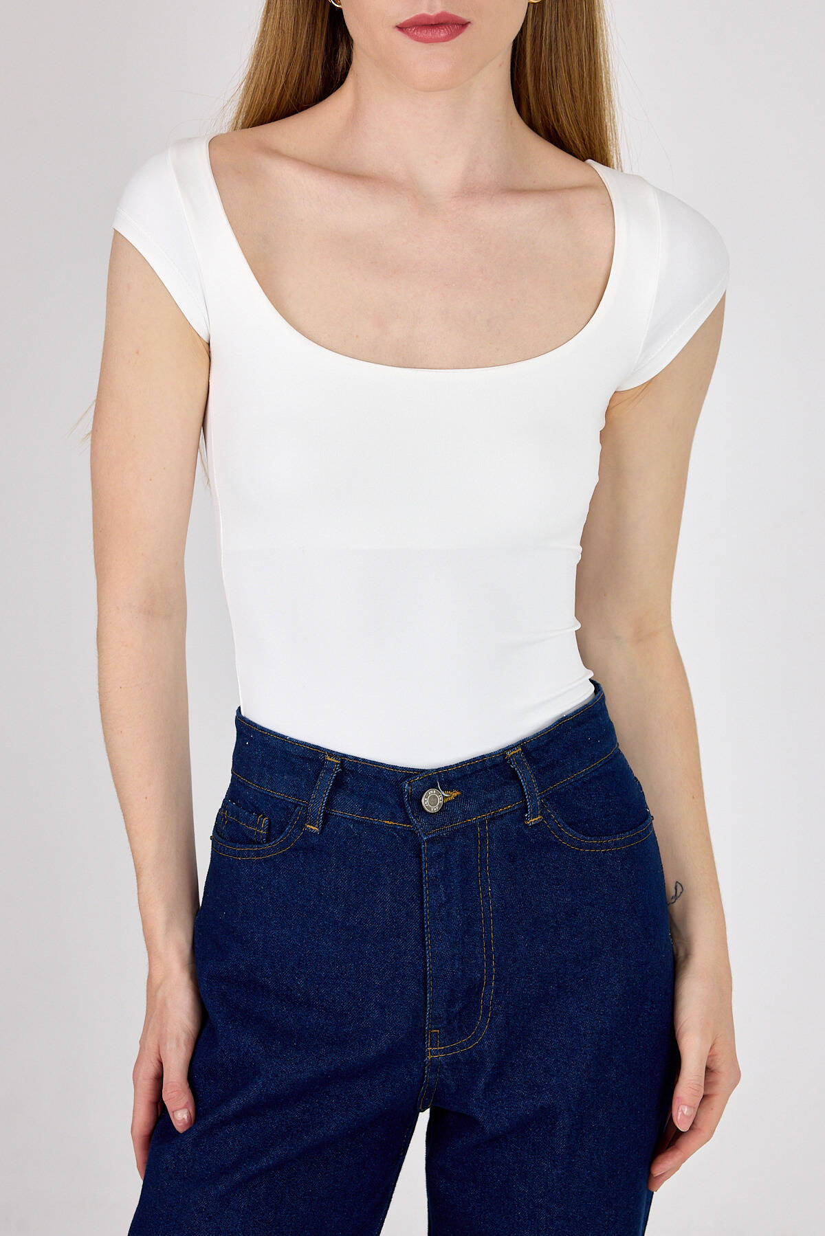 Beyaz Kare Yaka Kısa Kol Body 3116