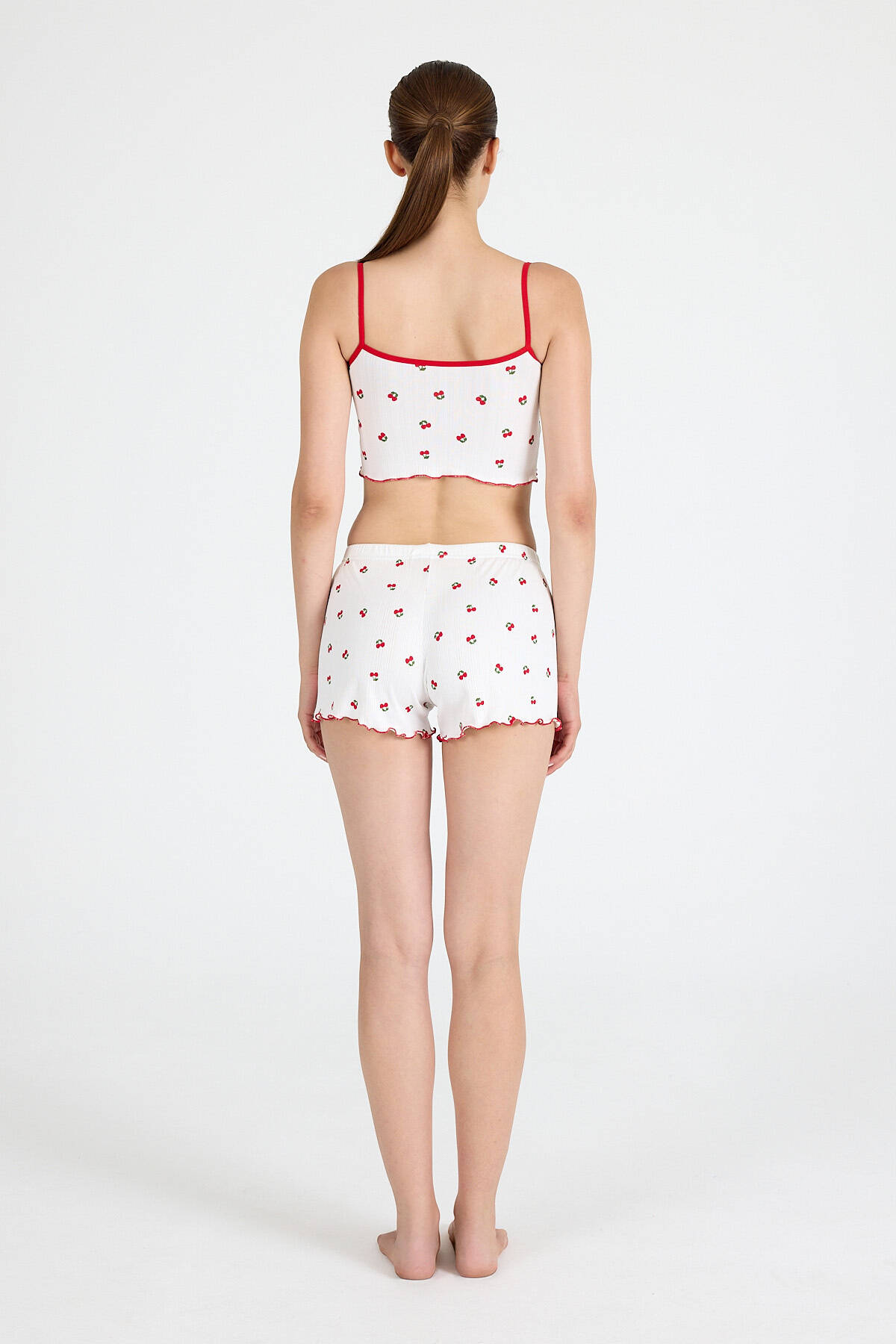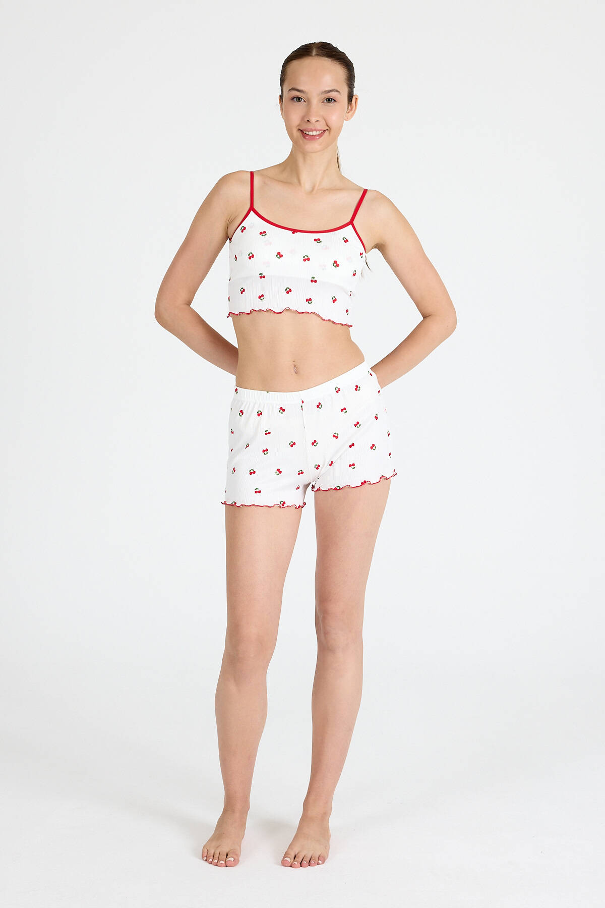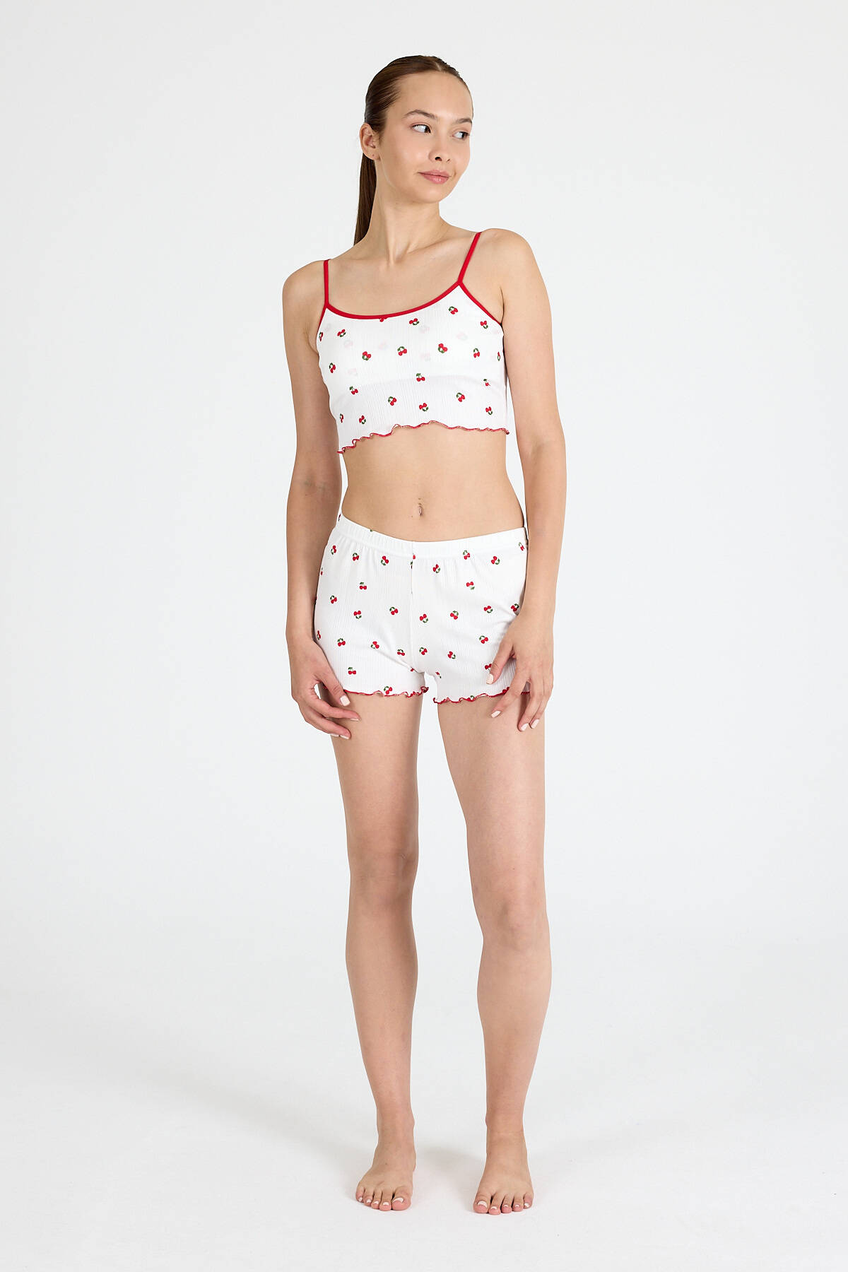 Beyaz Kiraz Desenli Atlet Şort Takım 3403