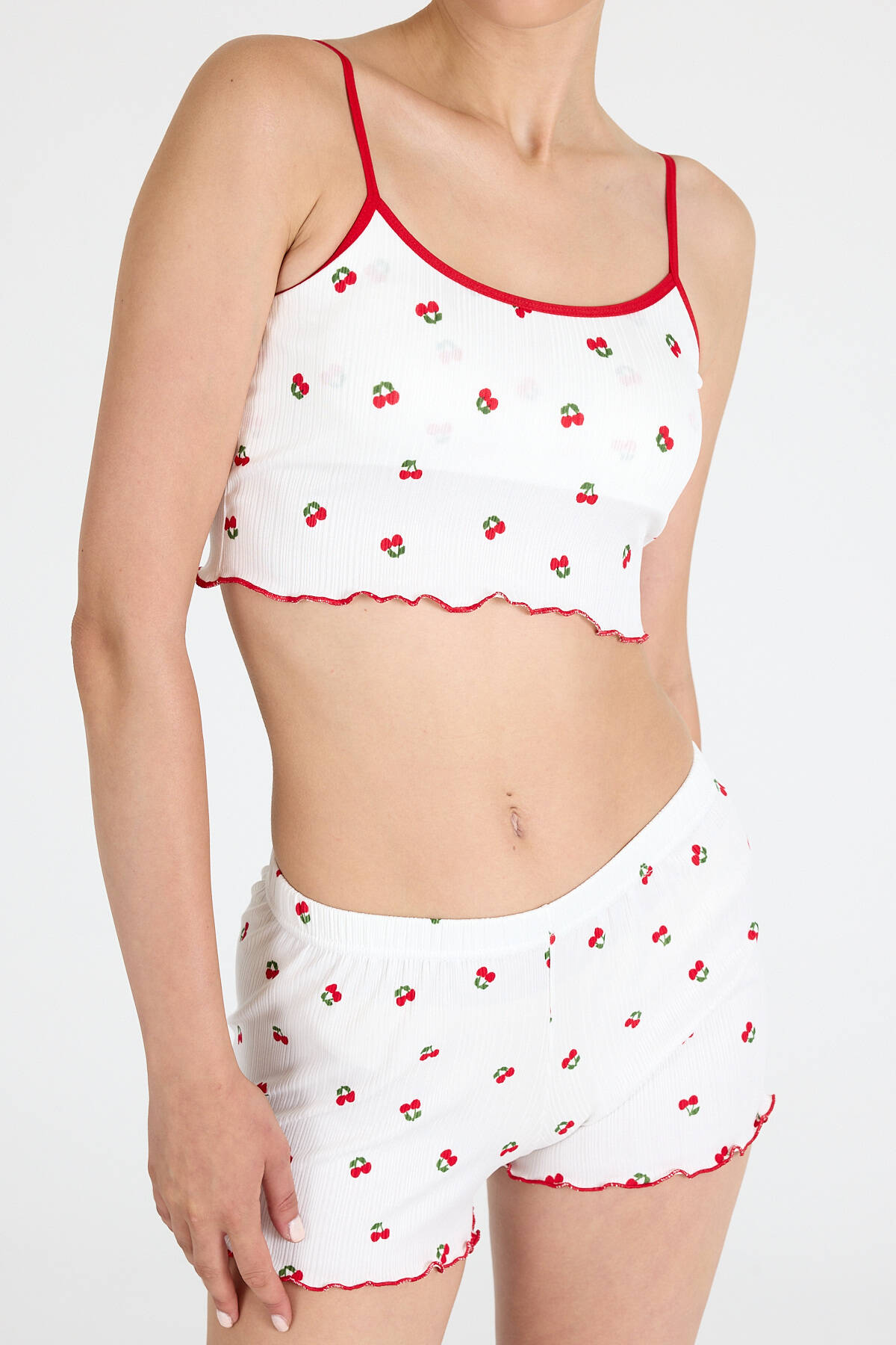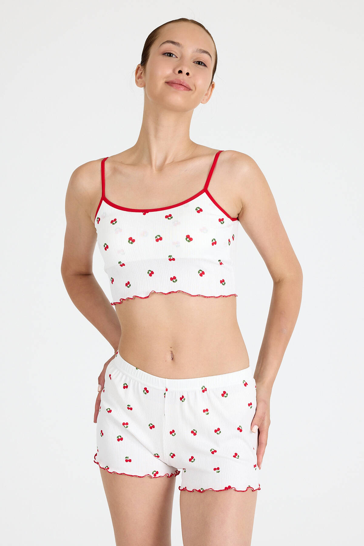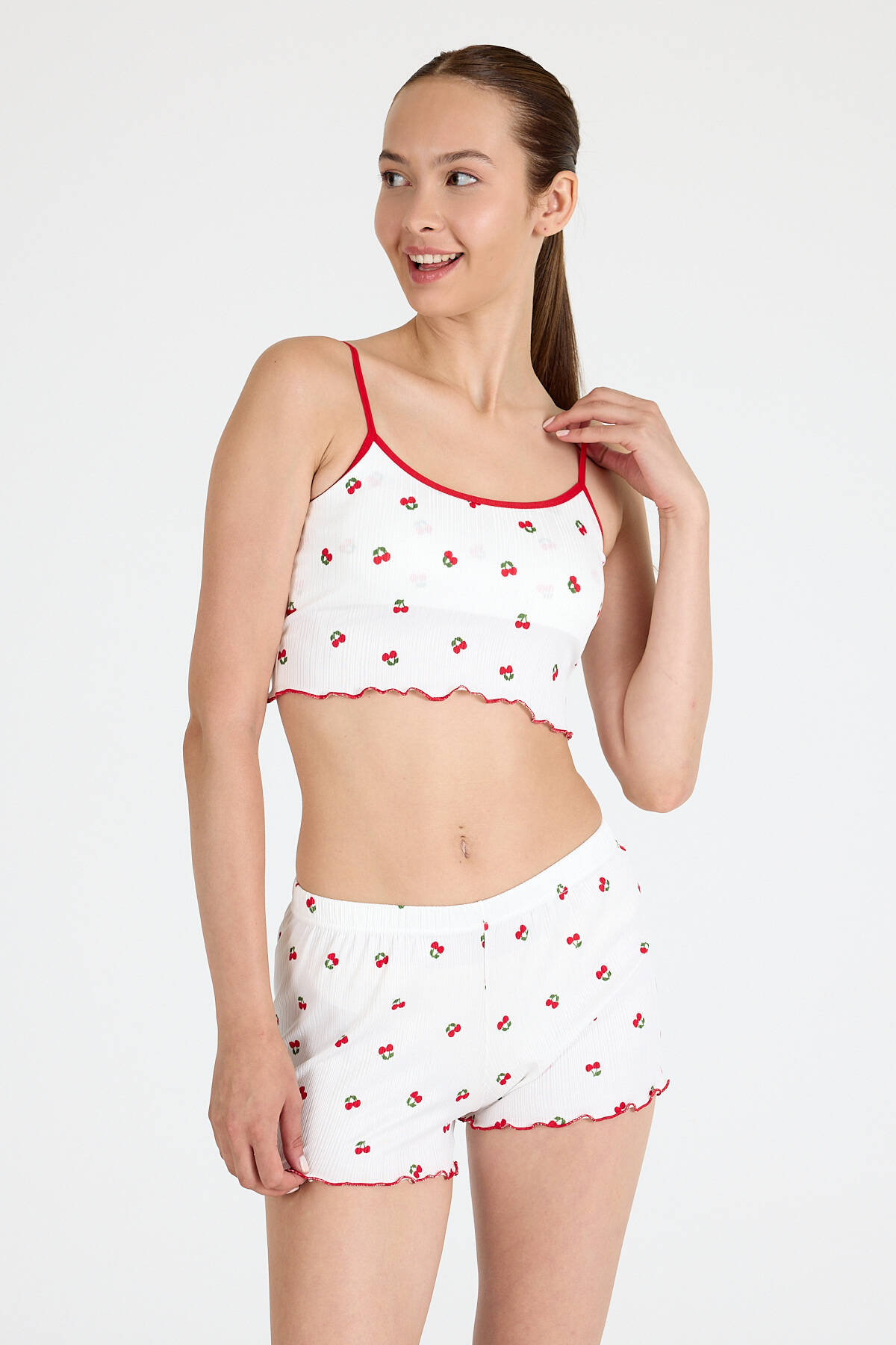 Beyaz Kiraz Desenli Atlet Şort Takım 3403