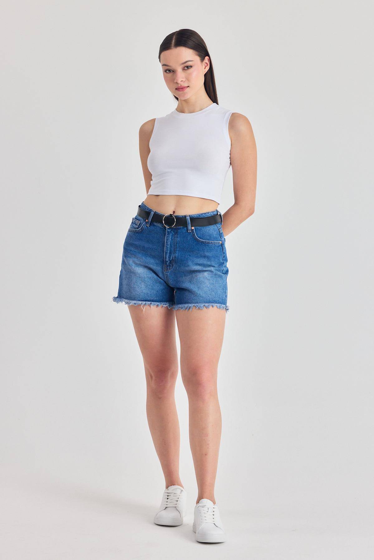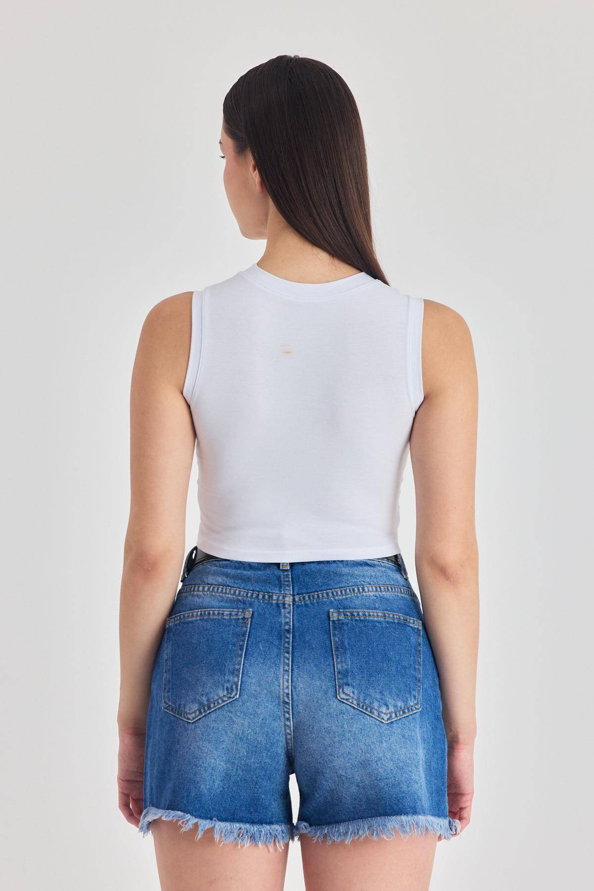 Beyaz Kolsuz Bisiklet Yaka Crop Atlet 318