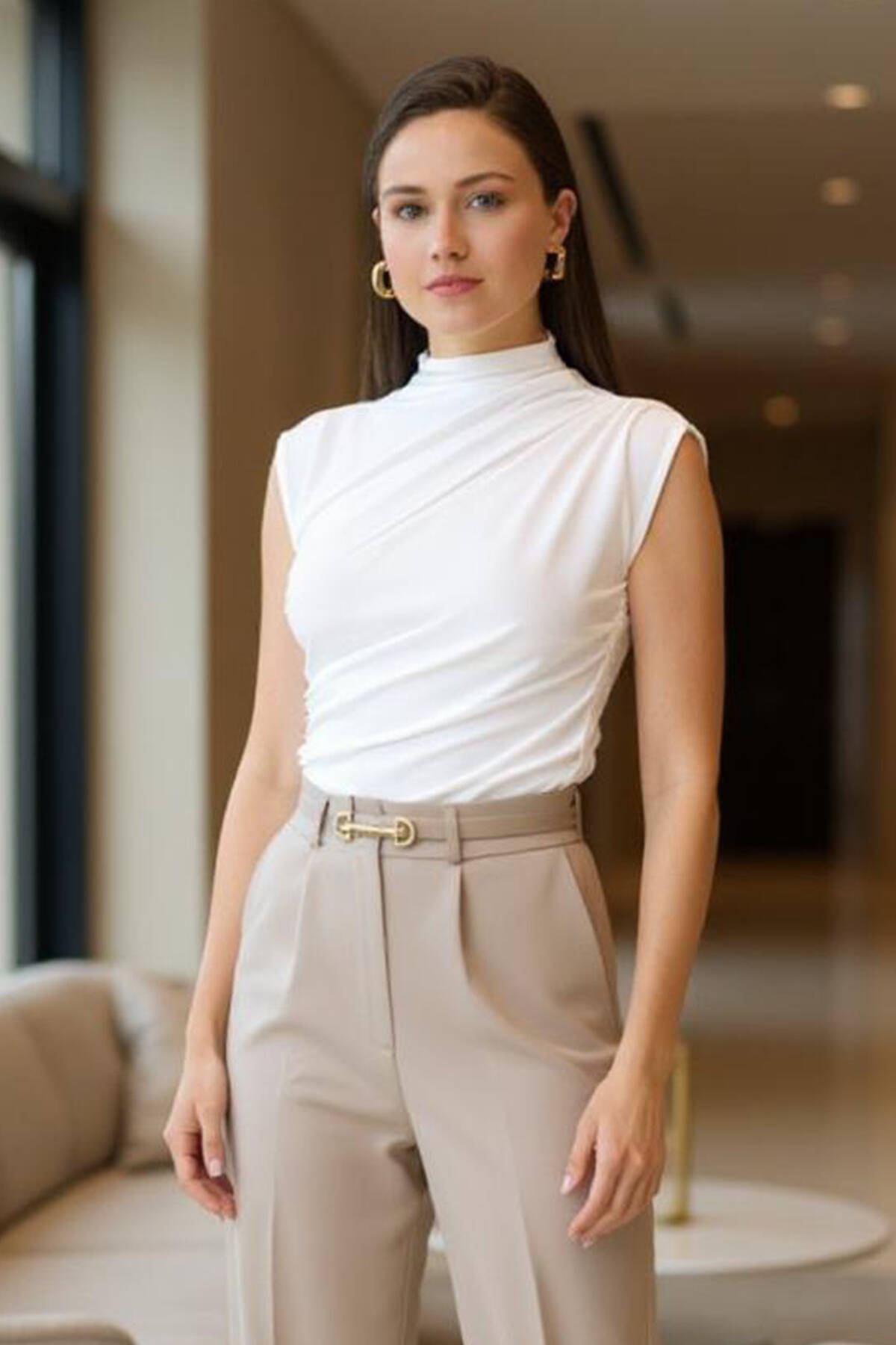 Beyaz Kolsuz Büzgülü Sandy Bluz 2430