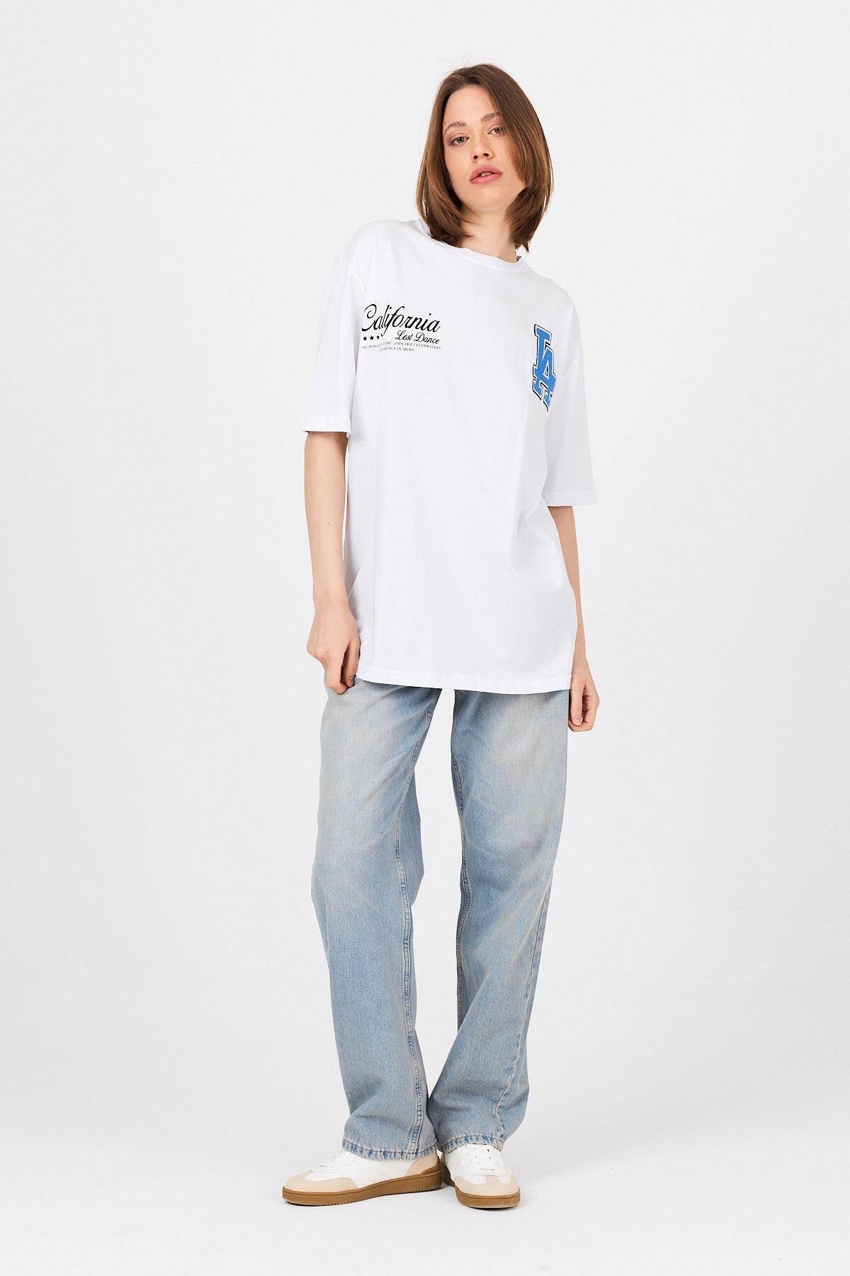 Beyaz LA Baskılı California Yazılı Oversize Tişört 5197